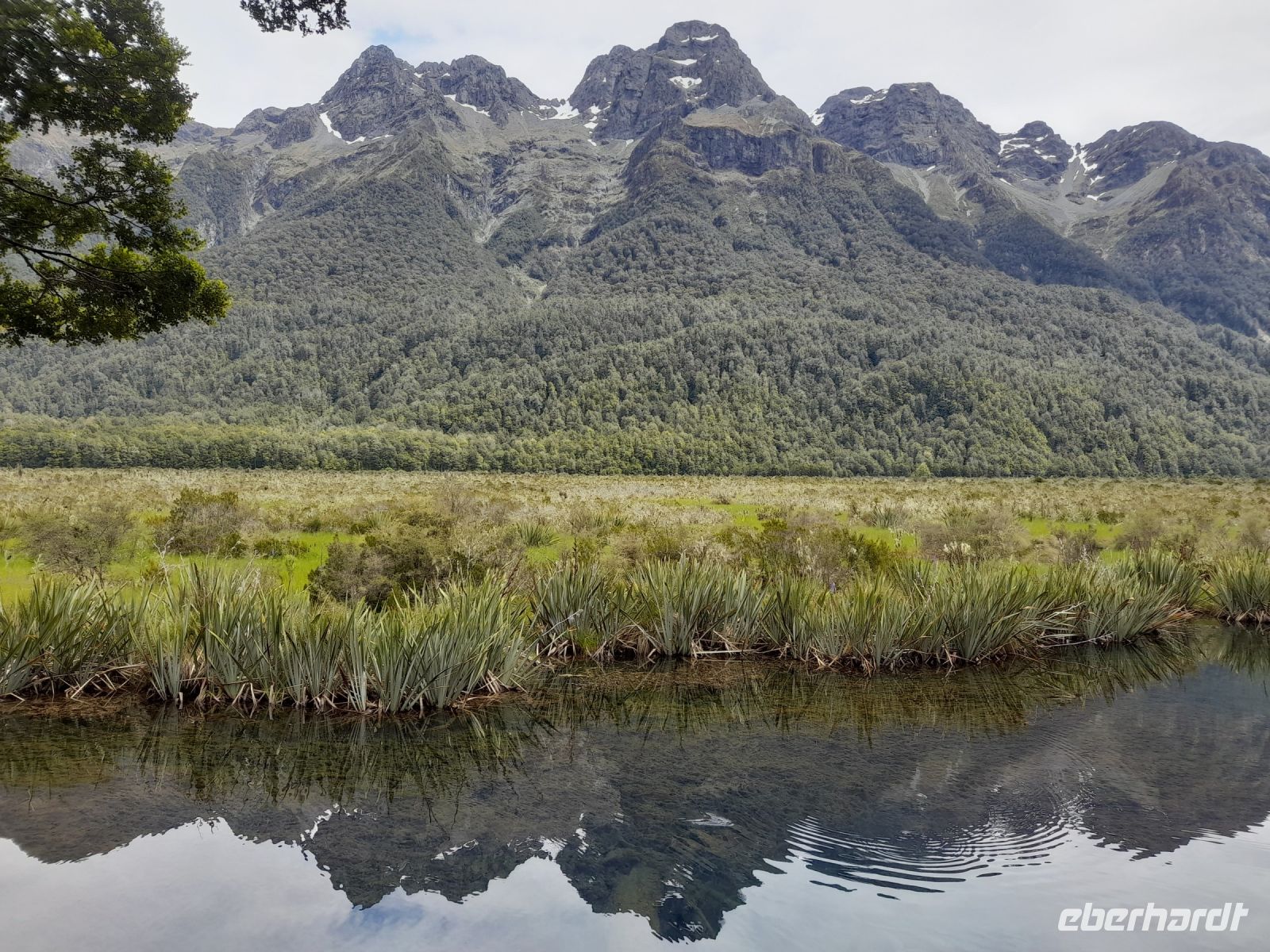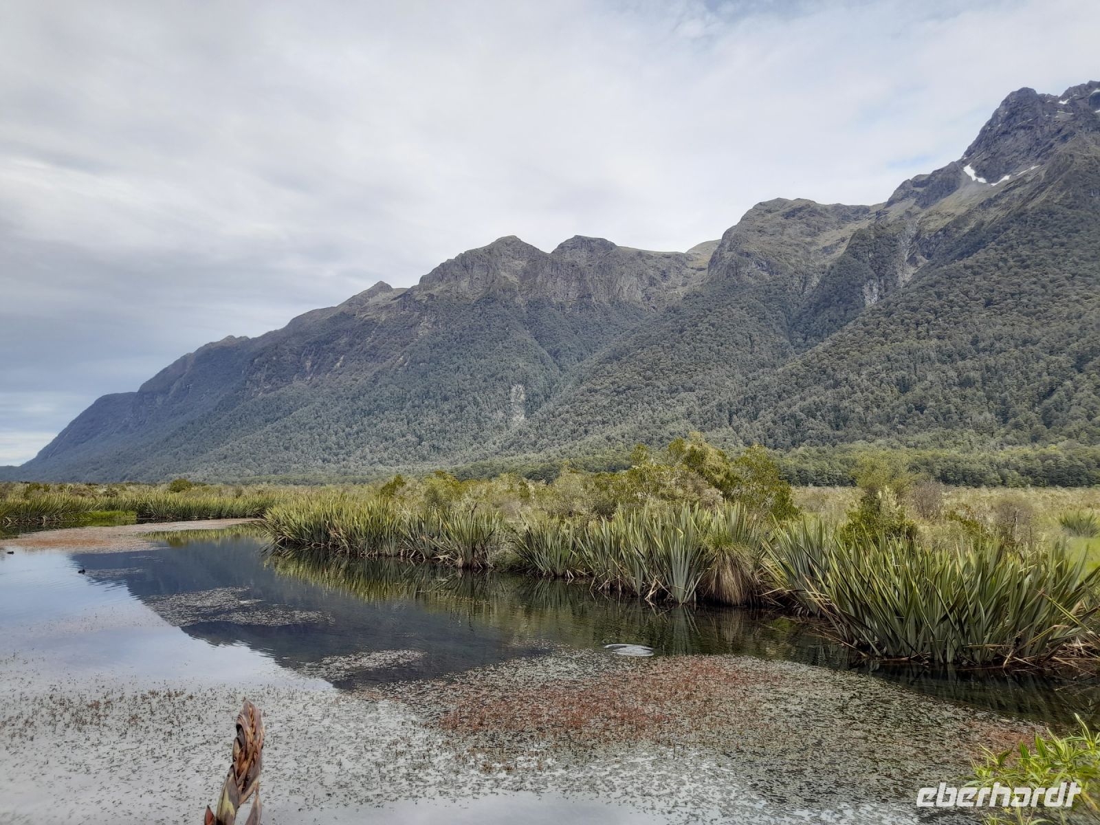 Mit dem Bus geht es nun auf der schon bekannten Strecken zurück nach Te Anau. In der Ferne können wir noch sehen, dass nun der so typische Regen aufzieht... man muss ja schließlich auch irgendwie auf die 300 Regentage im Jahr kommen – aber nicht mit uns.