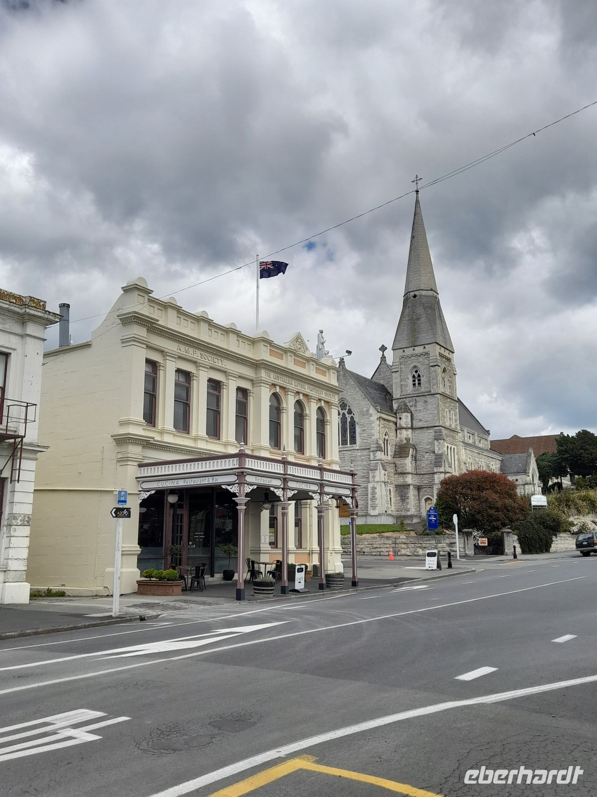 Am frühen Nachmittag geht es dann weiter entlang der Küste nach Süden. Das Ziel ist zunächst die schottischste Stadt Neuseelands, Dunedin. 1848 kamen die ersten 347 Siedler, die aus religiösen oder wirtschaftlichen Gründen die Heimat verlassen hatten, an der Küste von Otago an. Das Ziel war es, Neu Edinburgh zu gründen und so bekam die Stadt eine anglisierte Version des gälischen Namens Dùn Èideann. 1861 begann der Goldrausch in Otago und die Stadt wurde zum wichtigsten Handelsort Neuseelands. 1869 wurde, ganz im Geiste der Mutterstadt in Schottland, mit der University of Otago, die erste Universität des Landes gegründet. Von Anfang an waren übrigens Frauen zugelassen, ein absolutes Novum im Britischen Empire war es, dass Frauen von Anfang an zu allen Studiengängen zugelassen waren.