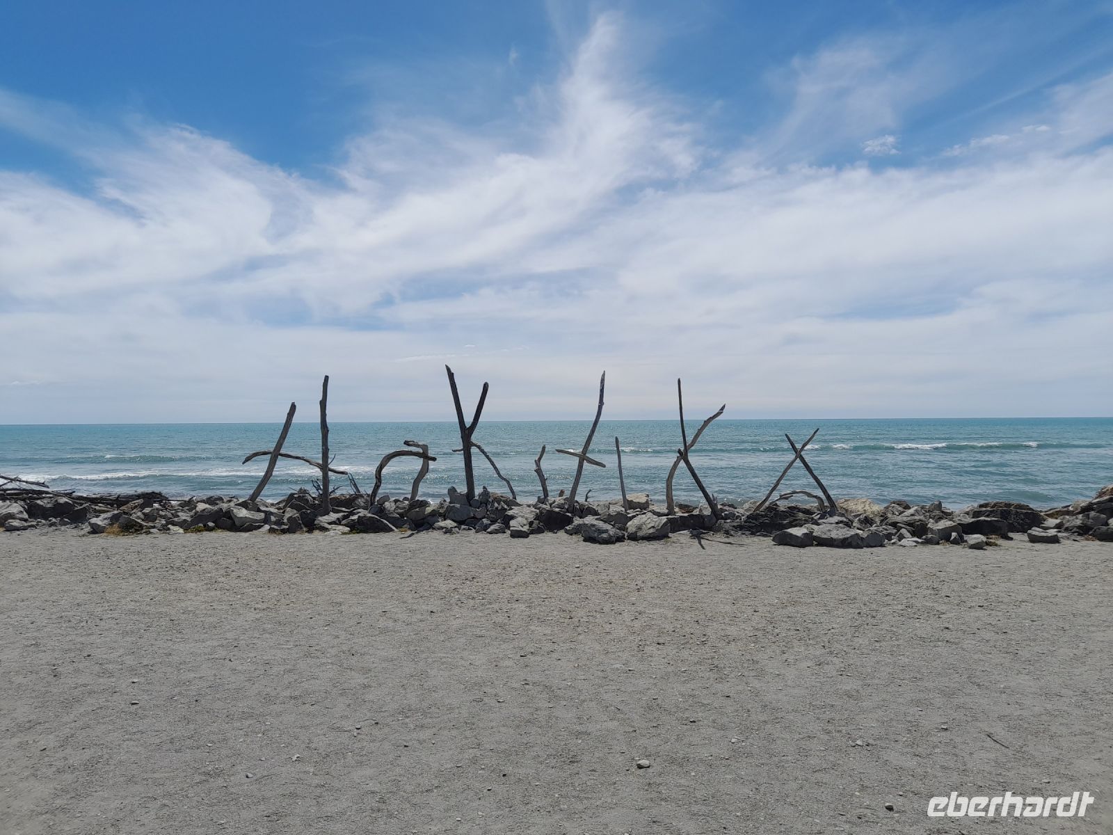 Wir verlassen heute früh unsere Bungalows mit der schönen Aussicht auf die Bucht von Kaikoura und dann heißt es auch so langsam Abschied nehmen, denn heute verlässt uns auch Horst. Zusammen fahren wir von Kaikoura entlang der Ostküste nach Süden und entdecken noch einige Pelzrobben. Dann entfernt sich der Highway 1 so langsam von der Küste und überquert einige breite, mit Geröll gefüllte Flussbette. Man kann sich kaum vorstellen, dass die kleinen Flussarme bei Starkregen tatsächlich zu einem reißenden Strom werden können. Wir erreichen das nördliche Ende der Canterbury-Ebene, der Kornkammer Neuseelands. Am späten Vormittag wird die Besiedelung dann langsam immer dichter: vor uns liegt die Hauptstadt der Südinsel, Christchurch. Seit den schweren Erdbeben 2011 hat sich hier eine Menge verändern, nichtsdestotrotz leben noch ungefähr 750.000 Menschen in diesem Ballungsraum. In der Nähe des Flughafens treffen wir dann auf unseren neuen Guide und Fahrer Helle. Wir schieben eine kleine Pause ein und verabschieden uns von Horst, dann geht es für uns weiter Richtung Süden. Am südlichen Ende der Ebene lassen sich dann schon bald die ersten Bergsilhouetten der Neuseeländischen Alpen erkennen.