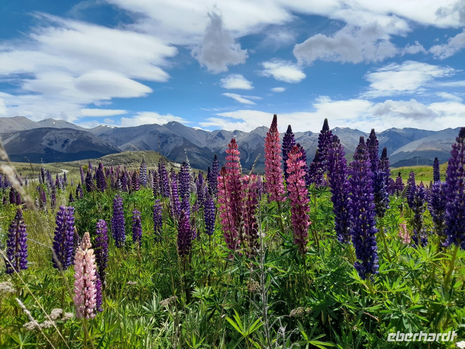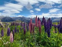 Ganz unerwartet steuern wir am frühen Nachmittag auf ein weiteres Highlight zu: am Porter's Pass, der mit seiner dramatischen Bergkulisse ebenfalls als Drehort für die „Herr der Ringe“-Filme gedient hat, sind die Lupinen in voller Blüte und geben ein sagenhaftes Fotomotiv ab. Natürlich legen wir hier noch mal einen ausgedehnten Fotostopp ein, bevor es dann hinunter in die Canterbury-Ebene und weiter nach Christchurch geht.