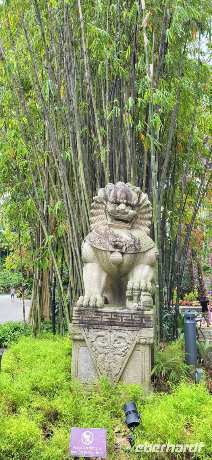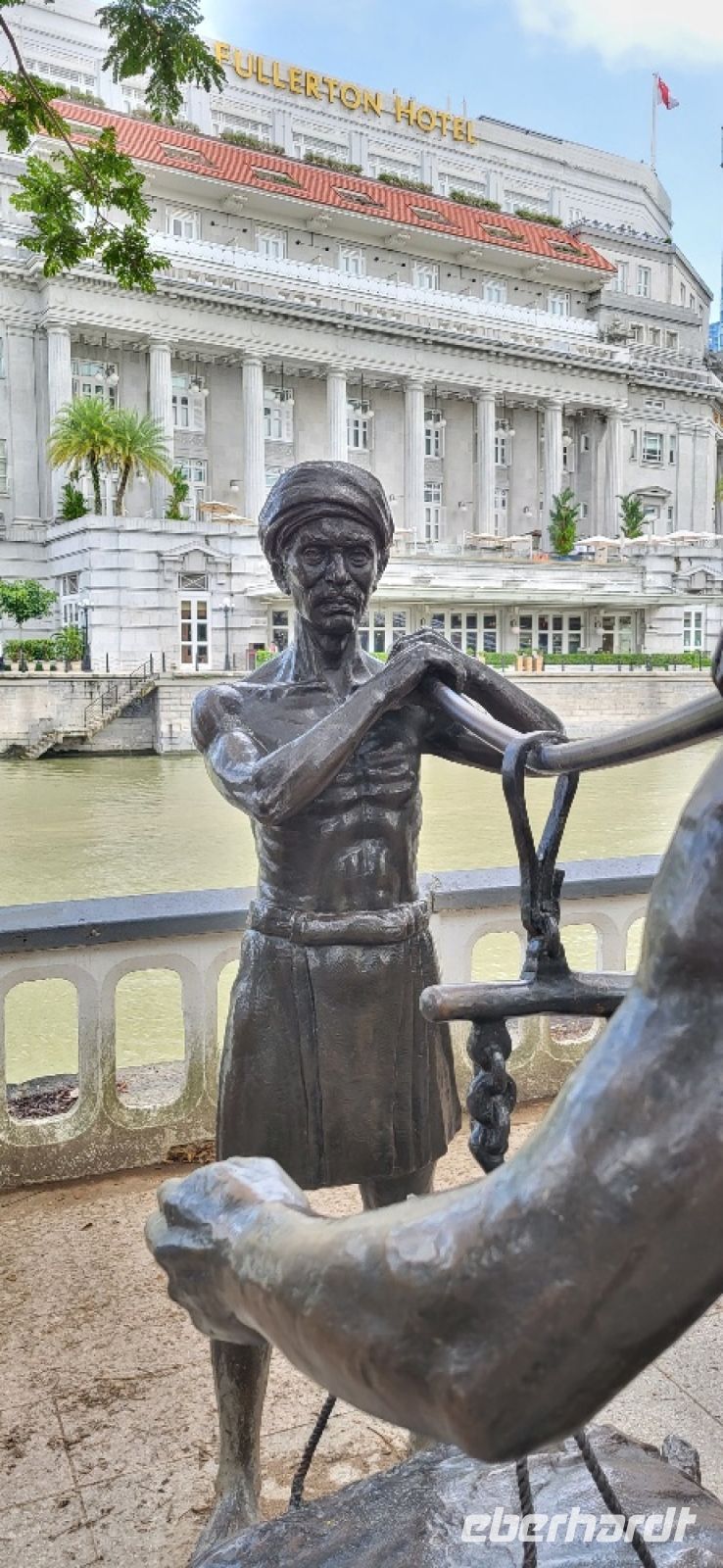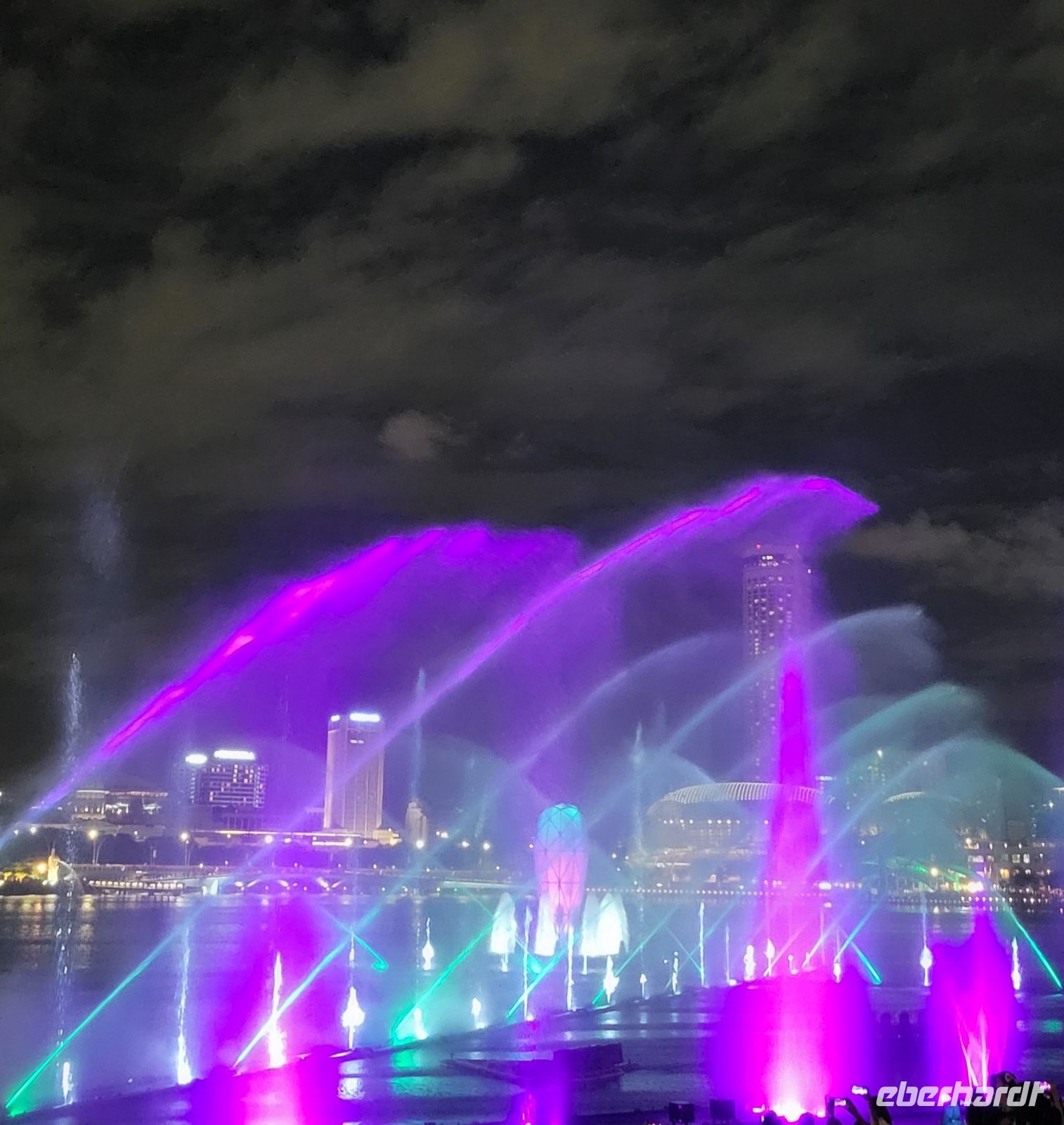 Einigermaßen ausgeruht landen wir am späten Nachmittag, erledigen unser Einreiseprozedere und werden von Reiseleiterin Martine herzlich in Empfang genommen. Sie ist gebürtige Belgierin, spricht sieben Sprachen, lebt schon viele Jahrzehnte hier und nach einer informativen, 30-minütigen Fahrt sind wir bereits im Hotel angekommen. Gerne schließen wir uns ihrem Vorschlag zu einem optionalen Abendprogramm an, checken kurz in unserem schicken Carlton Hotel ein und im Nu sind wir schon per Linienbus unterwegs, um zum berühmten Marina Bay Sands Hotel zu fahren, vor dem um 20.00 Uhr täglich die bekannte Spectra Licht-und Wassershow stattfindet. Wir lassen dieses Spektakel von Wasser, Licht und Musik auf uns wirken, alles umrahmt von der tollen, beleuchteten Kulisse der Stadt. Weiter geht es zu Fuß über die 4. Hoteletage zu einem ein Durchgang, der uns zu Gardens by the Bay führt. Im Marina Bay Sands Hotel selbst dürfen wir aber schon mal einen Blick erhaschen und hören von Martine, dass dieses mit seinen drei Türmen 2010 in einer Zeit von 2,5 Jahren erbaut wurde. 1500 Arbeiter wurden hierfür beschäftigt, den imposanten Bau des Architekten Moshe Safdie mit insgesamt 2750 Zimmer und 40 Restaurants zu errichten. Ca. 10.000 Mitarbeiter kümmern sich um den Ablauf des Hauses, unglaubliche Dimensionen, die man sich kaum vorstellen kann. Oben auf befindet sich ein 340 m langes Dach, einem Surfbrett nachempfunden, mit dem berühmten 160 m langen Infinity-Pool, zu dem nur die Hotelgäste Zugang haben. Sicher hat man hier eine grandiose Aussicht über die Stadt, die wir uns aber morgen möglichst vom Observation Desk ansehen werden. Aber nun zur schönen Lichtshow der Garden Rhapsody der sogenannten Supertrees im Gardens by the Bay-Eine tolle Mischung aus Licht und Farben mit musikalischer Untermalung und es erscheint, als tanzten die Bäume im Rhythmus zur Musik. Danach fahren wir mit einer Dschunke auf dem Singapore River an den Attraktionen entlang und sehen nochmals die Oper, das Kunstmuseum, den Merlion, das Wahrzeichen Singapurs und die hübschen ehemaligen Lagerhallen, die das alte Singapur verkörpern und heute unzählige Restaurants beherbergen. Eine wunderbar nächtliche Stimmung und eine super schöne Einstimmung auf unsere nun begonnene Reise. Zurück am Carlton Hotel, erhaschen wir nochmals einen herrlichen Blick auf das jetzt beleuchtete, älteste und ehrwürdigste Haus am Platz-das Raffles Hotel. Hier hätten wir noch die Möglichkeit, den bekannten „Singapur Sling“ zu kosten, ziehen jedoch unsere Betten vor und erholen uns von der Anreise und den schönen Erlebnissen des Abends.