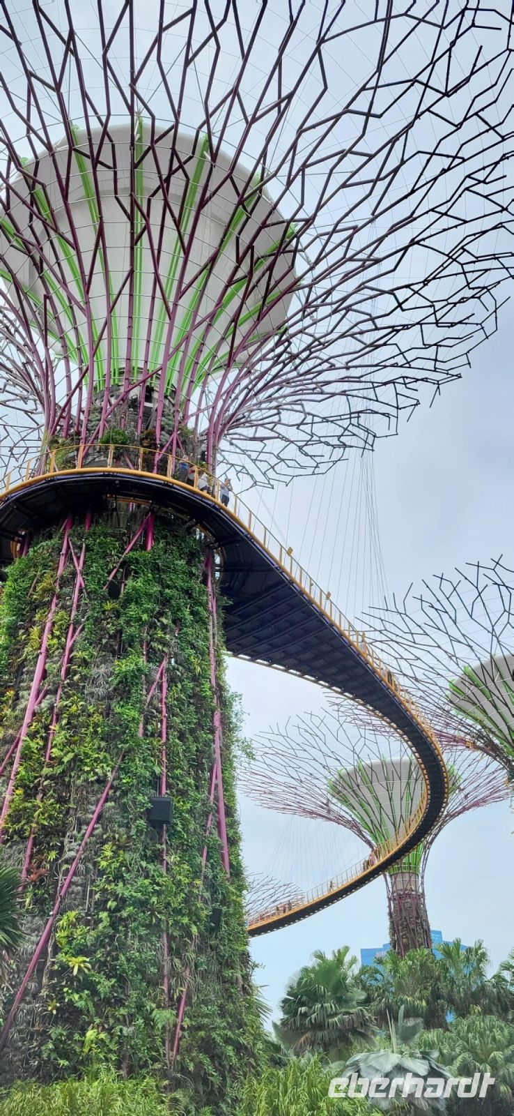Unser erster Tag in Singapur erfolgt gemächlich. Wir schlafen aus, genießen das reichhaltige Frühstücksbuffet des Carlton Hotels und brechen um 12.30 Uhr zu unserer 6-stündigen Citytour auf. Zunächst war geplant, die Aussichtsplattform des Marina Bay Sands Hotel zu besuchen, erhalten jedoch die Information, dass diese heute aufgrund einer Privatveranstaltung komplett geschlossen ist. Somit entscheiden wir uns für einen Besuch der Supertrees und der Aussichtsplattform, genannt „Supertree Observatory“, hier haben wir in 50 m Höhe zum einen die tolle Aussicht auf die Gardens by the Bay, diverse Supertrees, sehen das Marina Bay Sands Hotel und auch die Tribüne der Formel Eins Rennstrecke in sichtbarer Nähe. Ein Außenweg führt rund um den „Baum“ herum und man kann die mit Solarenergie betriebenen „Bäume“ von oben bewundern. Martine berichtet, dass diese 18 Supertrees in der Anschaffung je 1 Mio. Dollar gekostet haben. Weiter geht es zum Floral Dome, eine der beiden imposanten Glaskuppeln, die eine herrliche Pflanzenwelt aus vielen Bereichen der Erde bieten. Dazu herrschen hier milde Temperaturen und die Abkühlung nehmen wir dankbar an. Auf der Weiterfahrt nach Chinatown hören wir, dass der Stadtstaat Singapur 5,6 Mio. Einwohner hat, die zu 77 % aus Chinesen, 14 % aus Malayen, 7 % aus Indern und 2 % aus sogenannten Eurasiern bestehen. Alle friedlich auf engstem Raum dicht beieinander-und es funktioniert beispielhaft! Des Weiteren hören wir, wie komplex und kostenintensiv die Anschaffung eines PKWs hier ist und dass man eine Fahrzeuganmeldung eines Neuwagens immens teuer ist und das Fahrzeug nur 10 Jahre in Singapur gefahren werden darf, dann ins Ausland verkauft werden muss und ein Neuwagen stattdessen angeschafft werden muss, sofern man dies finanziell noch stemmen kann. Unser Mittagessen nehmen wir in Chinatown ein und speisen in einer der unzähligen Garküchen. Hier kann man schnell und gut essen sowie das kulinarische Treiben beobachten. Im Anschluss führt uns Reiseleiterin Martine zu einem buddhistischen Tempel, glücklicherweise findet hier gerade eine Gebetsstunde statt und wir dürfen dem Ereignis beiwohnen. Martine erklärt uns, dass die vielen Lampen im Tempel darauf hinweisen, dass alle 120 Mönche im Tempel anwesend sind. Innen dargestellt befindet sich eine große Buddhastatue, die den 9. noch ungeborenen Buddha zeigen soll. Der Glaube besagt, dass wann auch immer dieser geboren wird, das Ende der Welt bevorsteht-möge er noch lange fern bleiben! Wir passieren im Anschluss das Bankenviertel und erfahren, woher der Reichtum Singapurs rührt. So ist dies ein riesiger Waren-Umschlagplatz mit ca. 260.000 Containerschiffen pro Jahr, die hier anlegen. Große Ölraffinerien befinden sich hier ebenso und nicht zu vergessen der Tourismus, der jährlich an die 50 Millionen Gäste in die Stadt bringt. Diese möchten genau wie wir den berühmten Orchideengarten mit 40.000 Exemplaren sehen und bald darauf erreichen wir diese weitere grüne Oase der Stadt. Leider gießt es mittlerweile in Strömen, sodass ein Ausstieg zunächst nicht möglich ist und wir mit der Stadtführung fortfahren. So geht es weiter der Orchard Road entlang, die einst eine Plantage war und heute die berühmteste Einkaufsstraße Südostasiens ist. Nachdem wir den Kolonialbezirk entlang gefahren sind, versuchen wir nochmals unser Glück am Botanischen Garten, wo der Regen etwas nachgelassen hat. Einfach herrlich diese gepflegte, ruhige Anlage (wenn das Wetter schöner wäre) und es beeindruckt uns sehr, in welchen Dimensionen die unzähligen Orchideen mit verschiedenen Formen und Farben zu sehen sind. (Bereits am Nachmittag erhielten wir die Nachricht von Singapore Airlines, dass unser heutiger Flug nach Neuseeland gecancelt werden muss, da ein Zyklon die neuseeländische Nordinsel heimsucht. Trotzdem müssen wir zum Flughafen aufbrechen, wo wir uns laut Airline einfinden müssen). Abschließend passieren wir den Singapore Cricket Club, die Nationalgalerie und den Obersten Gerichtshof und erreichen am frühen Abend den Schalter der Airline. Hier beruft man sich zur Flugannullierung auf höhere Gewalt und keinem Handlungsbedarf ihrerseits, was die Unterkunft, Verpflegung und Transport, der nun gestrandeten Gäste, angeht. Glücklicherweise hat Eberhardt bereits gemeinsam mit unserer örtlichen Agentur im Hintergrund die Fäden gezogen und uns schon ein wunderschönes Hotel, die direkt am Clark Quay gelegen, reserviert sowie unseren Rücktransport in die Stadt gesichert, sodass die nächsten Nächte zumindest gesichert sind. Alles Weitere erfahren wir am nächsten Tag, abhängig von der Wetterlage in Neuseeland und der Windlage des Zyklons.
