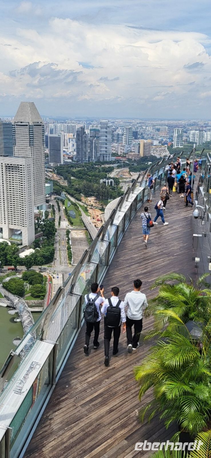 Heute heißt es zunächst einmal, das Beste aus dem außerplanmäßigen Tag in Singapur machen. So frühstücken wir in Ruhe an dem unglaublich reichhaltigen Buffet des Paradox Hotel und machen uns nach einer Lagebesprechung auf den Weg, um alle gemeinsam entlang des Singapore Rivers zum Marina Bay Sands Hotel zu spazieren. Doch dann erhalten wir die gute Nachricht, dass wir um 1.10 Uhr des nächsten Morgen nach Auckland fliegen werden! Sehr froh über die Nachricht, dass wir nun unsere Reise fortführen können, spaziert es sich nochmals so beschwingt, zumal wir ja auch unsere Zimmer bis zur Abfahrt behalten können. Viele schöne Fotomotive liegen an unserer Strecke, die wir gemütlich erkunden und auch ein Stopp am berühmten Merlion darf natürlich nicht fehlen. Zum Marina Bay Sands Hotel gelangen wir durch die Marina Shopping-Mall und erfreuen uns über die angenehme Klimatisierung, die sehr wohltuend ist. Wir haben viel Glück und gelangen ohne langes Warten auf die 56. Etage und somit auf die Aussichtsplattform des Hotels, von wo wir einen grandiosen Blick auf sämtliche Highlights der Stadt haben. Bei heute klarer Sicht und sogar Sonnenschein blicken wir bis Malaysia und Indonesien. Nur wenige Gäste haben heute den Weg nach oben gefunden, so hat man hier Ruhe und viel Muße, das Ganze ausgiebig zu genießen. Anschließend stärken wir uns wieder wohl klimatisiert am Food Court der Shopping-Mall und machen uns auf den Rückweg zum Hotel. So vergingen fünf angenehme Stunden mit viel Muße und ausreichend Gelegenheit, diese eindrucksvolle Stadt nochmals zu Fuß auf uns wirken zu lassen. Am Abend werden wir nochmals von Reiseleiterin Martine abgeholt, die uns mit dem erneut für uns gecharterten Bus zum Flughafen bringt, wo wir dann endlich einchecken und uns zu einer pünktlichen Abflugzeit auf die Reise nach Neuseeland begeben!