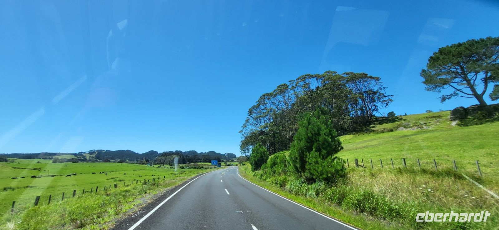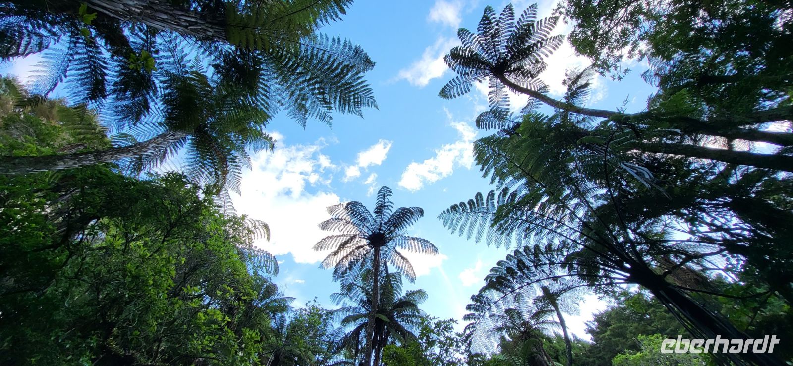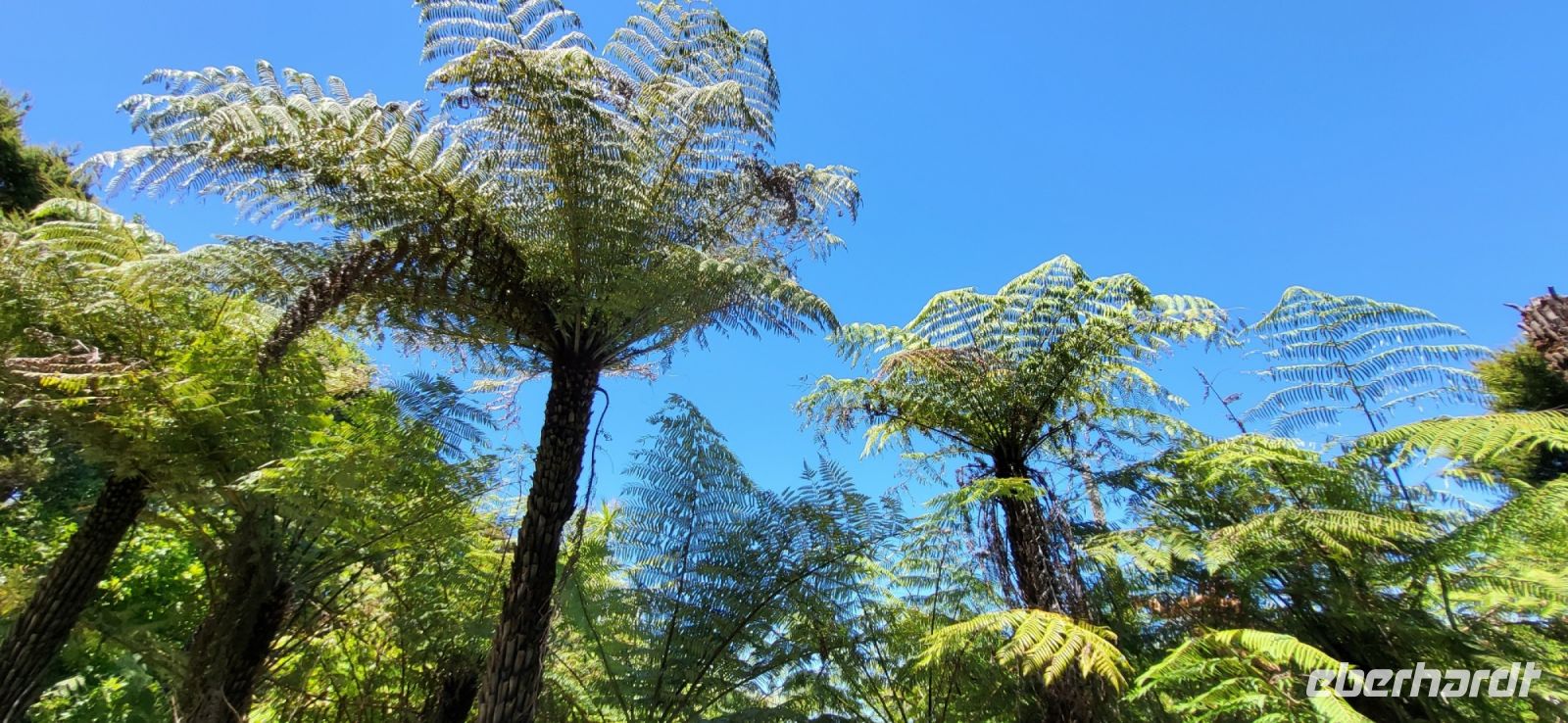 Schon vor dem Wecker ausgeschlafen, treffen wir uns zum guten Frühstück des Copthorne Hotel wieder. Im Anschluss begeben wir uns auf Citytour Auckland. Als Erstes führt uns Martin auf den in 190 m Höhe gelegenen Mount Eden, einen der vielen Vulkankegel der Stadt, mit einem herrlichen Blick auf die gesamte Skyline Aucklands. Das Ganze bei blauem Himmel und Sonnenschein, wir können unser Glück nicht fassen. Hier erhält man einen ersten Eindruck, wie weitläufig die Stadt bedingt durch viele kleine Häuser ist, deren Bewohner sich mehr und mehr ausgebreitet haben. Wieder hinunter in der Stadt fahren wir entlang des Auckland Domain Stadtpark, mit sehr gepflegten Anlagen und dem „War Memorial“ mitten drin. Hier im Park finden im Sommer viele Konzerte und Veranstaltungen statt. Des Weiteren durchfahren wir den gepflegten Vorort Parnell, vorbei am alten Bahnhof und erreichen nach einem Supermarkt für erste Besorgungen, den berühmten Skytower von Auckland, wo wir von Eberhardt TRAVEL heute einen Besuch inklusive erhalten. So geht es mit 2 Aufzügen in schwindelnde Höhe von 220 m, der Turm jedoch gesamt 328 m misst und somit 40 m niedriger als der Berliner Fernsehturm. Auch hier natürlich eine fantastische Aussicht mit Rundumblick, dass alles zu besten Wetterbedingungen. Unsere Mittagspause verbringen wir am Hafen und starten dann weiter zum Flughafen um nochmals nach unseren Koffern zu fragen. Dank unserer Hartnäckigkeit, dem Einverständnis unseres Driverguides Martin und der Geduld unserer Gäste, entscheiden wir möglichst so lange zu bleiben, bis wir unsere Koffer wiedersehen. Knappe 5 Std. später sollte uns dies gelingen-aber Ende gut-alles gut. Der Aufwand hat sich mehr als gelohnt und alle waren heilfroh, das Mitgebrachte endlich wieder in Empfang nehmen zu können. Noch eine 1.5-stündige Fahrt nach Hamilton, wo wir heute übernachten. Die Zeit überbrückt Martin mit vielen interessanten Informationen und Anekdoten aus seinem Leben.