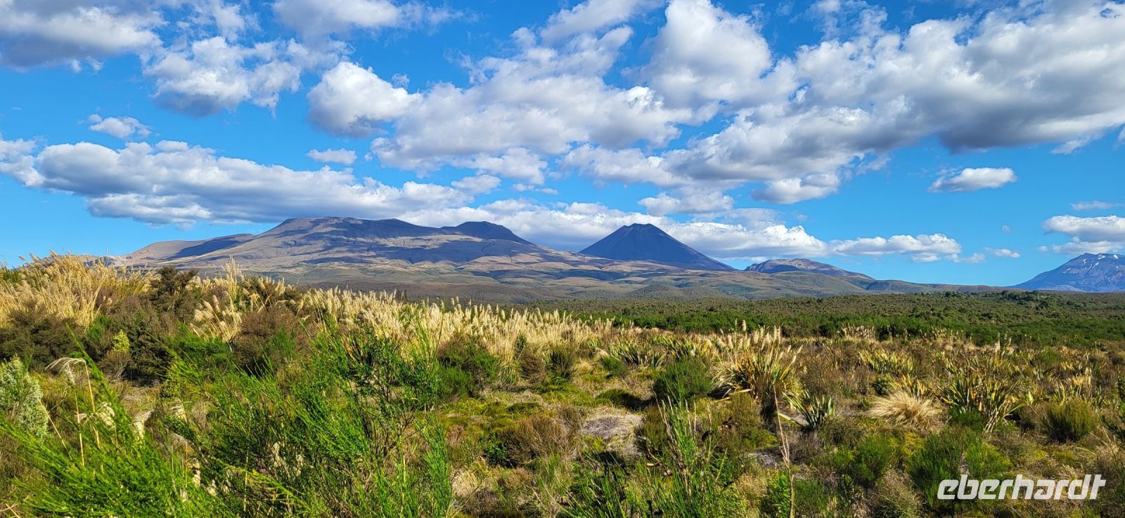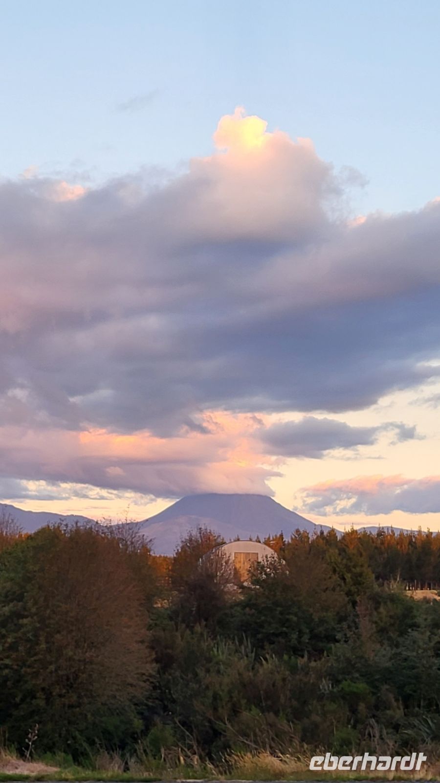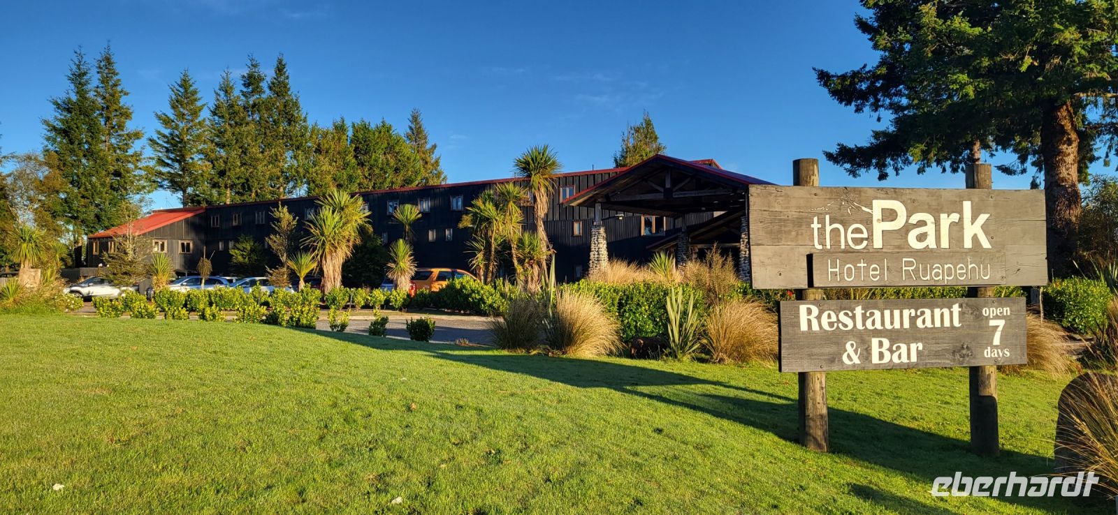 Nach einem reichhaltigen Frühstücksbuffet begeben wir uns auf den Weg nach Te Puia. In der Te Puia Thermalzone beeindrucken neben einem Kiwi-Haus und dem New Zealand Maori Arts and Crafts Institute etliche Geysire, heiße Quellen und kochende Schlammpfützen, darunter auch der größte Geysir der südlichen Hemisphäre. Ein tolles Areal, auf dem es viel zu bestaunen gibt und auch ein weiteres Kiwi-Haus steht, wo man den nachtaktiven Vogel sehen kann. Unsere Weiterfahrt führt uns zum Huka Wasserfall, bei dem das türkisfarbene Wasser durch eine enge Schlucht ca. 12 m in die Tiefe stürzt. Die Stadt Taupo bietet sich für einen Mittagsstopp an und so versorgen wir uns mit Köstlichkeiten. Im Anschluss werden wir in den Wairakei Thermalterrassen von Maori Joseph freundlich empfangen und über das Gelände geführt. Hier sehen wir nochmals mehrere Stammessymbole und –häuser, dazu die imposanten Terrassen, in denen Besucher bei verschieden hohen Temperaturen die heilende Wirkung der Thermalbäder genießen können. Zu Kaffee und Kuchen sind wir abschließend bei Iriama geladen. Die Maori begrüßt uns mit schönem Gesang und berichtet im Anschluss eindrucksvoll aus ihrem Leben und der Zerrissenheit zwischen einem Leben in der westlichen Welt und den beinahe vergessenen, zumindest in der Vergangenheit unterdrückten Riten, Gebräuche und Sprache der Maori. Auf unserer Weiterfahrt am riesigen Lake Taupo entlang, sammeln wir noch ein paar Mitbringsel in Form von Bimssteinen. Dieser Vulkansee ist mit 616 Km² größer als der Bodensee und bietet das beste Forellenfanggebiet des Landes. Am frühen Abend haben wir unser Tagesziel im Nationalpark erreicht und unser Abendessen in gemütlicher Runde beendet einen erneut interessanten Reisetag.