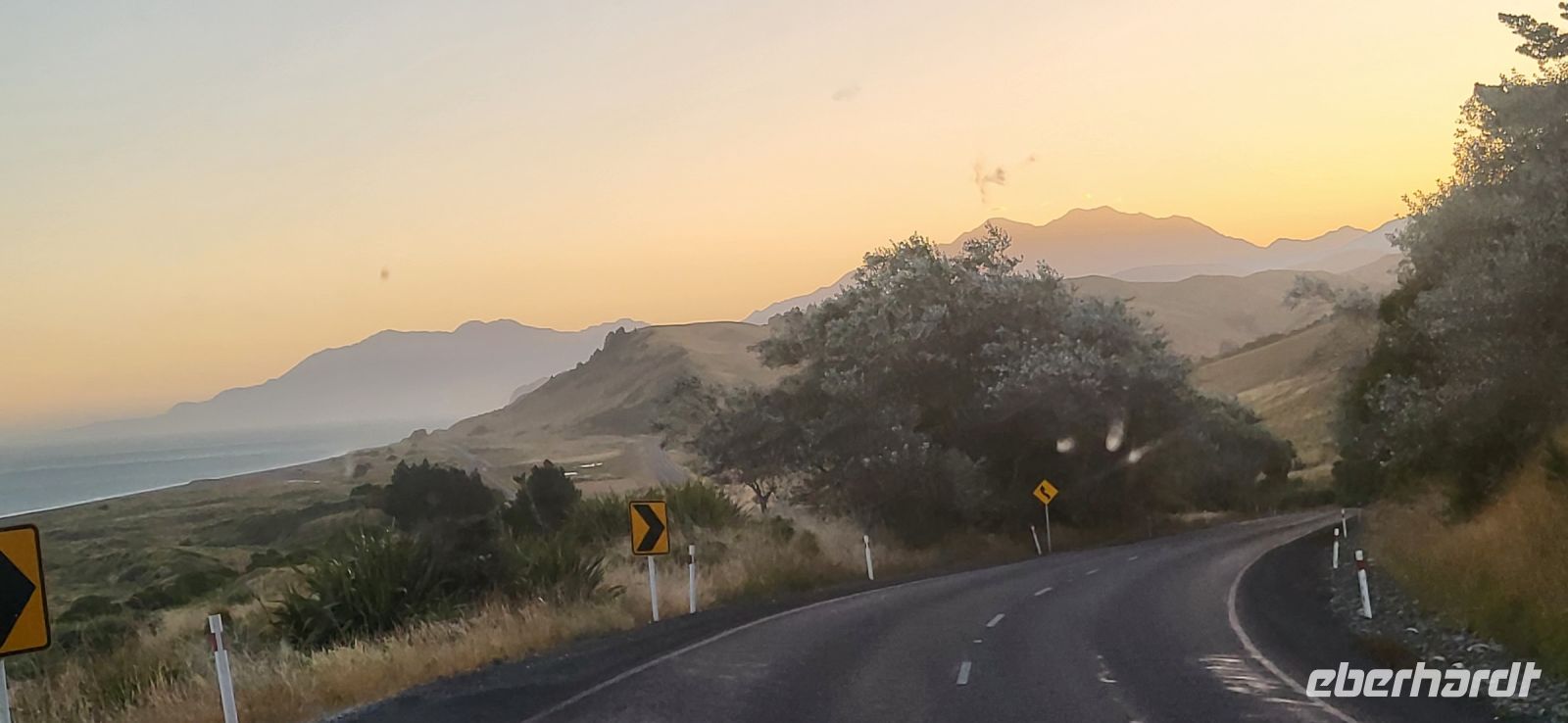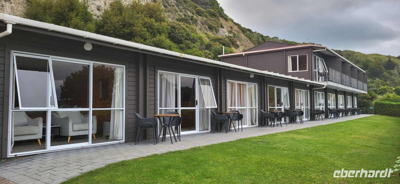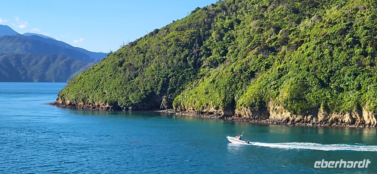 Es erreicht uns die Nachricht, dass heute unsere morgendliche Fähre leider gecancelt wurde und wir auf die Nachmittagsfähre umgebucht wurden. Somit haben wir noch die schöne Gelegenheit außerplanmäßig noch mehr Zeit in Wellington zu verbringen. Nach einem gemütlichen Frühstück, verladen des Gepäcks in unseren Bus, fährt uns Martin hoch zum Botanischen Garten, der den Besuchern sogar kostenlos zur Verfügung steht. Ein herrlich weitläufiges Areal führt uns durch traumhafte, üppige Natur und wir sind sehr erstaunt, eine solche Idylle so nah der Großstadt vorzufinden. Vom Baumhaus über Rosengarten, zum Begonienhaus und Kräutergarten, wird uns Gästen viel geboten. Über einen uralten Friedhof gelangen wir final wieder in die Stadt zurück und spazieren wieder zu unserem Hotel, von wo aus wir mit Martin zum Hafen fahren und unsere Überfahrt nach Picton/Südinsel starten. Es erfolgt eine Traumüberfahrt und wir können uns vor Fotomotiven nicht retten. Eine wunderbare Fjordlandschaft bei gutem Wetter und ruhiger See lässt uns schwärmen, dass wir so viel Glück haben. Nach Ankunft in Picton, dem nördlichen Hafen der Südinsel, geht es weiter Richtung Kaikoura. Wir passieren das Weinanbaugebiet Marlborough mit schier unzähligen Weinreben links und rechts unseres Weges. Wir hören, dass die Südinsel ca. 1,6 Millionen Bewohner hat, genauso wie die Stadt Auckland alleine. Im Gegensatz zur Nordinsel, die die zarte Insel genannt wird, spricht man von der Südinsel von der dramatischen Insel. Wir fahren weiter am Pazifik entlang, der auch ‚das stille Meer‘ genannt wird und erreichen am Abend unsere nächste Unterkunft, das Panorama Hotel. Wir sind sehr begeistert von der tollen Lage und Gemütlichkeit unserer Zimmer. So schlafen wir hier bestens bei Sternenhimmel, Blick aufs Meer und Meeresrauschen. Gerne würden wir noch länger bleiben …