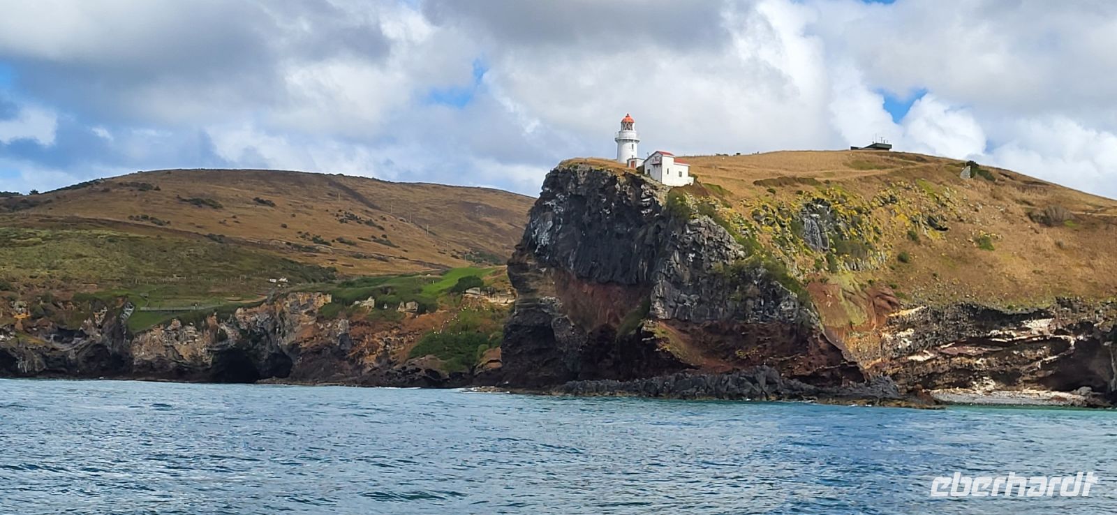 Nach einem frühen, jedoch sehr guten Frühstück verlassen wir Lake Tekapo. Herrliche Berglandschaften mit Gletscherseen ziehen an uns vorüber und so halten wir mehrfach, um beispielsweise die Kulisse des Lake Pukaki und Lake Arimore aufnehmen zu können. Da ja bekanntlich die gesamte Südinsel Neuseelands so viele Einwohner wie ganz Auckland hat, sind wir hier gefühlt alleine unterwegs und genießen die menschenleere Natur. In Omaru angekommen, führt uns Guide Klaus zum Deutschen Bäcker, wo uns herrlich deutsches Brot und leckere Backwaren erwarten. Anschließend schlendern wir entlang der historischen, aus Kalk-Sandstein erbaut Bauten der Harbour Street und fühlen uns in andere Zeiten versetzt. Gegen Mittag erreichen wir den Küstenbereich, wo die bekannten Moeraki Boulders (Felskugeln), die einzigartig in Neuseeland nur hier zu sehen sind. Eine herrliche Kulisse lädt nach Wetterberuhigung zum Spaziergang am Meer ein. Am frühen Nachmittag erreichen wir die schottischste Stadt Neuseelands-Dunedin, die auch als Poetenstadt gilt. Hier waren und sind noch viele Autoren, Dichter und Politiker ansässig. Hier befindet sich auch die steilste Straße der Welt, die Baldwinstreet mit 33 % Gefälle, die wir noch schnell erklimmen und die Aussicht von oben über die Stadt genießen. Doch zurück zu Dunedin. Da wir noch einen Termin zu einer Bootsfahrt auf der Otago Halbinsel haben, unternehmen wir hier zunächst eine orientierende Stadtrundfahrt. Wir sehen die Universität, die Sporthalle, Feuerwehr, den historischen Bahnhof, das Gericht und direkt daneben das Gefängnis. Eine schöne Weiterfahrt entlang der Küste führt uns pünktlich zum Bootssteg, wo unser Ausflugsschiff Monarch bereits auf uns wartet. Unser Ziel ist es, die berühmten Königsalbatrosse zu sehen, welche eine Flügelspanne von bis zu 3 m erreichen. Sie sind absolute Flugkünstler und Meister der Energieersparnis. Sie fliegen mit bis zu 100 Km/h und können aufgrund der Thermik und einrastbaren Flügeln bis zu 1000 Km innerhalb von 24h zurücklegen. Durch eine Art innerkörperliche Entsalzungsanlage können diese auch Meerwasser trinken und somit lange Zeit ohne Festland und Frischwasser auskommen. Sie lassen nicht lange auf sich warten und beeindrucken uns mit ihren Flugkünsten. Wir staunen über deren Größe und Akrobatik. Auf den Felsen des naheliegenden Festlands sehen wir einen schönen Leuchtturm und an dessen Bucht am Ufer weitere Pelzrobben und zig brütende Albatrosse. Eine tolle einstündige Bootsfahrt vergeht wie im Flug und wir kehren zum weniger schaukligen Ufer zurück. Nach unserer Rückkehr nach Dunedin wartet unser sehr schönes Übernachtungshotel und ein noch schmackhafteres 3-Gänge-Abendessen lässt uns bald darauf einen wohlverdienten Schlaf genießen.
