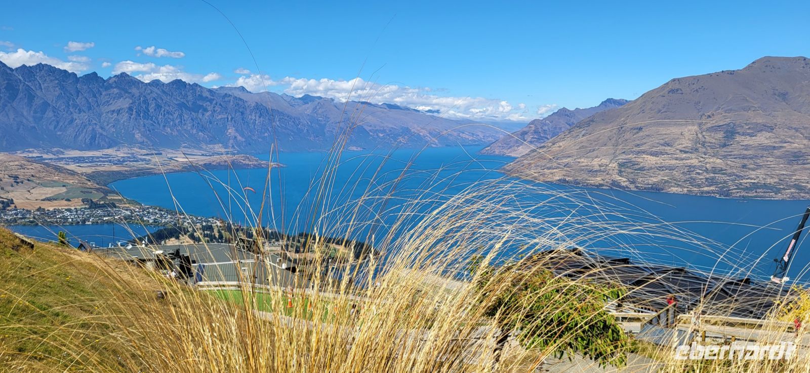 Heute heißt es ausschlafen, genüsslich frühstücken und den Tag ohne Programm nach Lust und Laune genießen. Wer mag, trifft sich vormittags mit Susanne zu einem kleinen Ausflug. Da die Sonne noch auf sich warten lässt, beschließen wir zunächst in den stadtnahen Botanischen Garten zu spazieren. Vor Ort empfängt uns eine herrliche Ruhe, tolle Natur und schöne Aussichten auf den See und den quirligen Ort. Mittags nehmen wir die Gondel zum Bob’s Peak. Hoch oben auf 480 m Höhe haben wir einen unfassbar schönen Blick auf Queenstown, gelegen am 3. größten neuseeländischen See Lake Wakatipu, der 291 Km² misst und an manchen Stellen bis zu 380 m tief ist. Umrahmt wird die Szenerie von den Neuseeländischen Alpen, die zum Greifen nah erscheinen. Wir beobachten zudem das Treiben der Paraglider und viele junge Besucher nutzen die Möglichkeit, der hier errichteten Sommerrodelbahn und sausen über diese zurück zur Bergstation. Wieder im Tal angekommen, dürfen wir ausgiebig shoppen und die restlichen Stunden genießen. Abends geht es für die meisten mit dem Dampfschiff TSS Earnslaw hinaus auf den See. Eine schöne Schifffahrt erfolgt, dazu ein Landgang mit schöner Unterhaltung und schmackhaftem BBQ.