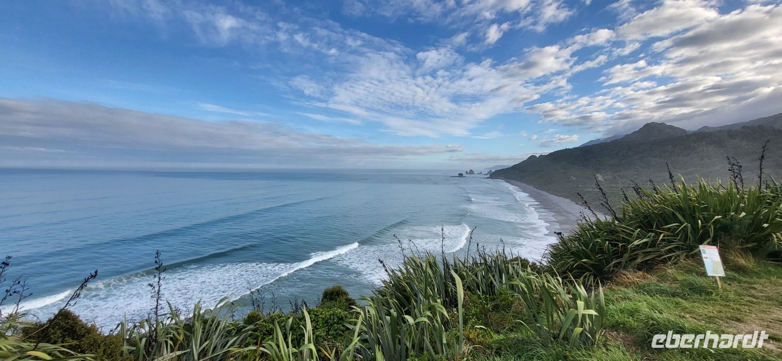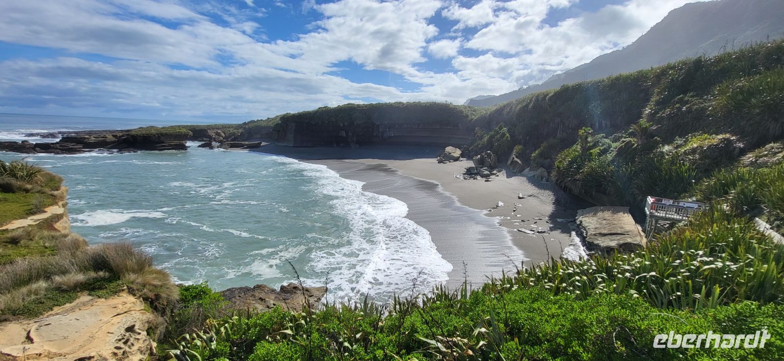Ein letzter schöner Morgen in Neuseeland beginnt damit, dass wir uns nach einem schönen Frühstück auf den Weg machen, um zunächst am Strongmen Mine Memorial anzuhalten, um die wunderschöne Steilküste und die ankommenden Wellen zu fotografieren. Weiter geht es zu den bekannten Pancake Rocks-Die Pfannkuchenfelsen. Ein schöner Rundweg lässt die Fotoapparate glühen und man kann sich kaum satt sehen an dieser Laune der Natur, deren Felsen wie aufgeschichtet erscheinen, umrahmt vom tosenden Meer de Tasmanischen See. Im Anschluss geht es zum Paparoa Nationalpark, hier unternehmen wir auf dem Truman Track eine schöne Wanderung, die am Meer endet. Überall sind nun wieder die besonderen Nikaupalmen zu sehen, die wie Fächer aus dem Gebüsch herausragen. Die morgendliche Stille und nur wenige Besucher tragen zur besonderen Atmosphäre dieses schönen Weges bei. Anschließend steuern wir ein besonders schönes Plätzchen am Strand an und nutzen hier die Gelegenheit bei einem Gläschen Sekt auf die schöne Reise anzustoßen und uns bei unserem liebgewonnenen Reiseleiter Klaus zu bedanken, der uns grandios auf dem zweiten Teil unserer Neuseelandreise geführt und gefahren hat. In herrlicher Kulisse, mit Blick auf das Meer, vollem Sonnenschein, blicken wir in viele strahlende Gesichter und sind uns einig, an einer einzigartigen Reise teilgenommen zu haben. Wieder in Greymouth erfolgt dann der Check-in für die heutige Zugfahrt mit dem TranzAlpine, der uns in 4,5 Std. nach Christchurch fahren wird. Dieser verspätet sich wie immer ein bisschen und gibt es ausreichend Gelegenheit noch einen Mittagssnack in einem der umliegenden Cafés einzunehmen. Um 14.30 Uhr geht die Reise dann doch endlich los und wir genießen die landschaftlichen Eindrücke, die uns über den Arthurs Pass in 735 m Höhe führen. Da auch die neuseeländische Bahn ähnlich wie bei uns in Deutschland den Ruf genießt, selten pünktlich zu sein, so erreichen auch wir Christchurch erst am frühen Abend. Klaus, der den Bus parallel zu uns nach Christchurch gefahren hat, hat uns netterweise schon alle Koffer auf die Zimmer gebracht, sodass vor Ort alles sehr schnell geht. Ein letztes sehr schmackhaftes Abendessen erfolgt in gemütlicher Runde und wir stoßen nochmals auf ein unvergessliches Abenteuer Neuseeland an.