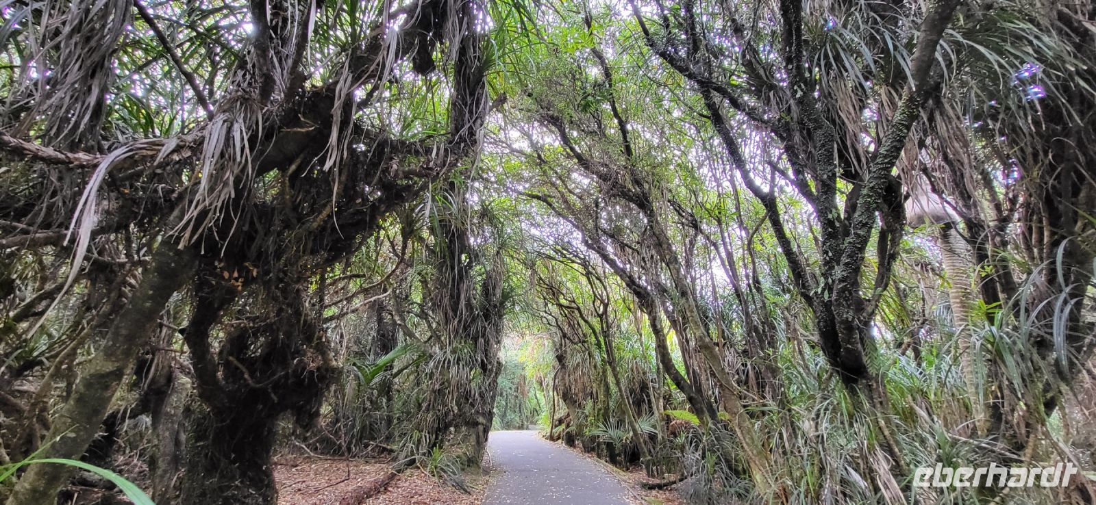Nach einer geruhsamen Nacht und einem tollen Frühstücksbuffet mit sehr viel Auswahl ist unser morgendliches Ziel die bekannten und sehr gepflegten Gärten Hamiltons. Hier spazieren wir gemütlich durch die verschiedenen Themenbereiche und finden Sektionen aus Indien, Ägypten, Italien und der Maori vor. Einfach herrlich, ein unglaubliches Farbspiel aus verschiedenen Pflanzen, Blumen und Architektur. Einzig die wetterbedingte Planänderung unserer Reiseroute ermöglichte uns hier die Zeit und den Besuch einzuplanen. Auch durften wir ein Empfangsritual der Maori bestaunen, die für eine Fernsehübertragung die Fußballmannschaften der Damenweltmeisterschaft 2023 in Neuseeland und Australien willkommen hießen. Auf der Weiterfahrt unserer Reise berichtet Martin darüber, dass die ersten Siedler viele Tiere nach Neuseeland brachten, die sich längst als Plage und schädlich für die hiesige Tier-und Pflanzenwelt erwiesen. So auch mittlerweile 80-90 Millionen Opossums, die einst für die Pelzproduktion eingeführt wurden und sich längst unkontrolliert verbreiten. Des Weiteren sehen und erfahren wir, dass sich die Viehwirtschaft allmählich verändert, statt schier endloser Schafherden vergangener Tage, sieht man heutzutage vermehrt Rinder grasen, die sich nun als wirtschaftlicher erweisen. In Whiritoa und Whangamata suchen wir die Strände des Südpazifiks auf, die jedoch aufgrund starker Strömung aktuell nicht zum Baden einladen. Stattdessen beobachten wir einen engagierten Fischer, der einen stattlichen Snaper fing. Am Nachmittag erreichen wir unser Ziel, das gepflegte Örtchen Whitianga, wo wir zwei Nächte bleiben werden. Hier finden wir neben vielen Ferienhäusern unsere türkis-strahlende neue Unterkunft im Kolonialstil, ganz in der Nähe einer tollen Bucht, gelegen, an der wir entlang spazieren und den Abend in den einheimischen Lokalen ausklingen lassen.