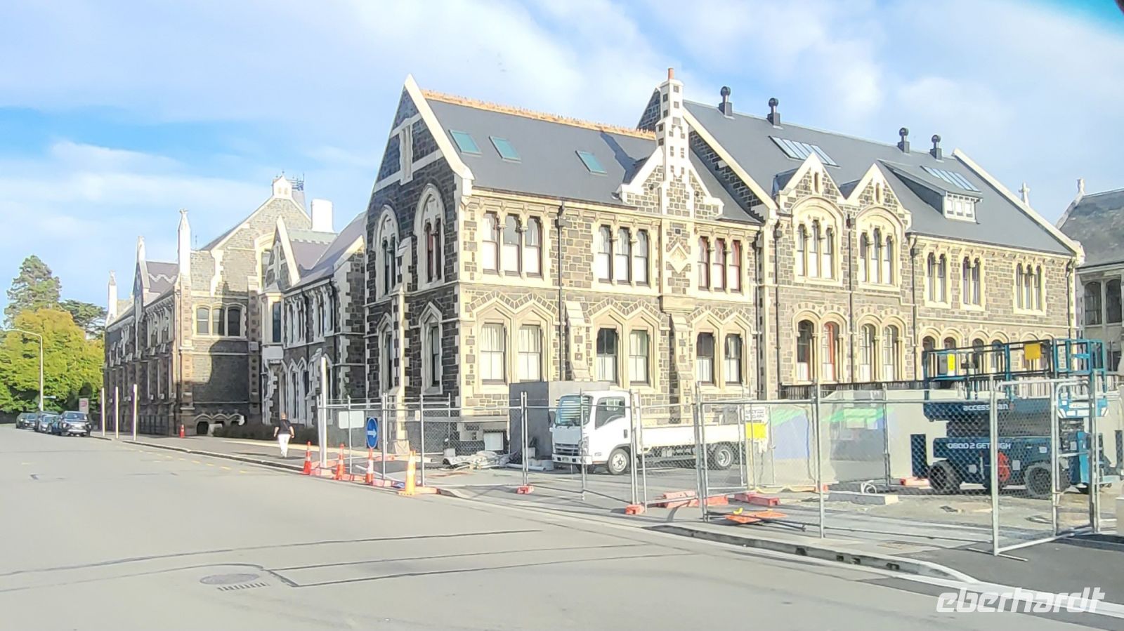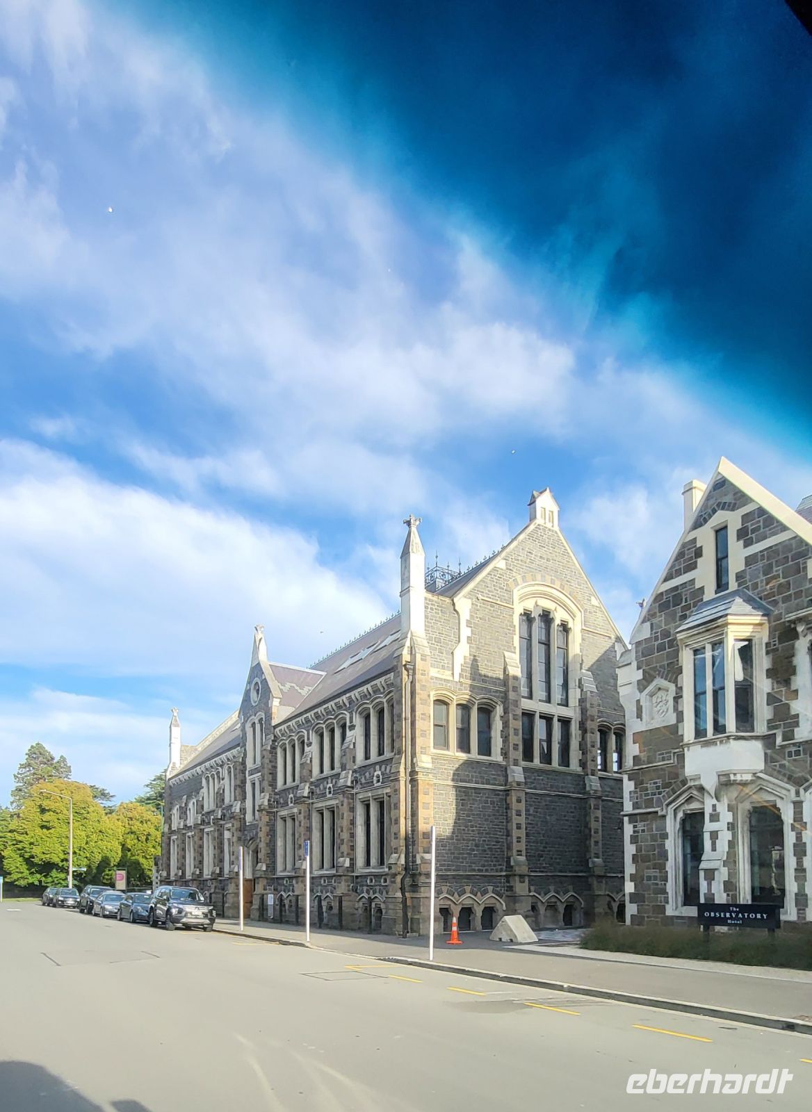 Nochmals herrlich übernachtet und gefrühstückt, alle Koffer gepackt und schon geht es zum Flughafen. Netterweise unternimmt Reiseleiter Klaus nochmals mit uns eine kleine Stadtrundfahrt, sodass wir auch die City von Christchurch kennenlernen dürfen. Diese ist leider nach wie vor vom einstigen Erdbeben von 2011 gezeichnet. So sehen wir noch so manche Freiflächen, auf denen früher Gebäude standen und viele moderne Bauwerke zeugen vom Neuaufbau der Stadt. Bedauerlicherweise gibt es nur noch wenig alte Bausubstanz, zu denen die arg in Mitleidenschaft gezogene Kathedrale zählt sowie die wunderschöne und unversehrte, ehemalige Universität. So ziehen wir weiter zum Flughafen, wo wir uns leider von unserem liebgewonnenen Reiseleiter Klaus verabschieden müssen.