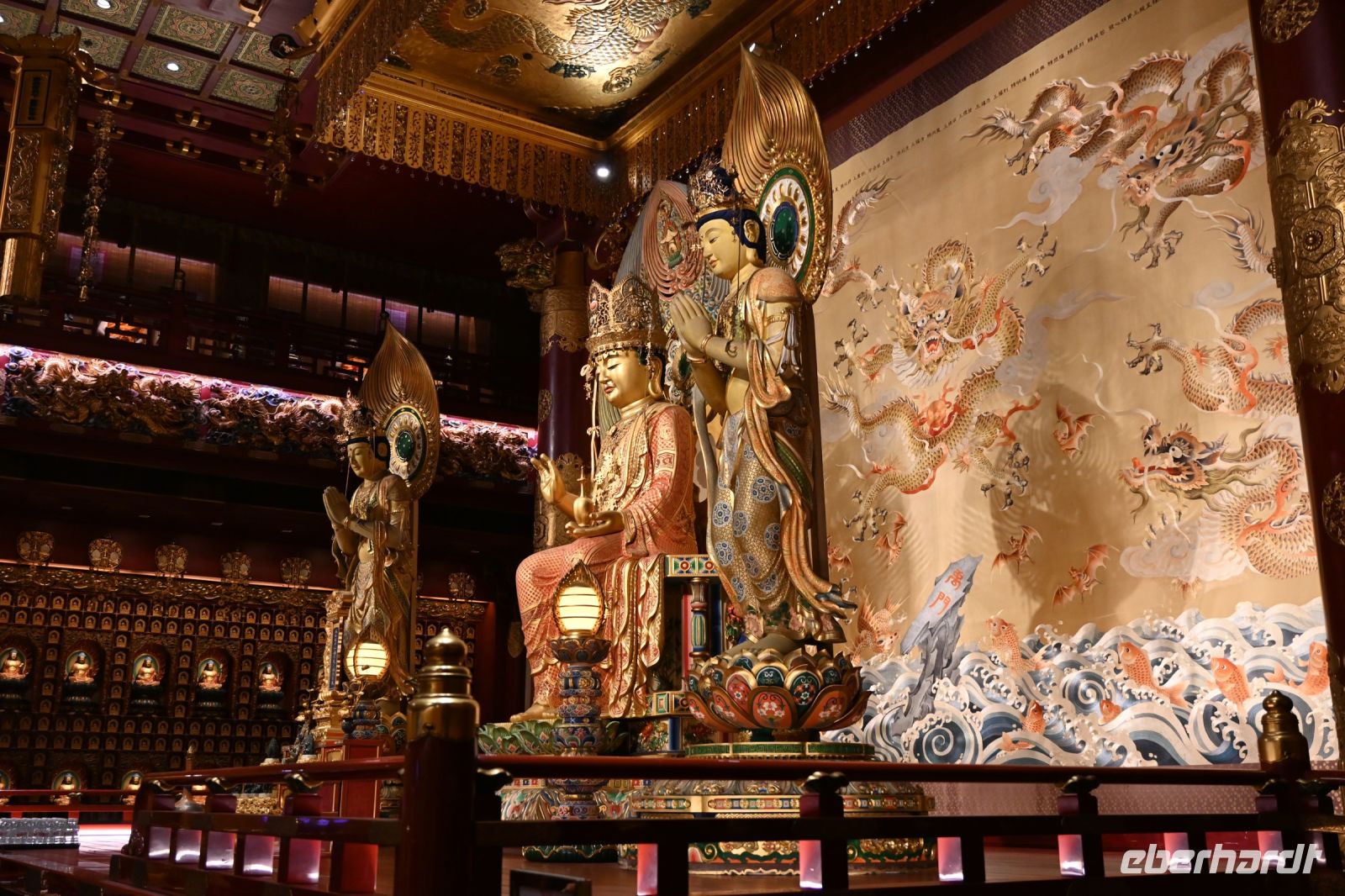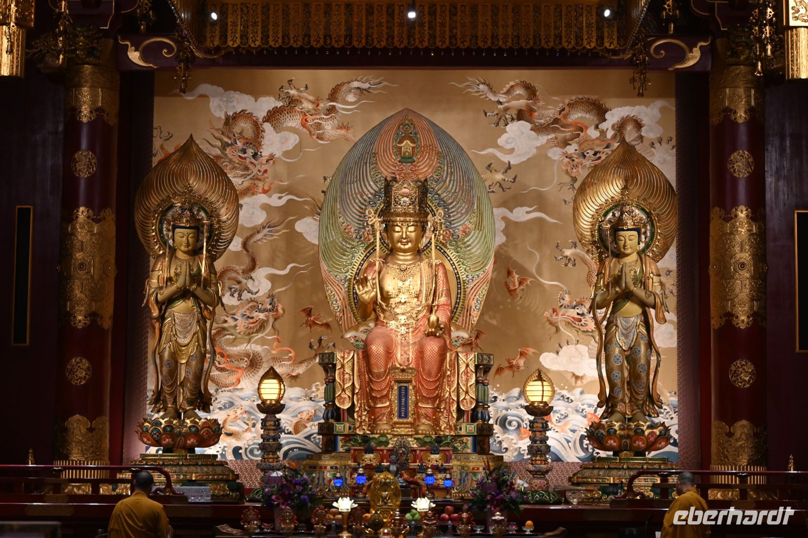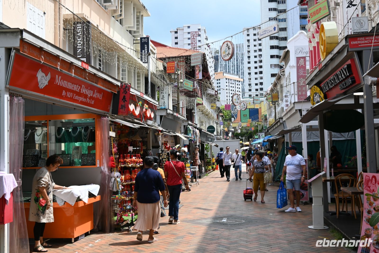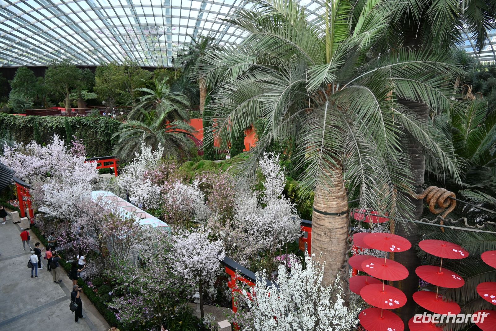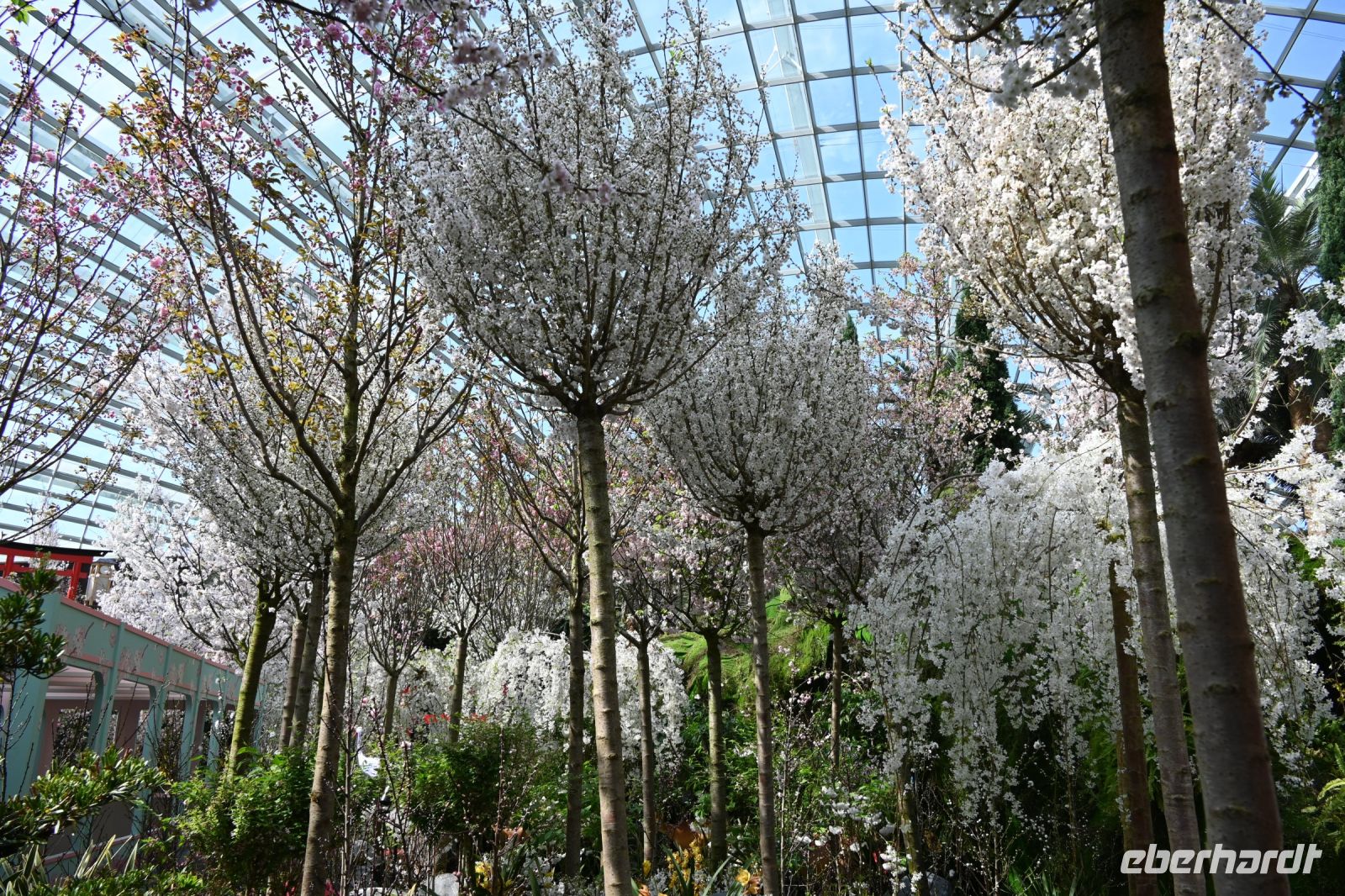 Ich informiere mich nach dem einfachsten Weg in die Stadt zu kommen und erfahre, dass das Busfahren hier ganz unkompliziert läuft. Die Haltestelle ist gleich ein paar Meter weiter, also los. Schon nach kurzer Fahrtzeit stehen wir vor der einmaligen Kulisse des Marina Bay Sands. Unser Ziel ist diesmal der „Flower Dome“ des Gartens. Zum Glück ist noch nicht so viel los und wir haben schnell unsere Tickets. Im Gewächshaus blühen alle möglichen Arten von Blumen, viele auch bekannt von zu Hause. Außerdem ist gerade die Zeit der Kirschblüte und die Ausstellung ist auch diesem Thema gewidmet. Wieder an der „frischen“ Luft drehen wir noch eine Runde durch den Park und bestaunen die Supertrees bei Tageslicht, bevor es wieder mit dem Bus zurück zum Hotel geht. Wir holen die Koffer und treffen uns mit unserer heutigen Reiseleiterin Martine. Für uns fünf steht ein großer Reisebus zur Verfügung. Nach jedem Stopp könnten wir also einen neuen Sitzplatz ausprobieren. Während der sechs Stunden Rundfahrt erklärt uns Martine alles, was über Singapur und seine Einwohner wichtig ist. So erfahren wir, dass 13% der Einwohner Millionäre sind.