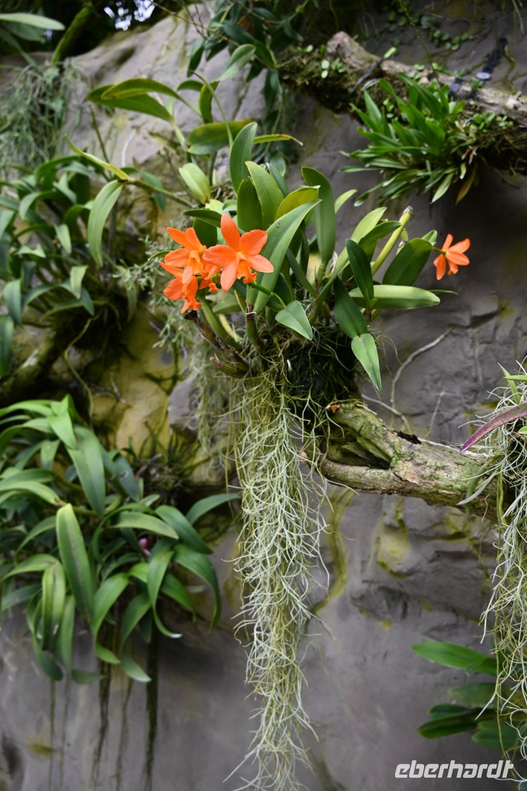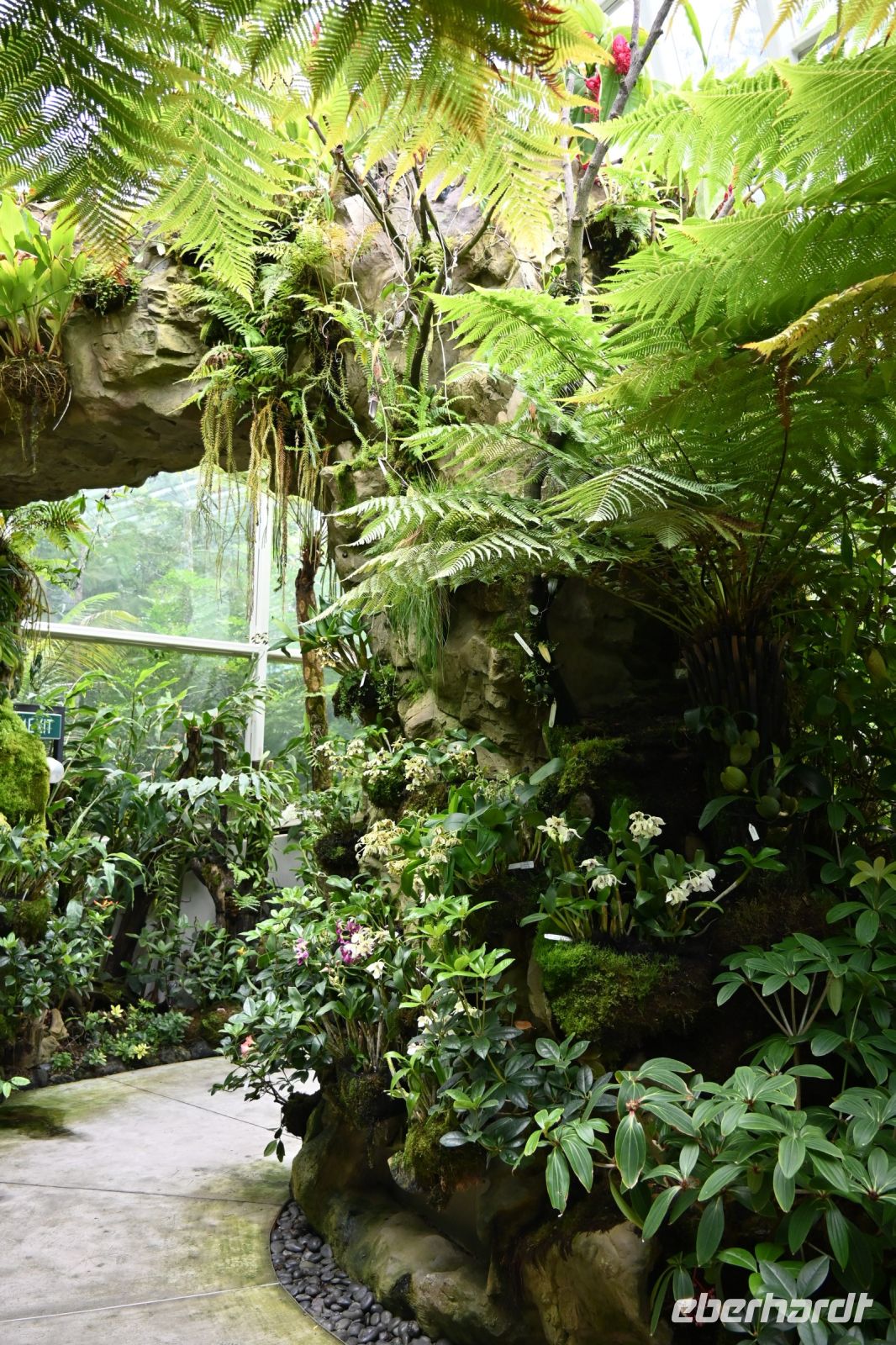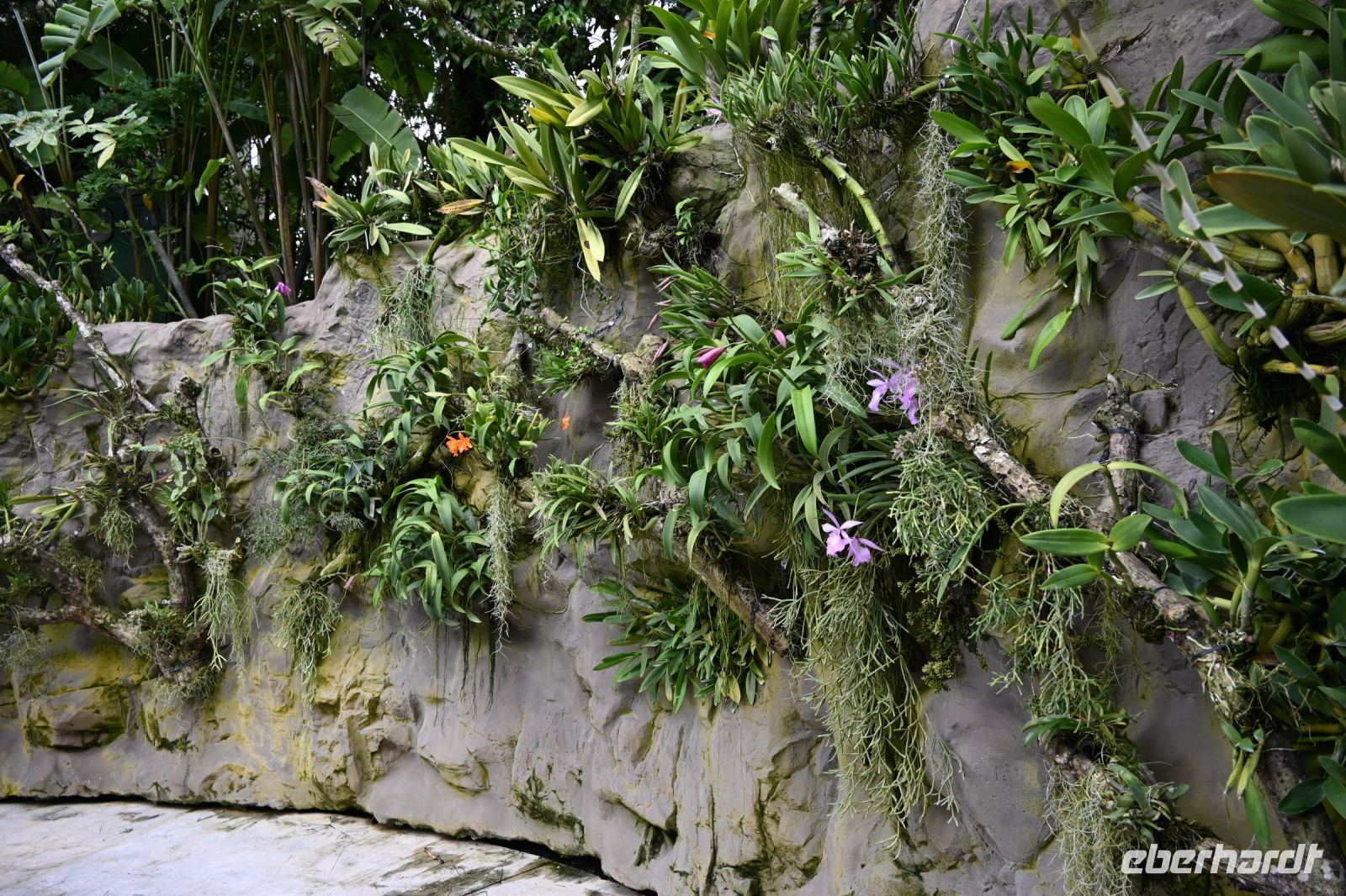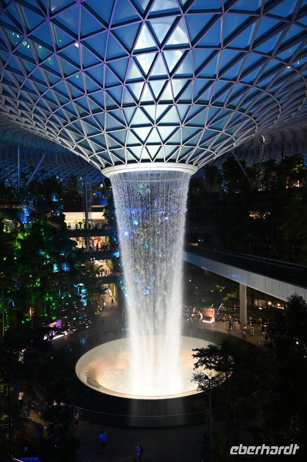 Unseren ersten Stopp machen wir am „Marina Bay Sands“ Hotel, ein Aufzug bringt uns ganz nach oben und wir haben einen wundervollen Blick auf die Stadt und können sogar bis Malaysia schauen. Von hier oben sieht man auch gut die Formel-1 Strecke mitten durch die Stadt, eine Tribüne mit 27.000 Sitzplätzen wurde hier auch direkt an der Bucht gebaut. Unsere Rundfahrt setzen wir fort durch das chinesische Viertel, wo wir eine kurze Mittagspause einlegen. Bevor die dunklen Wolken noch näherkommen, bringt uns Martine zum Orchideen-Garten. Unzählige Arten, darunter auch Prominente, können wir hier bestaunen. Der Park ist wunderschön angelegt und die Pflanzen blühen ganzjährig. Unser Bus nimmt die Straße durchs indische Viertel und schließlich ins arabische Viertel. Hier ist noch ein kurzer Stopp geplant, um uns die größte Moschee Singapurs anzuschauen. Auf dem Rückweg zum Bus fängt es dann an zu gewittern und der Regen wird immer stärker. Somit drehen wir nur noch eine kleine Runde durchs Kolonialviertel und dann geht es zum Changi Flughafen Singapur. Am Check-in ist wenig los, so sind wir unsere Koffer schnell los und nehmen den Sky-Train um uns das Highlight des Flughafens anzuschauen – den Jewel. Inmitten dieses Gebäudekomplexes, wo man auch Einkaufen und Essen gehen kann, wurde ein kleiner Regenwald mit einem 40 Meter hohem, trichterförmigen Wasserfall gebaut. Dieses Spektakel verkürzt uns die Wartezeit etwas und mit etwas Verspätung und einer langen Fahrt auf dem Rollfeld starten wir gegen 23 Uhr nach Neuseeland.