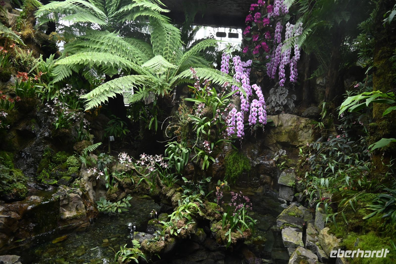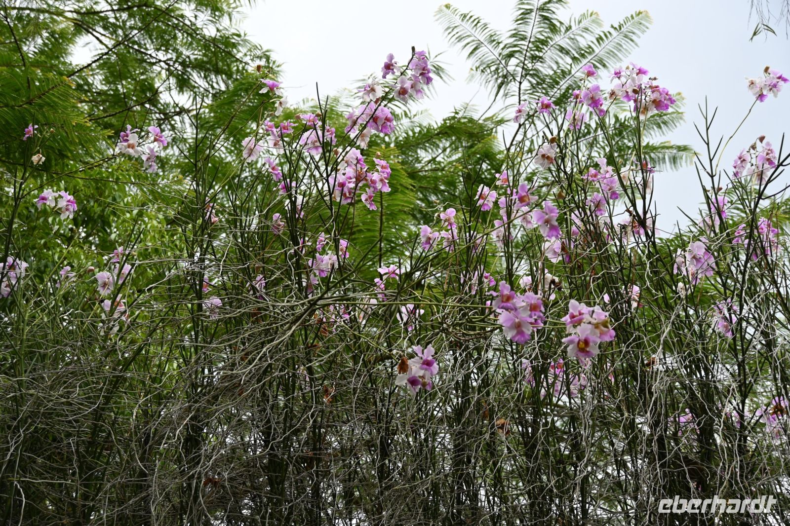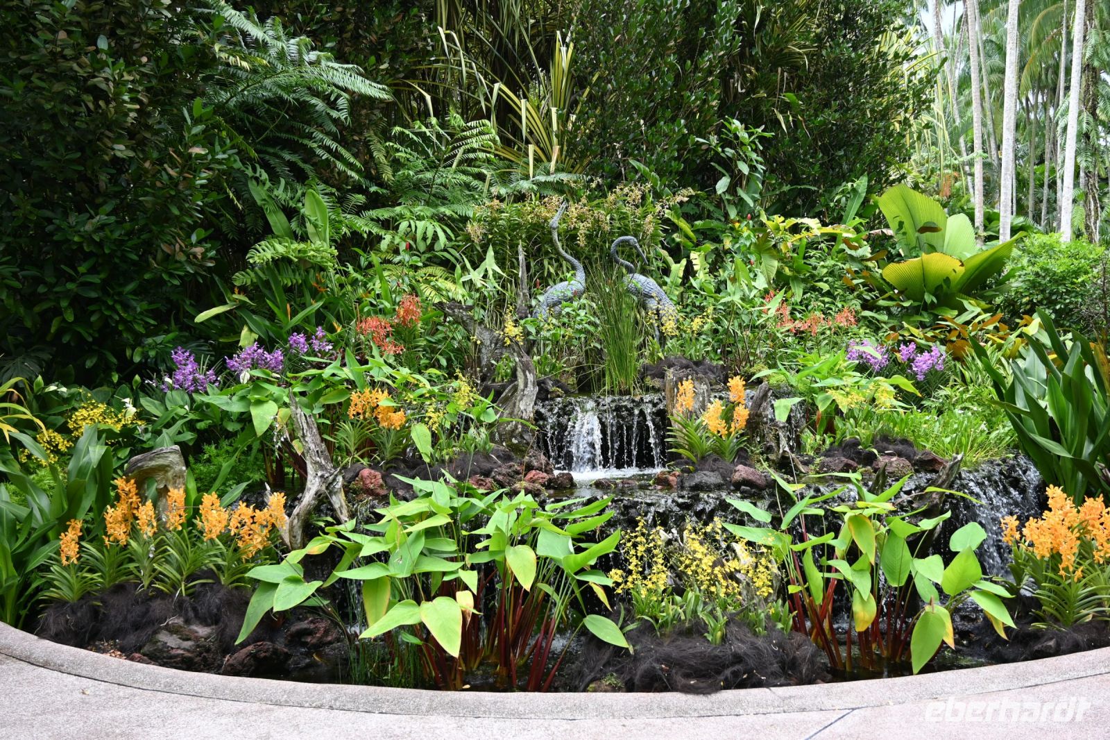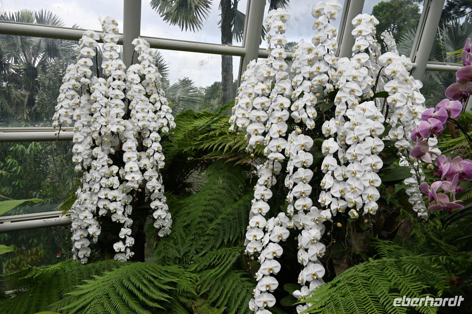 Unseren ersten Stopp machen wir am „Marina Bay Sands“ Hotel, ein Aufzug bringt uns ganz nach oben und wir haben einen wundervollen Blick auf die Stadt und können sogar bis Malaysia schauen. Von hier oben sieht man auch gut die Formel-1 Strecke mitten durch die Stadt, eine Tribüne mit 27.000 Sitzplätzen wurde hier auch direkt an der Bucht gebaut. Unsere Rundfahrt setzen wir fort durch das chinesische Viertel, wo wir eine kurze Mittagspause einlegen. Bevor die dunklen Wolken noch näherkommen, bringt uns Martine zum Orchideen-Garten. Unzählige Arten, darunter auch Prominente, können wir hier bestaunen. Der Park ist wunderschön angelegt und die Pflanzen blühen ganzjährig. Unser Bus nimmt die Straße durchs indische Viertel und schließlich ins arabische Viertel. Hier ist noch ein kurzer Stopp geplant, um uns die größte Moschee Singapurs anzuschauen. Auf dem Rückweg zum Bus fängt es dann an zu gewittern und der Regen wird immer stärker. Somit drehen wir nur noch eine kleine Runde durchs Kolonialviertel und dann geht es zum Changi Flughafen Singapur. Am Check-in ist wenig los, so sind wir unsere Koffer schnell los und nehmen den Sky-Train um uns das Highlight des Flughafens anzuschauen – den Jewel. Inmitten dieses Gebäudekomplexes, wo man auch Einkaufen und Essen gehen kann, wurde ein kleiner Regenwald mit einem 40 Meter hohem, trichterförmigen Wasserfall gebaut. Dieses Spektakel verkürzt uns die Wartezeit etwas und mit etwas Verspätung und einer langen Fahrt auf dem Rollfeld starten wir gegen 23 Uhr nach Neuseeland.