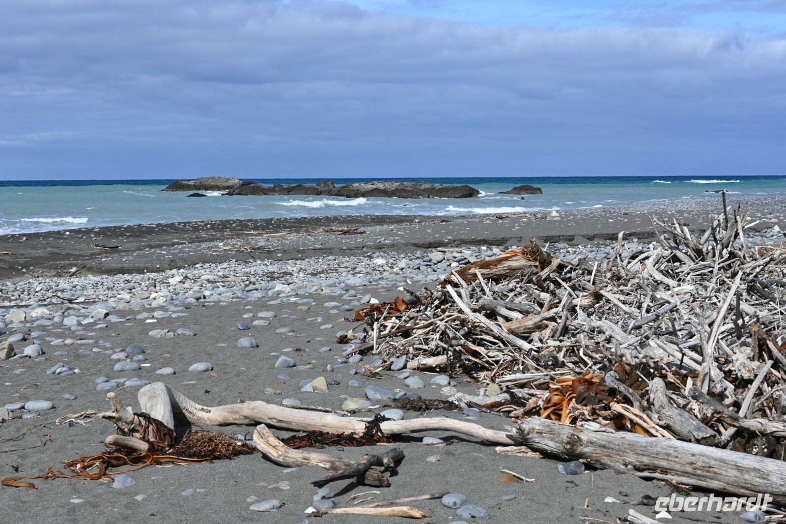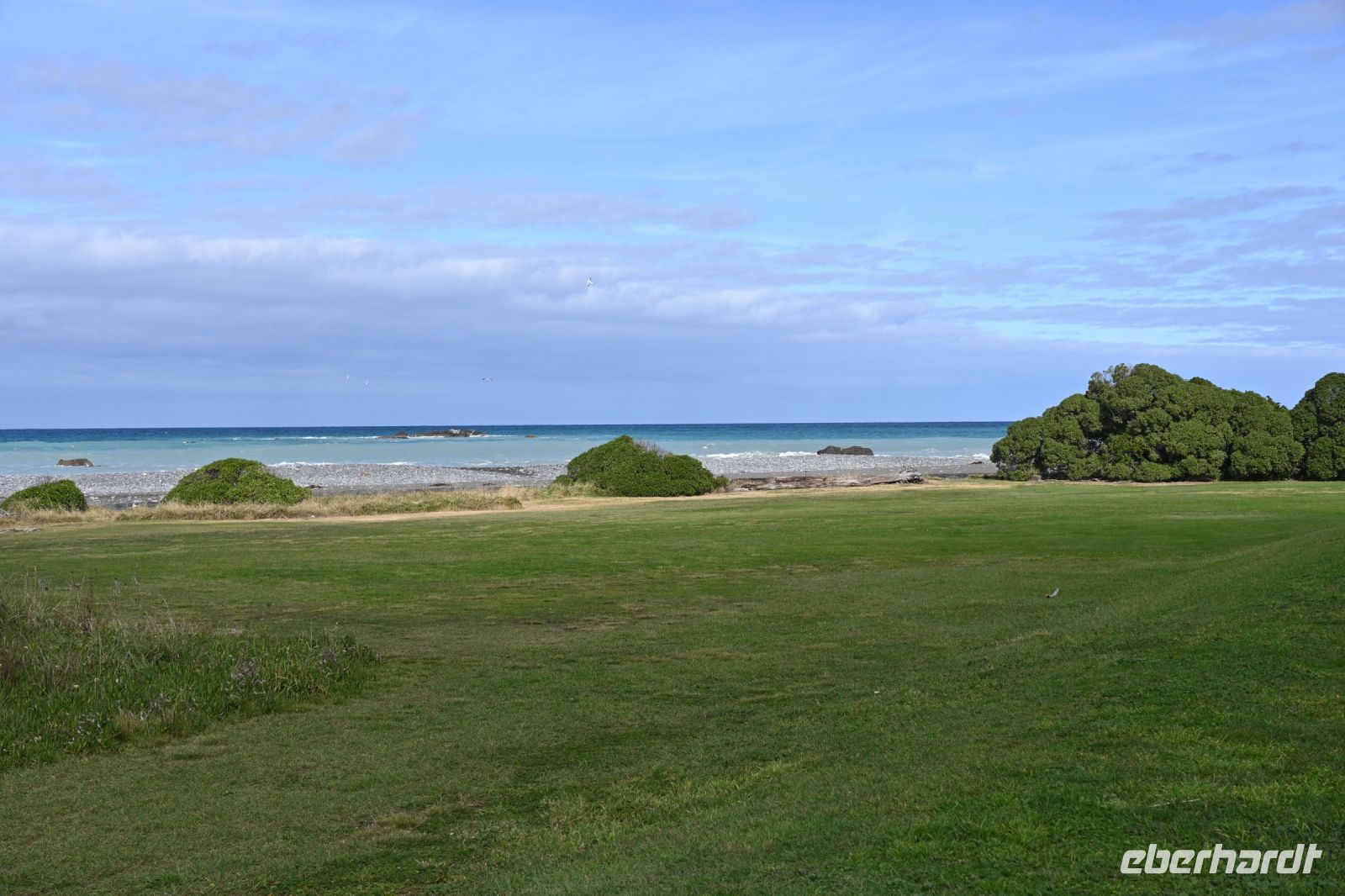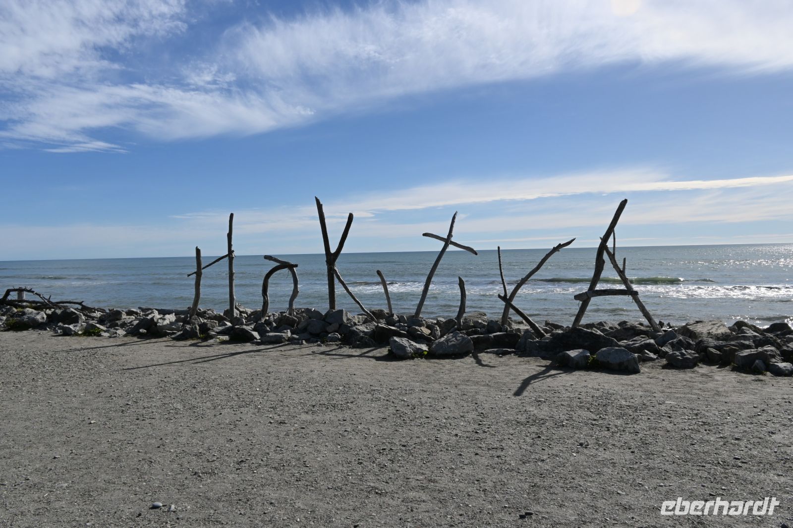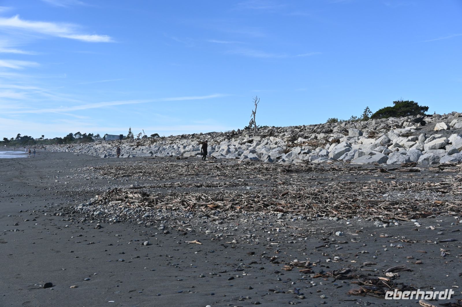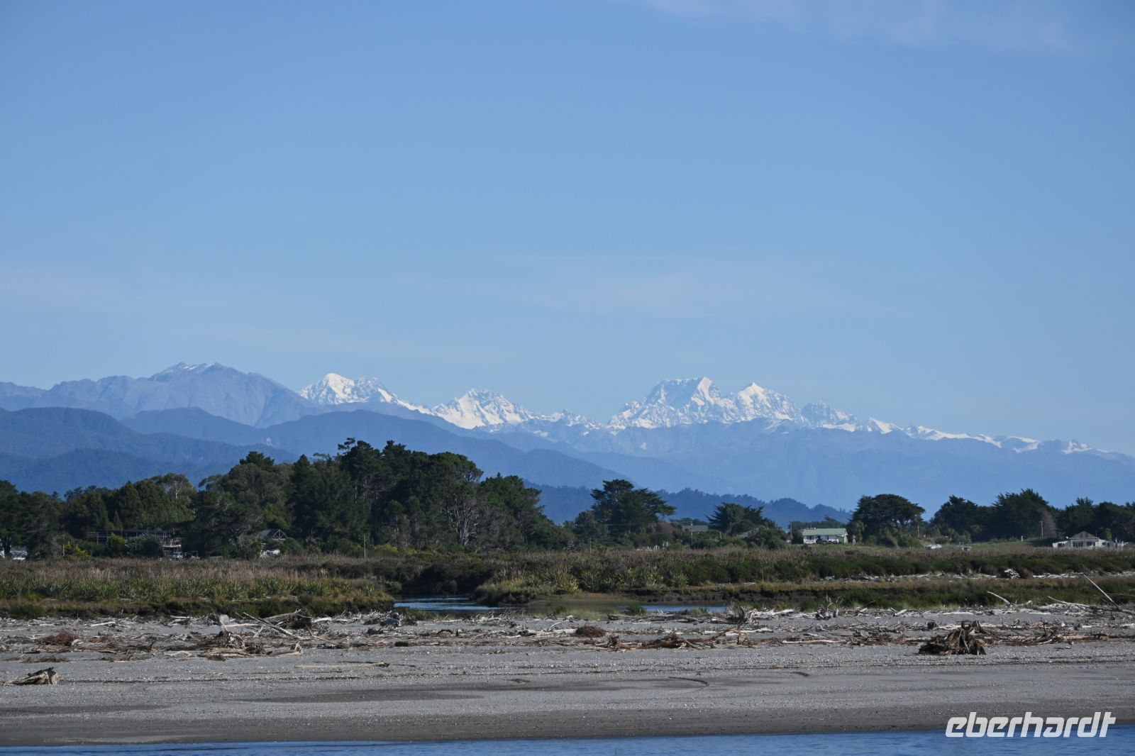Unsere Mittagspause machen wir in Hokitika. Der kleine Ort liegt direkt an der Westküste und hat einen wunderbaren Strand. Von hier können wir immer noch die beiden höchsten Berge sehen. So ein Glück haben die Wenigsten. Hokitika ist bekannt für die Verarbeitung von Pounamu, also Jade. In einem der zahlreichen Geschäfte finden Schmuckliebhaber sicher etwas.