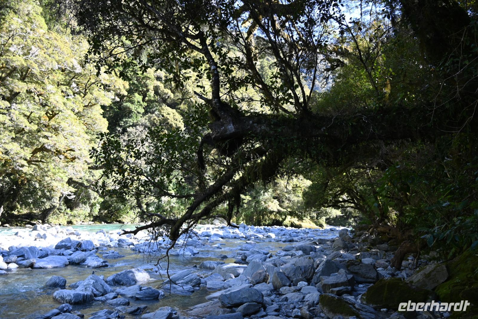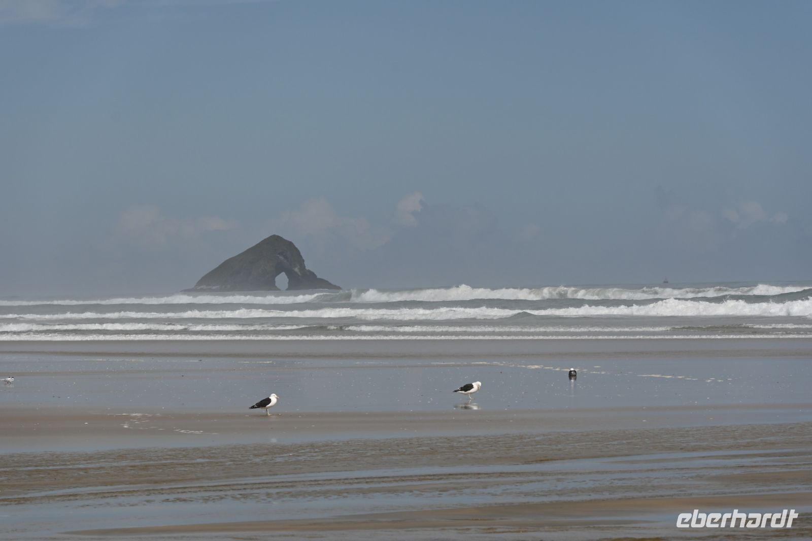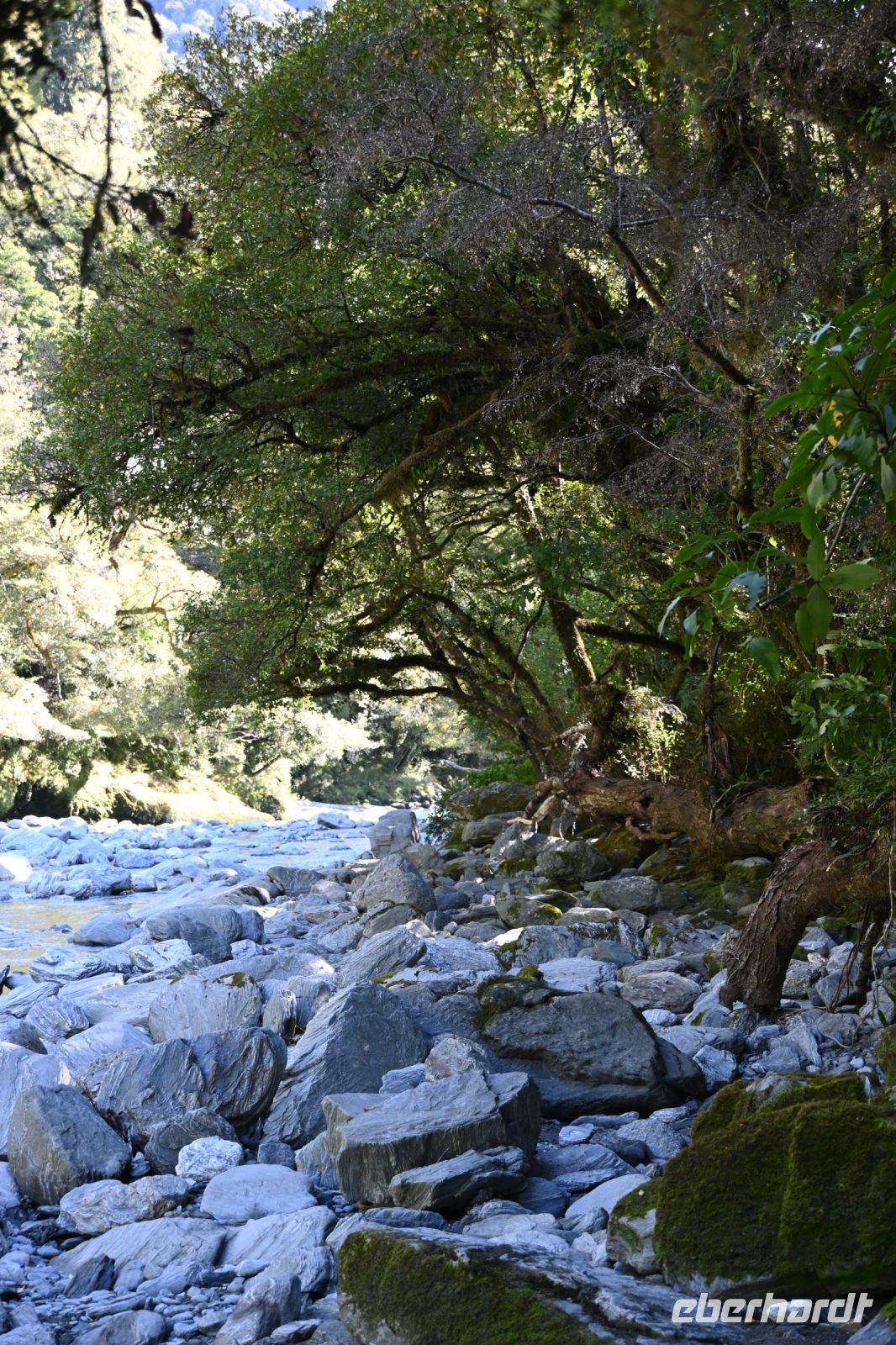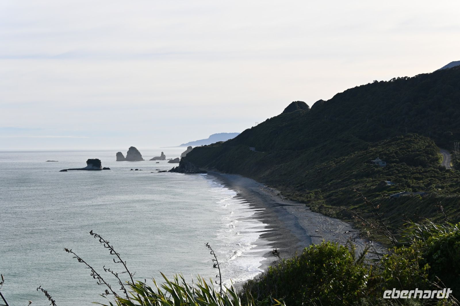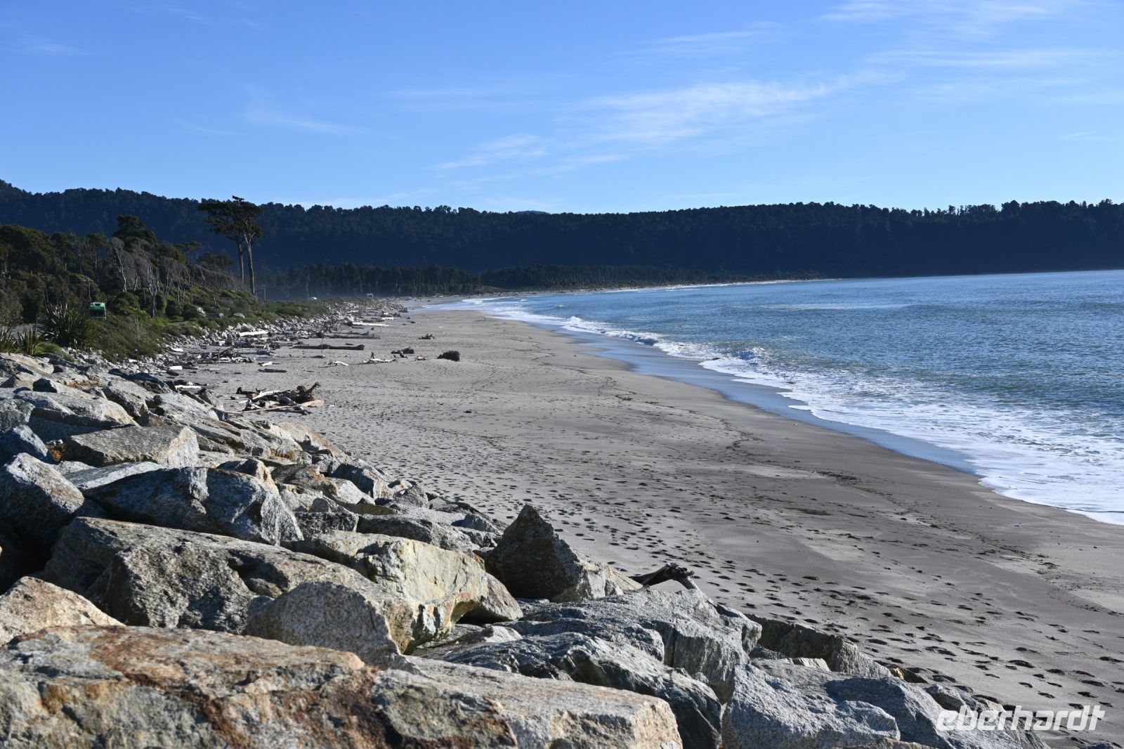 Unsere Mittagspause machen wir in Hokitika. Der kleine Ort liegt direkt an der Westküste und hat einen wunderbaren Strand. Von hier können wir immer noch die beiden höchsten Berge sehen. So ein Glück haben die Wenigsten. Hokitika ist bekannt für die Verarbeitung von Pounamu, also Jade. In einem der zahlreichen Geschäfte finden Schmuckliebhaber sicher etwas.