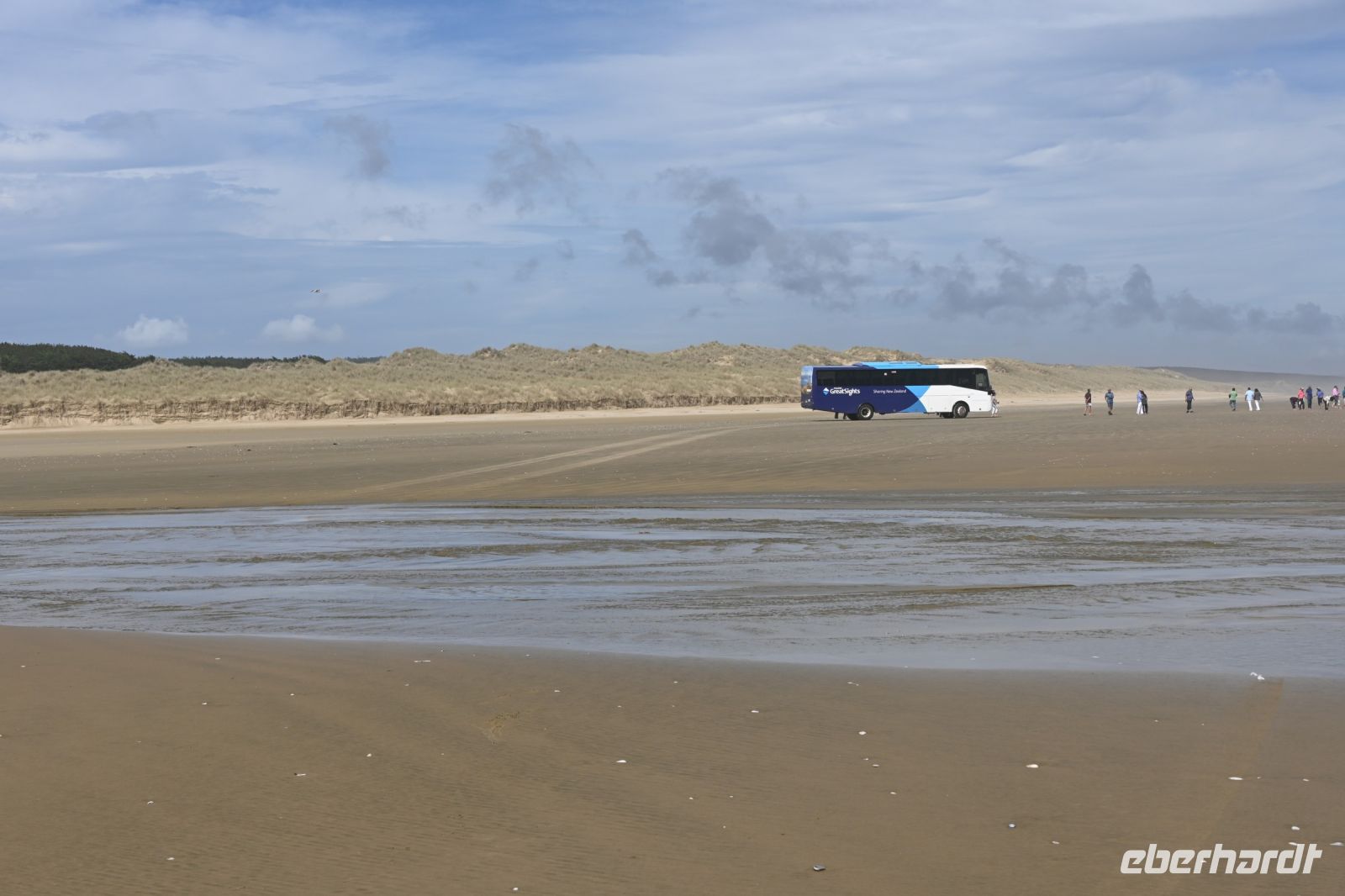 Den Rückweg nehmen wir entlang der Westküste und auch diese ist ganz besonders. Denn die offizielle Straße ist der Strand. Jedoch sollte und kann hier nicht jeder fahren, denn die Zufahrtswege sind entweder zu weich oder in Form eines Flussbettes. Doch unser Bus meistert beides mit Bravour und so haben wir in circa einer Stunde den Ninety Mile Beach befahren. Genau genommen ist dieser aber nur 88 Kilometer, also 54 Meilen lang.