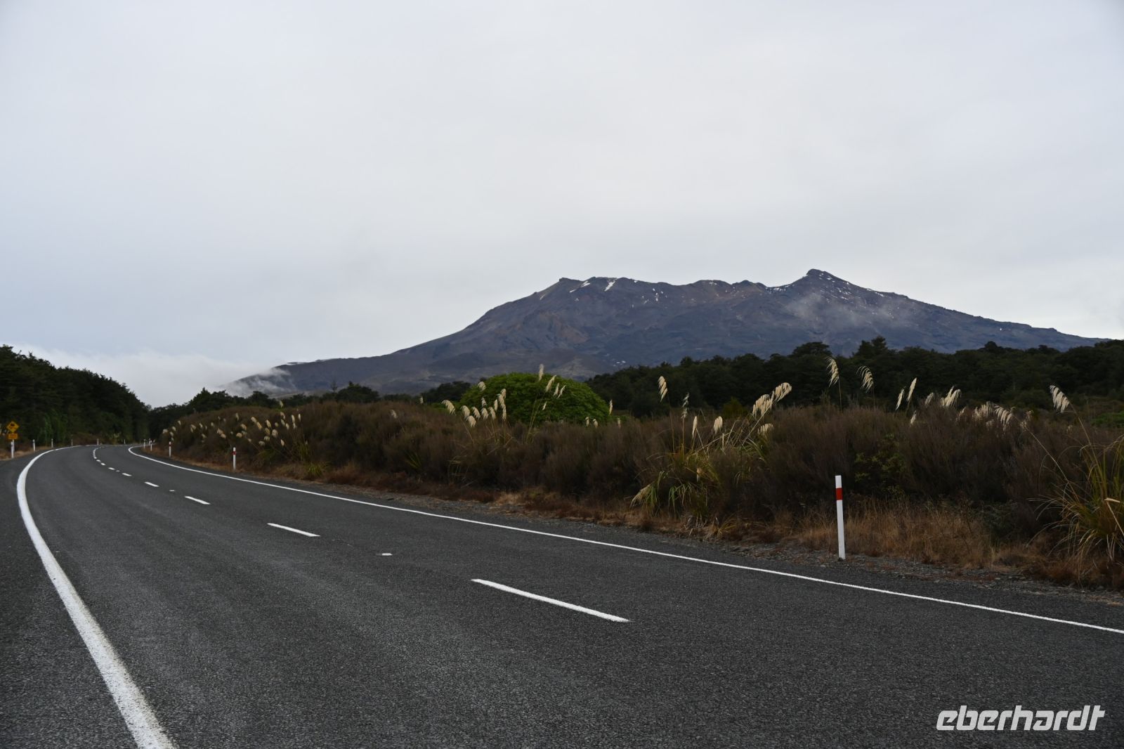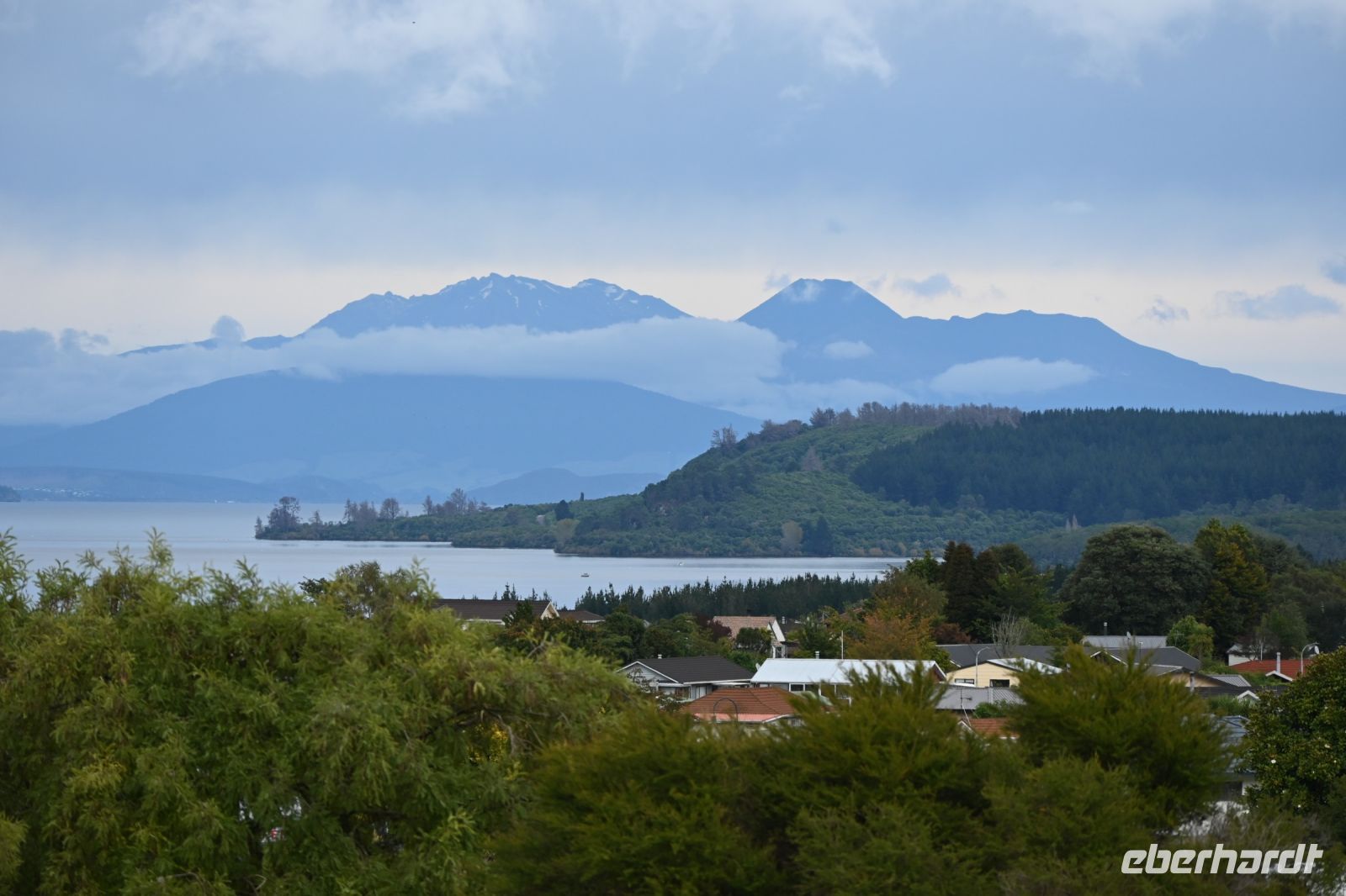 Nach diesem bewegenden Treffen haben wir Freizeit und nutzen diese in den heißen Quellen oder im Café. Anschließend heißt es wieder „Der Weg ist das Ziel“ und wir sitzen längere Zeit im Bus. Wir lassen die Geysire und den Schwefelgeruch hinter uns und kommen schon bald am Lake Taupo an. Von hier hat man bereits einen Blick auf die drei Vulkane am anderen Ende des Sees. Am Fuße von Ruapehu, Tongariro und Ngauruhoe wollen wir heute die Nacht verbringen. Es gibt wohl keine Meldung zu einem bevorstehenden Ausbruch. Der letzte Ausbruch war 1975 von Ngauruhoe, dem mittleren der drei Vulkane mit 2.291 Metern. Ngauruhoe wurde mit der „Herr der Ringe“-Verfilmung berühmt und lockt jedes Jahr viele Filmfans an. Doch wer den 2.287 Meter hohen Berg besteigen will, muss eine fast 20 Kilometer lange Wanderung auf sich nehmen.