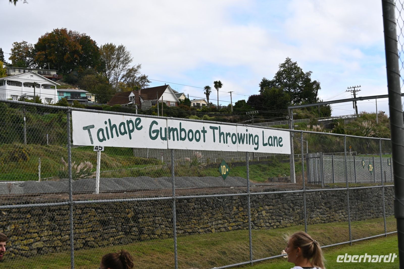 Unser Ziel ist heute Wellington und man merkt, dass die Orte auf dem Weg sich etwas ausdenken mussten, um die einfache Durchreise der Touristen zu verhindern. So hat Ohakune seinen „Carrot Park“ mit einer 7.5 Meter großen Karotte. Wir aber haben einen Stopp in Taihape geplant. Hier gibt es nicht nur einen guten Kaffee, sondern auch eine riesige Gummistiefel-Skulptur. Diese weist in dem ländlichen Ort auf die jährlich stattfindenden Gummistiefelweitwurf-Wettkämpfe hin. Auch wir können uns hier beweisen und unsere eigene Technik für diesen ungewöhnlichen Sport ausprobieren. Bis zum Mittag passieren wir viele Plantagen. Vor allem Kiwis und Avocados werden hier angebaut.
