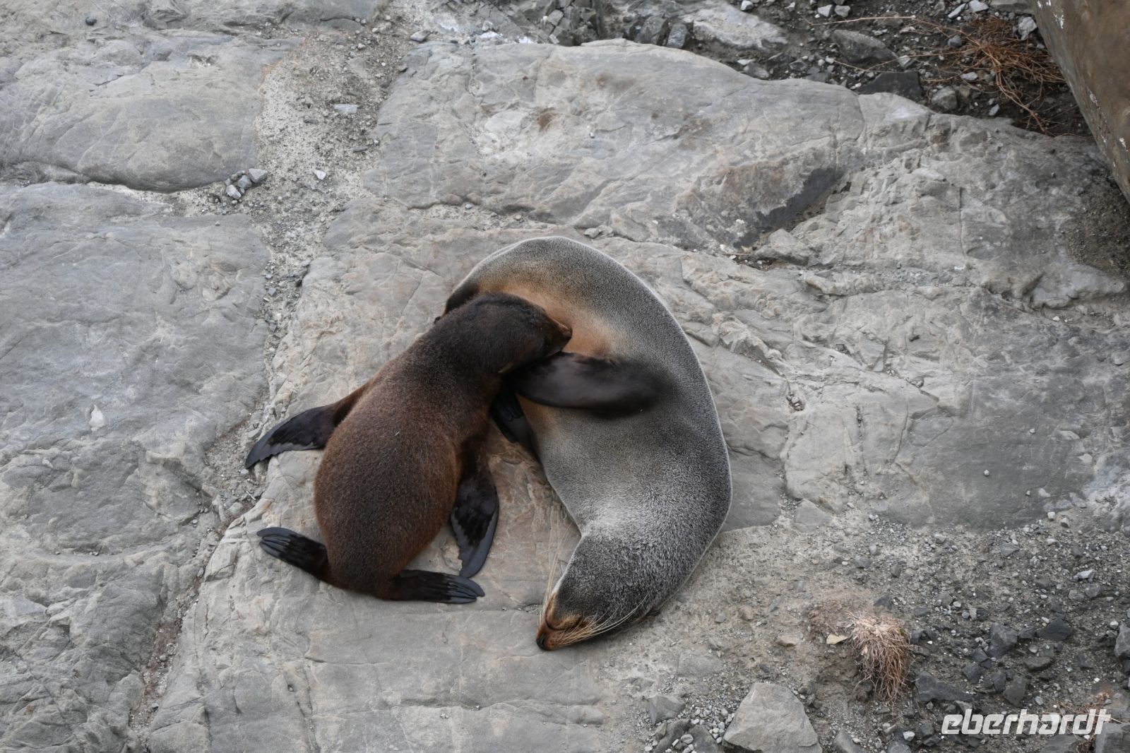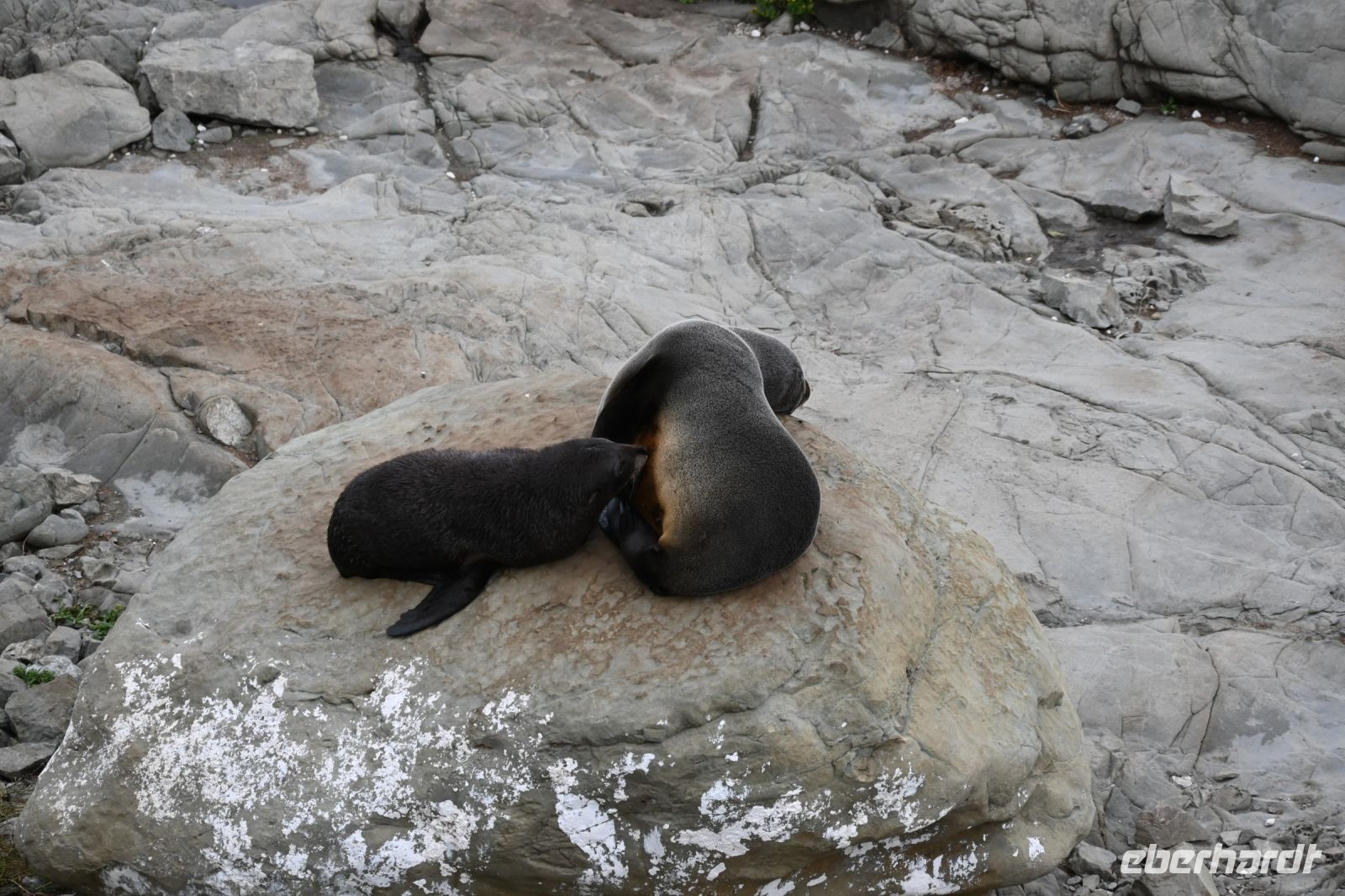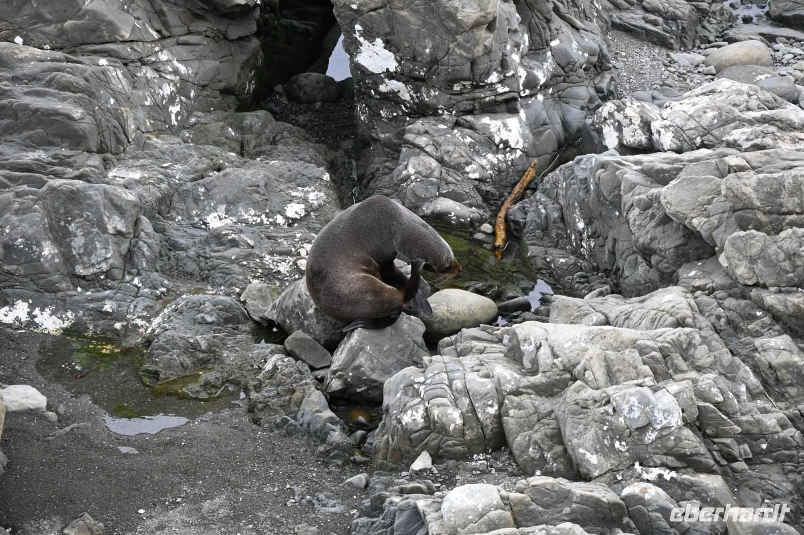 Bevor wir unser heutiges Ziel erreichen, machen wir noch einen Stopp an der Küste. Hier ist ein Paradies für die neuseeländische Pelzrobbe. Viele von diesen liegen hier auf den Steinen, säugen ihre Jungen oder spielen in den kleinen natürlichen Wasserpools. Ein schöner Stopp an dem es viel zu sehen gibt. Weiter geht es, denn einige von uns haben sich heute für den Flug mit Wings oder Wales entschieden. Das Wetter passt, also kann es los gehen. Die restliche Gruppe bringen Helle und ich ins Hotel. Offensichtlich mussten heute viele Flüge nachgeholt werden, denn als wir zum Flughafen zurückkehren, um die vier abzuholen, begeben diese sich erst zum Flieger. Bei der Rückkehr blicken wir in traurige Gesichter, heute waren keine Wale oder Delfine zu sehen. Die Natur kann man leider nicht beeinflussen.