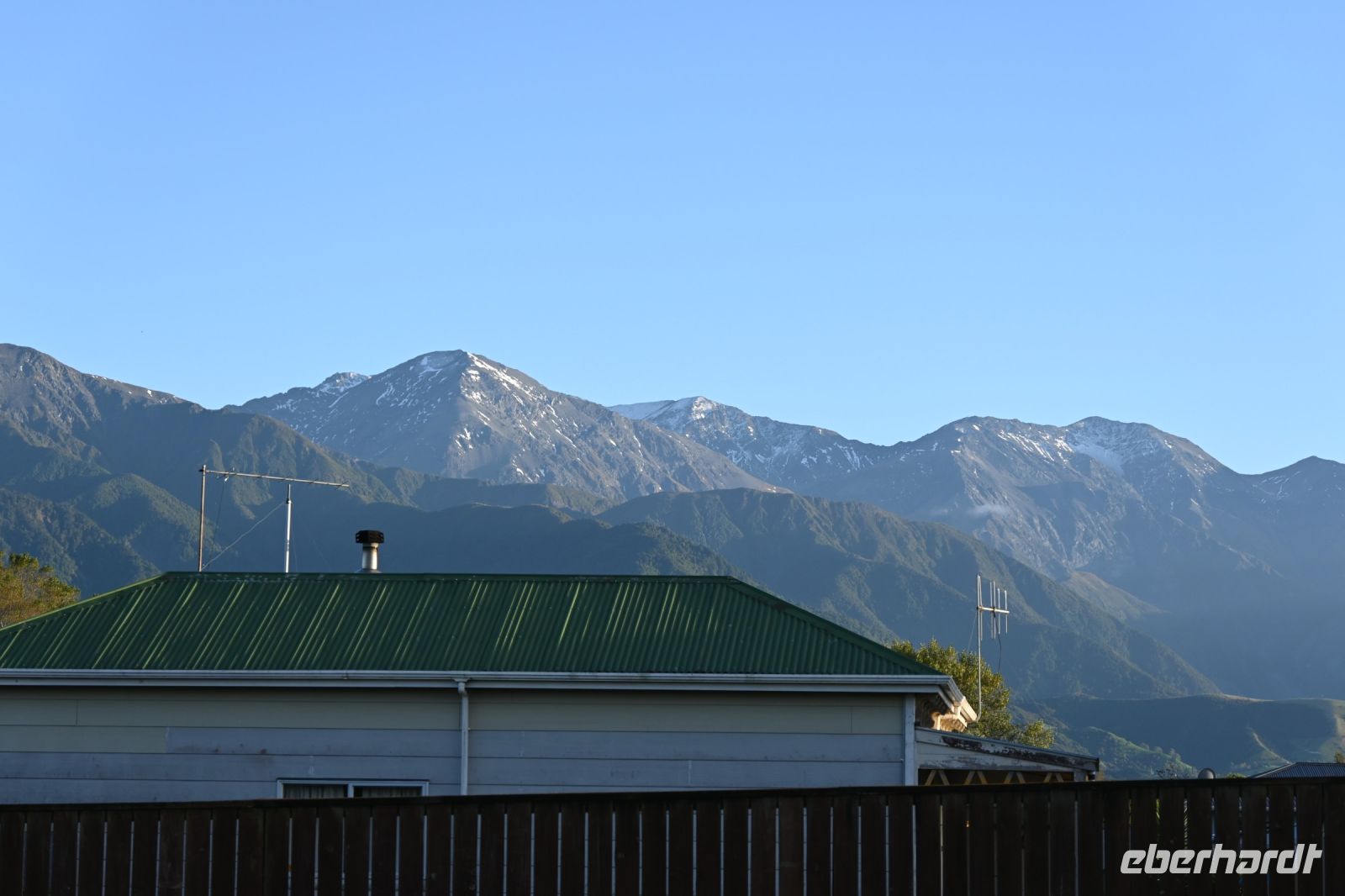 Jetzt beginnt unsere Tour auf der Südinsel, weitere acht Tage und sich ständig ändernde Landschaften warten auf uns. Auf der Nordinsel haben wir mit unserem Bus 1.777 Kilometer zurückgelegt. Die Landschaft zwischen Picton bis Kaikoura wird von Weinreben bestimmt. Die grüne Hügellandschaft bietet die optimalen Möglichkeiten. Die Ernte wurde in diesem Jahr bereits eingefahren. Außerdem sehen wir Felder zur Salzgewinnung, diese werden im Sommer mit Meerwasser geflutet, das Wasser verdampft und das Salz bleibt zurück.