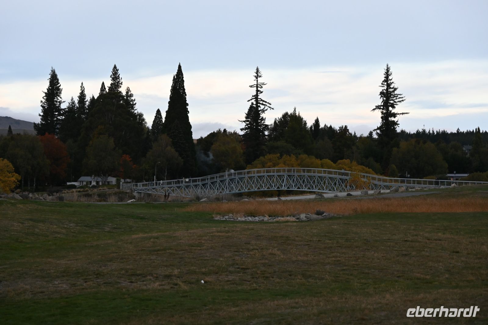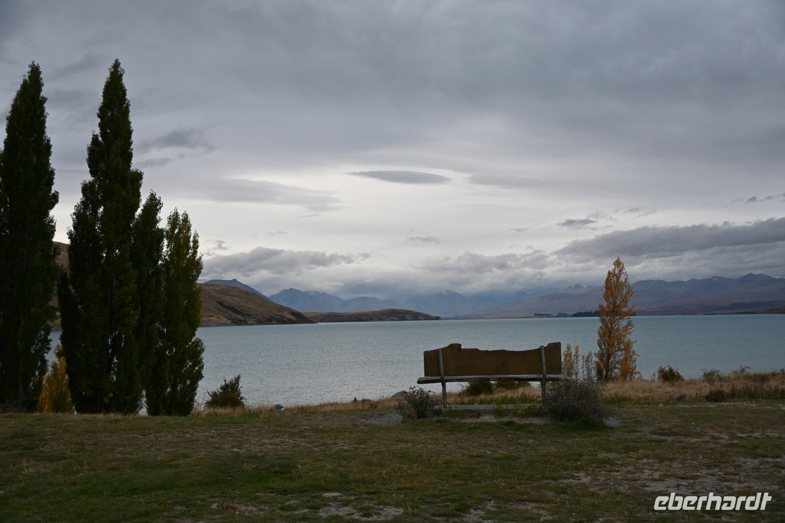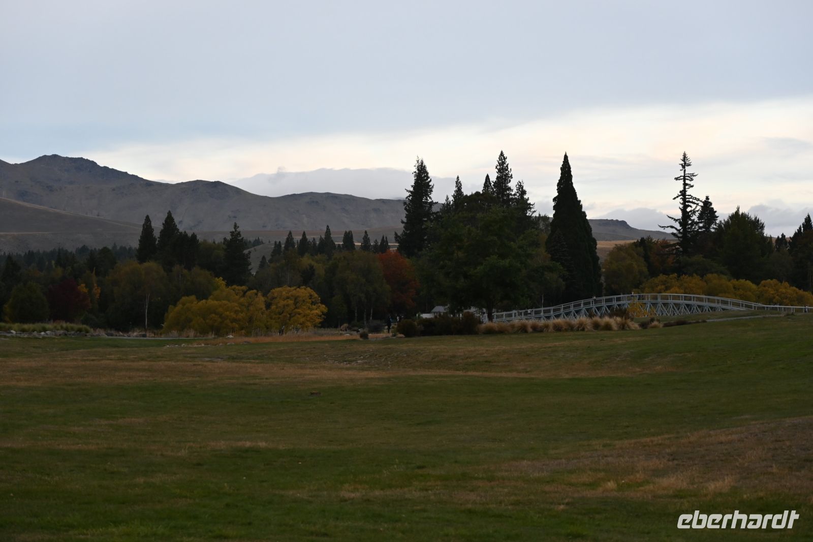Wir erreichen den Ort Lake Tekapo oder auch Tekapo Village genannt am Nachmittag. Die meistfotografierte Kirche des Landes steht hier. Eine kleine Kapelle am Seeufer direkt vor dem Bergpanorama. Da viele Touristen leider nicht die Regeln eines Gotteshauses befolgen konnten, wurde ein Zaun darum gebaut und eine Öffnung erfolgt nur bei Gottesdiensten oder vorher gebuchten Führungen. Da heute Ostersonntag ist, findet gerade ein Gottesdienst statt und die Kirche scheint bis auf den letzten Platz besetzt zu sein, einige Leute stehen sogar noch in der Tür.