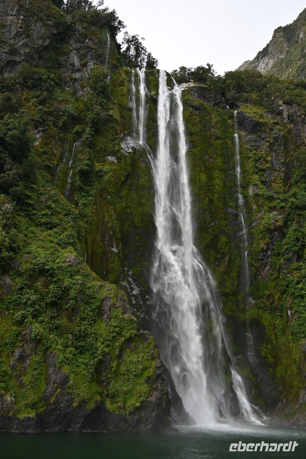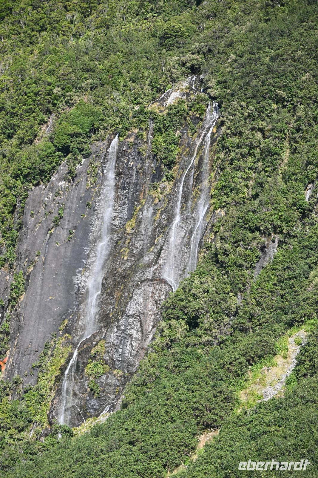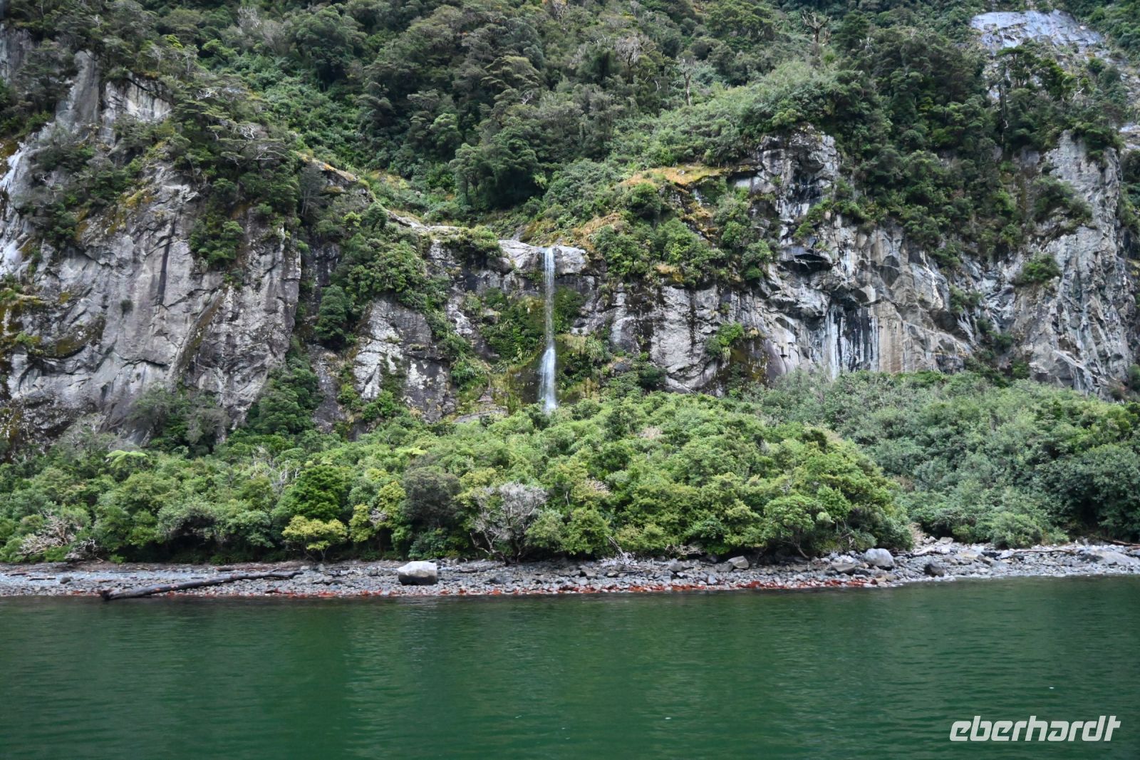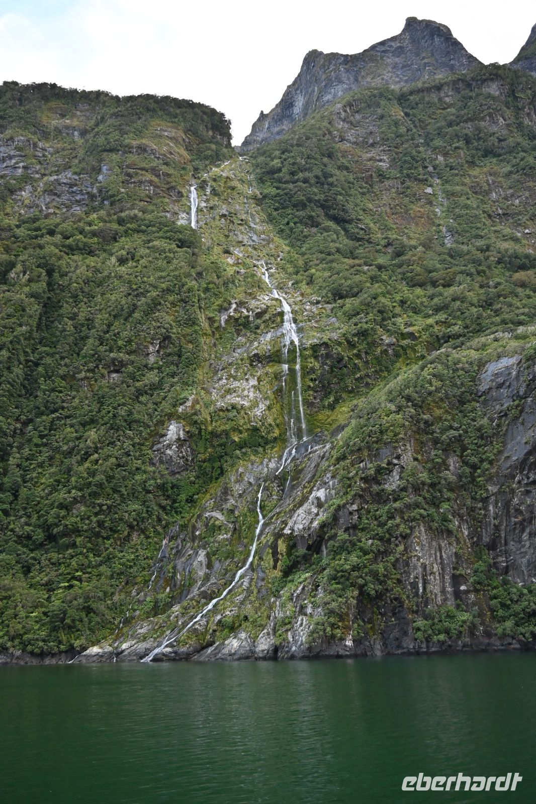 Nach einer ruhigen Nacht werden von der Crew wir wieder auf dem Deck erwartet. Für den ersten kleinen Hunger gibt es Müsli, Obst und Saft. So sind erstmal alle Gäste beschäftigt und der Warmanteil kann vorbereitet werden. Wir werden mit allerhand Köstlichkeiten verwöhnt und schon der Anker eingeholt und wir nehmen wieder Fahrt aus. Entlang des Fjords sehen wir immer wieder kleine Wasserfälle und eine wundervolle Natur. Wir fahren langsam in Richtung Tasmanisches Meer. Auf dem offenen Meer angekommen weht ein starker Wind und der Wellengang ist auch nicht zu unterschätzen. Wir genießen die Zeit mit dem schönen Ausblick und dem frischen Wind im Gesicht. Gegen neun Uhr laufen wir wieder im kleinen Hafen ein, noch ist es hier ruhig. Auf dem Weg zurück nach Te Anau kommen uns wieder viele Touristenbusse entgegen, die eine Ahnung geben, was hier am Tag los sein muss. Was uns leider verwehrt bleibt, ist ein Blick auf die hier lebenden Keas. Diese Bergvögel gelten als besonders clever, aber sind gegenüber Touristen auch gern diebisch unterwegs.