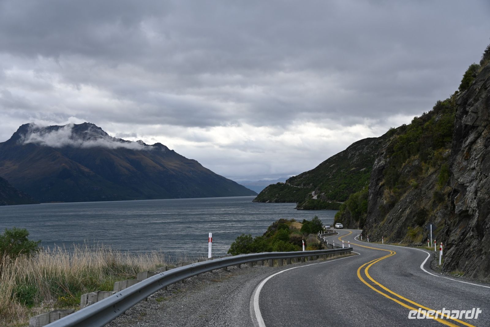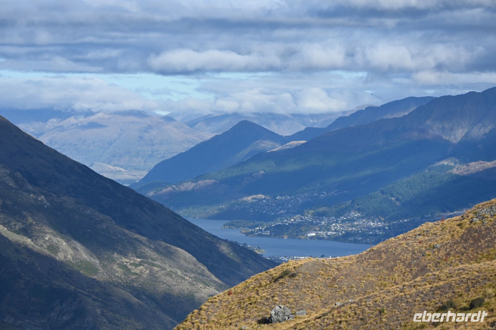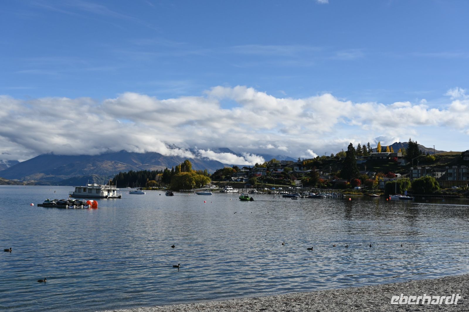 Am späten Nachmittag erreichen wir die adrenalinreichste Stadt von Neuseeland – willkommen in Queenstown. Die Stadt liegt umgeben von Bergen am Lake Wakatipu und bietet vor Allem Sportlern die ein oder andere Möglichkeit zur Betätigung. Bis zu 400 Tage könnte man hier verbringen und an jedem Tag etwas anderes erleben. Roger erzählt uns, dass der Erfinder des Bungeesprungs von hier kommt und hier der Sport auch zum ersten Mal kommerziell angeboten wurde. Die vorherige Probe fand am Eiffelturm in einer Nacht und Nebelaktion statt. Hier fuhren die beiden Erfinder am Abend hoch und versteckten sich auf der Plattform. Am Morgen wagten sie dann den Sprung der auch von Passanten beobachtet wurden.