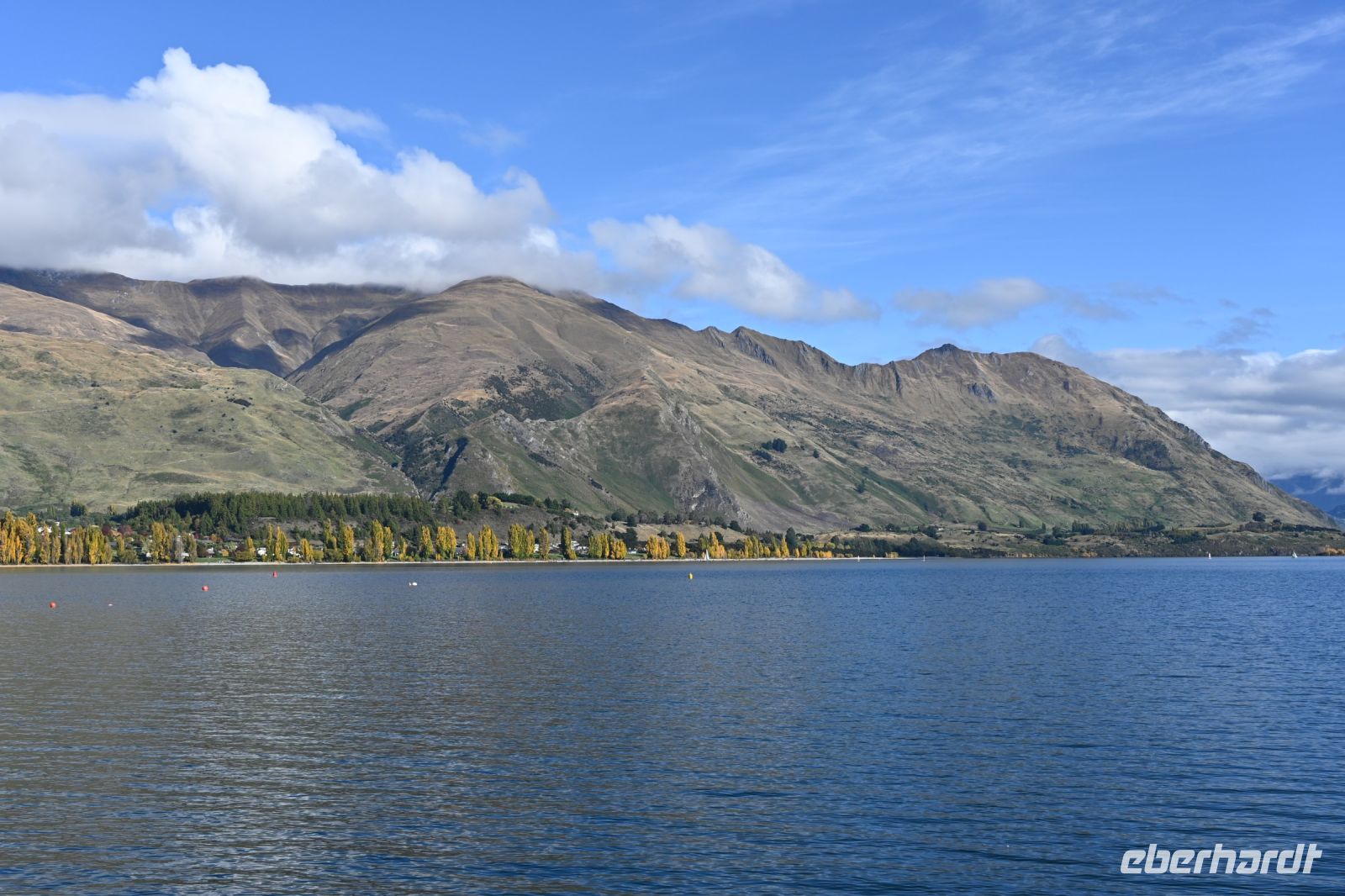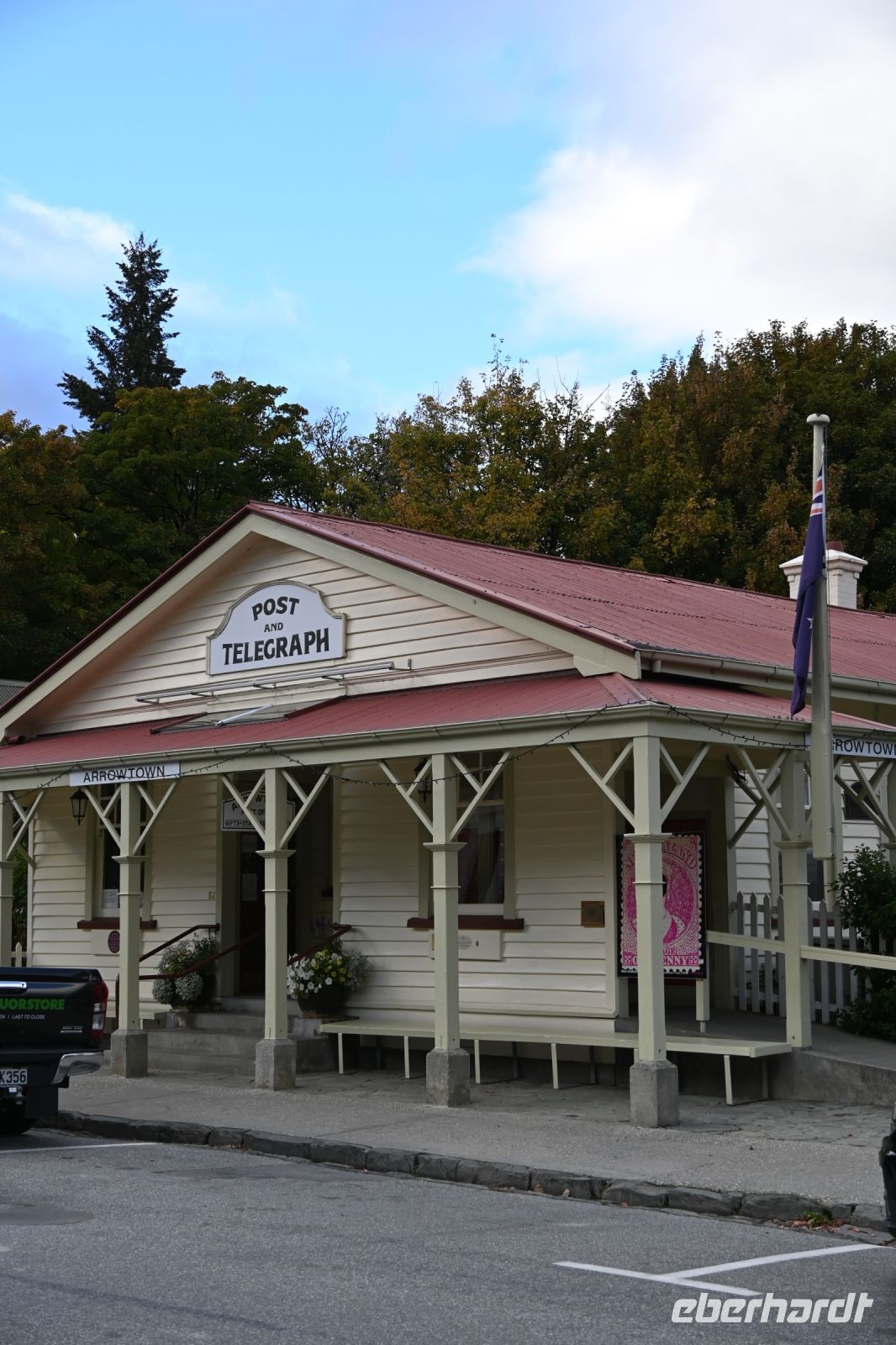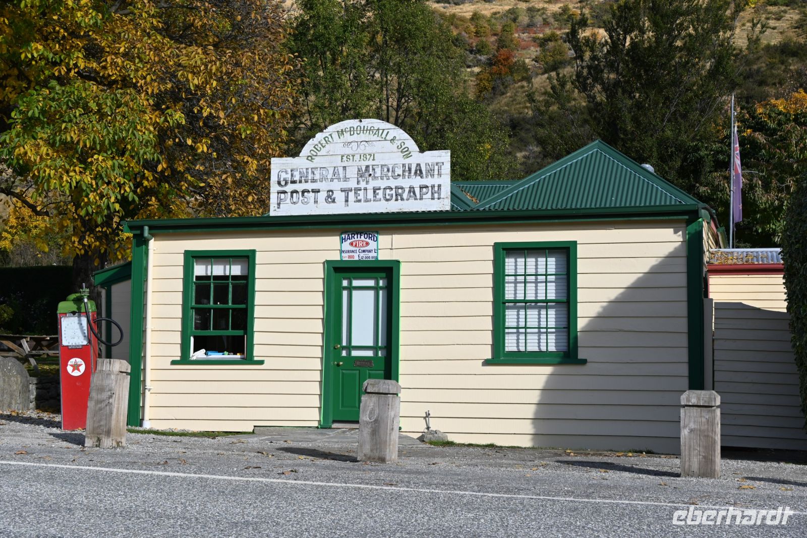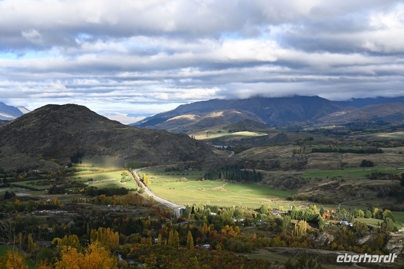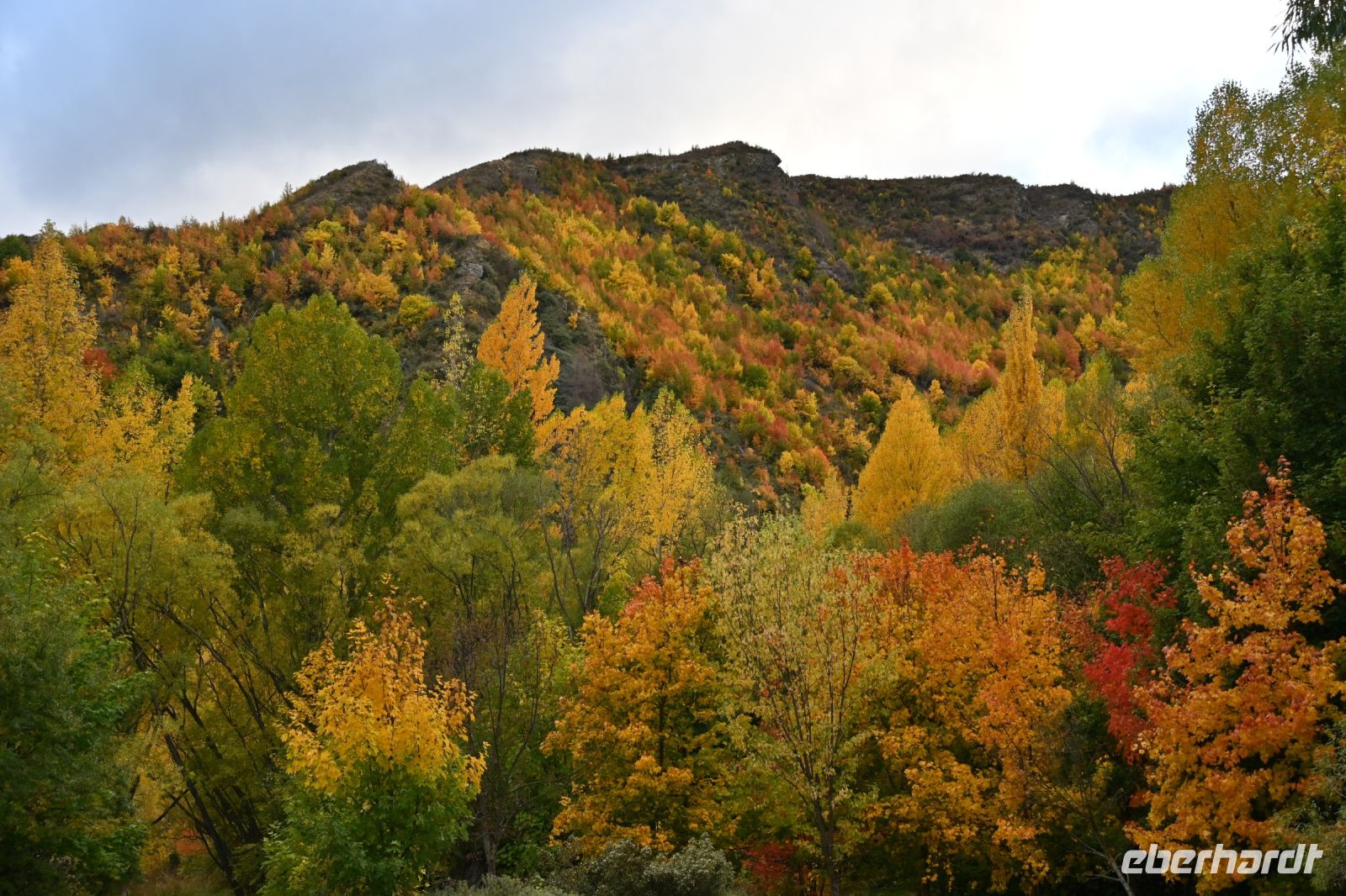 Bei strahlendem Sonnenschein verabschieden wir uns von Queenstown. Leider mussten wir uns auch von Roger verabschieden. Seine Rückenschmerzen sind während der gemeinsamen Reise schlimmer geworden und er musste sich in ärztliche Behandlung geben. Dank der organisierenden Agentur vor Ort, war schnell ein Ersatz gefunden und ab heute begleitet und Hampi. Er ist Schweizer und wohnt und arbeitet schon viele Jahre in Neuseeland. Schon auf den ersten Metern merken wir, er kennt sich auch super aus. Bei Sonnenschein wirken die aktuellen Herbstfarben der Laubbäume noch besser und unseren ersten Stopp legen wir in Arrow-Town ein. Das ehemalige Goldgräberdorf liegt noch ganz verschlafen, so können wir schöne Fotos machen. Im gleichnamigen Fluss wurde hier früher Gold geschürft. Wir haben kein Glück, mit dem bloßen Auge ist hier heute nix zu finden.
