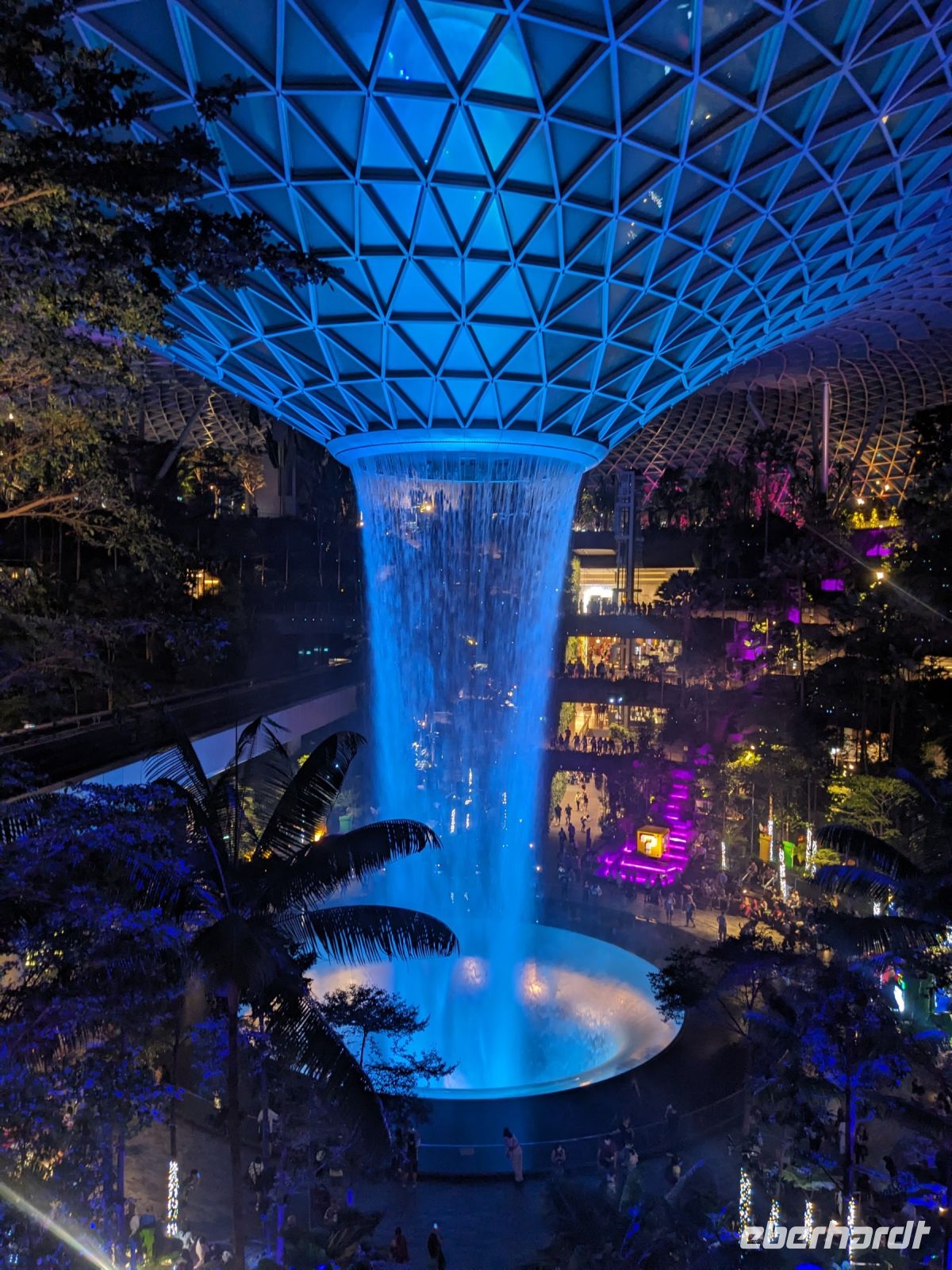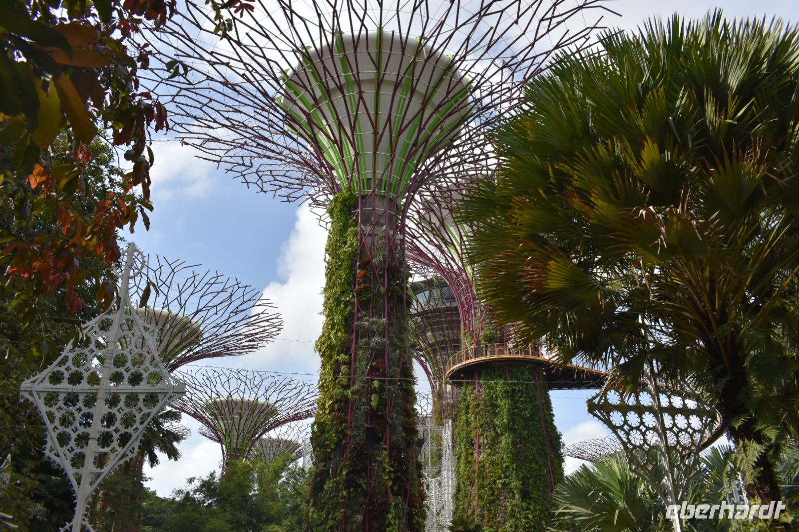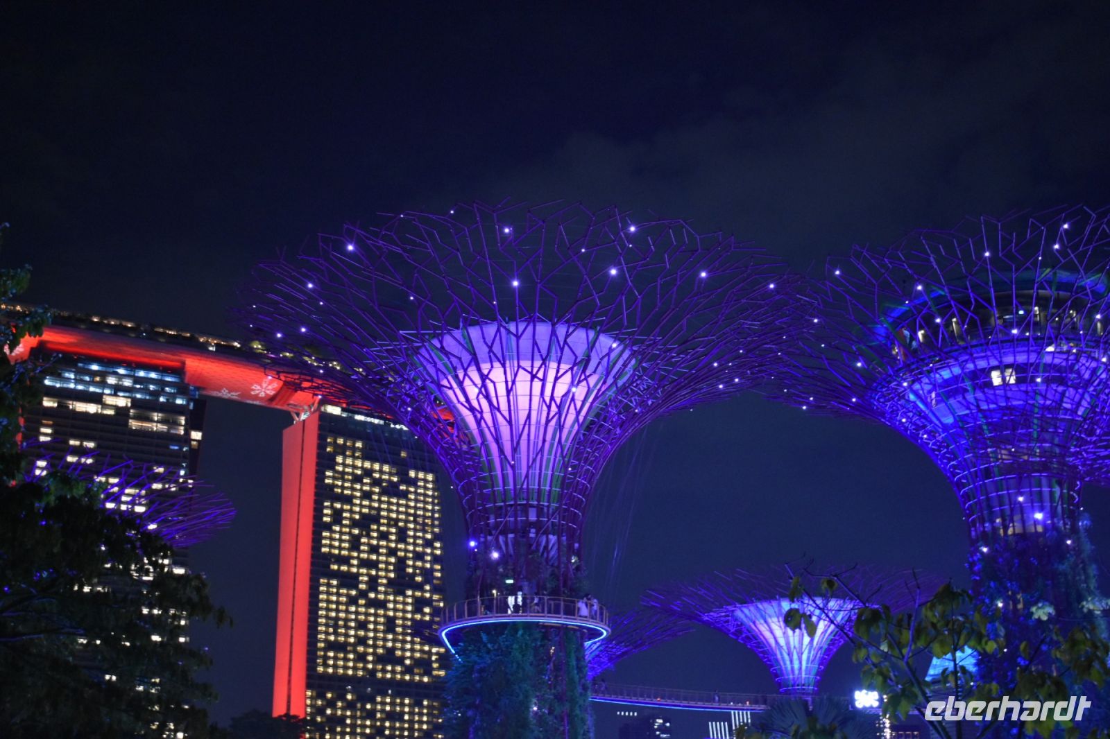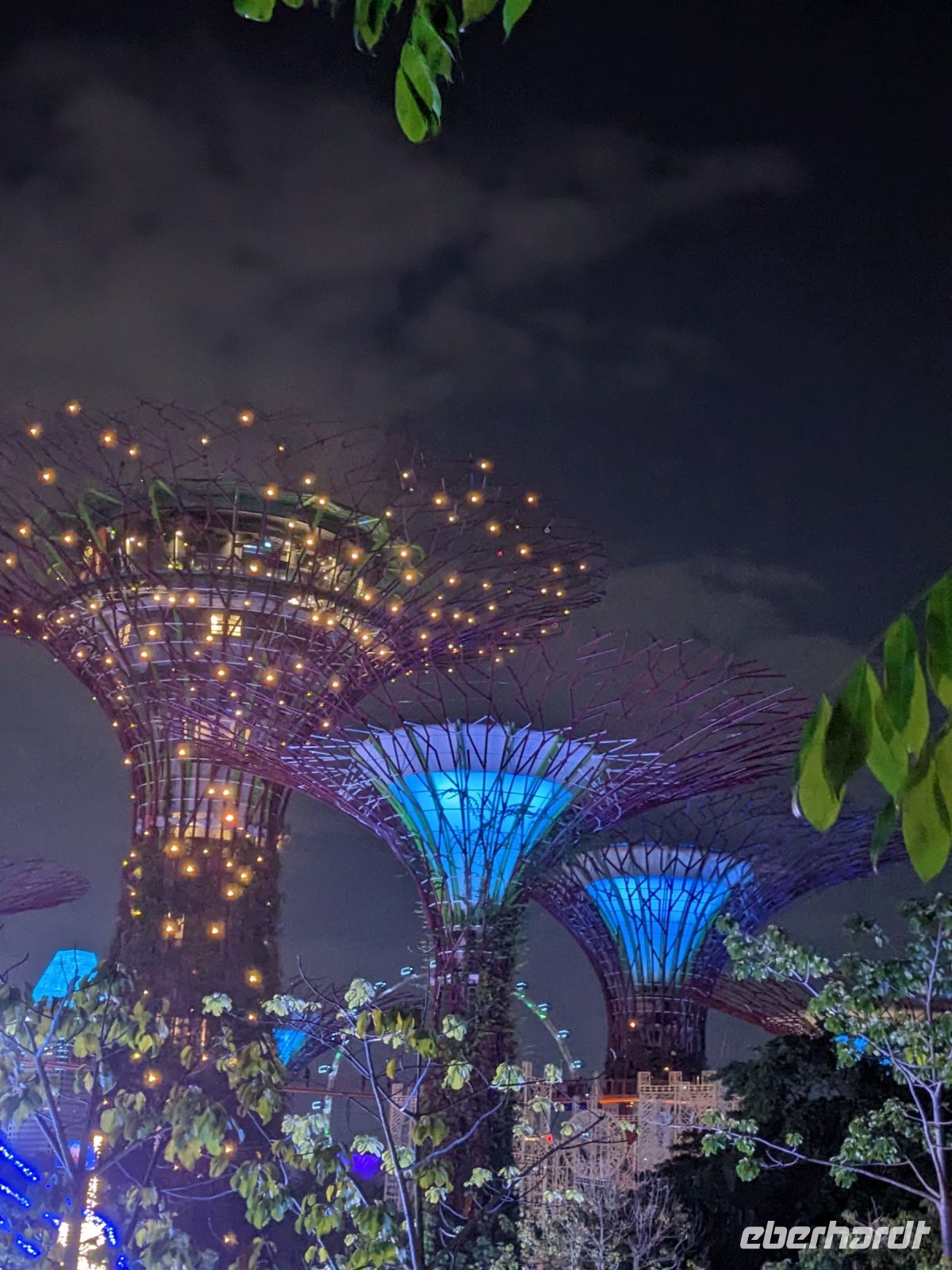 Die Supertrees präsentieren sich nicht nur als architektonische Meisterwerke, sondern auch ein Weihnachtsmarkt versprüht festliche Stimmung, und wir sichern uns einen exzellenten Spot, um die Show in vollen Zügen zu genießen.