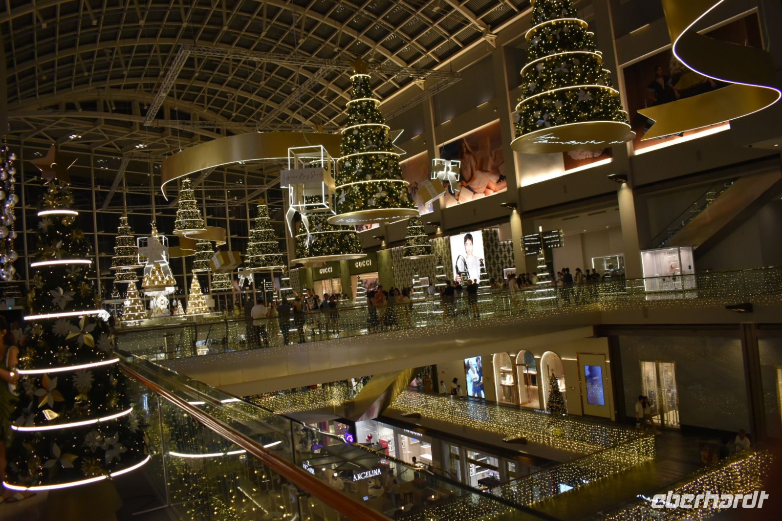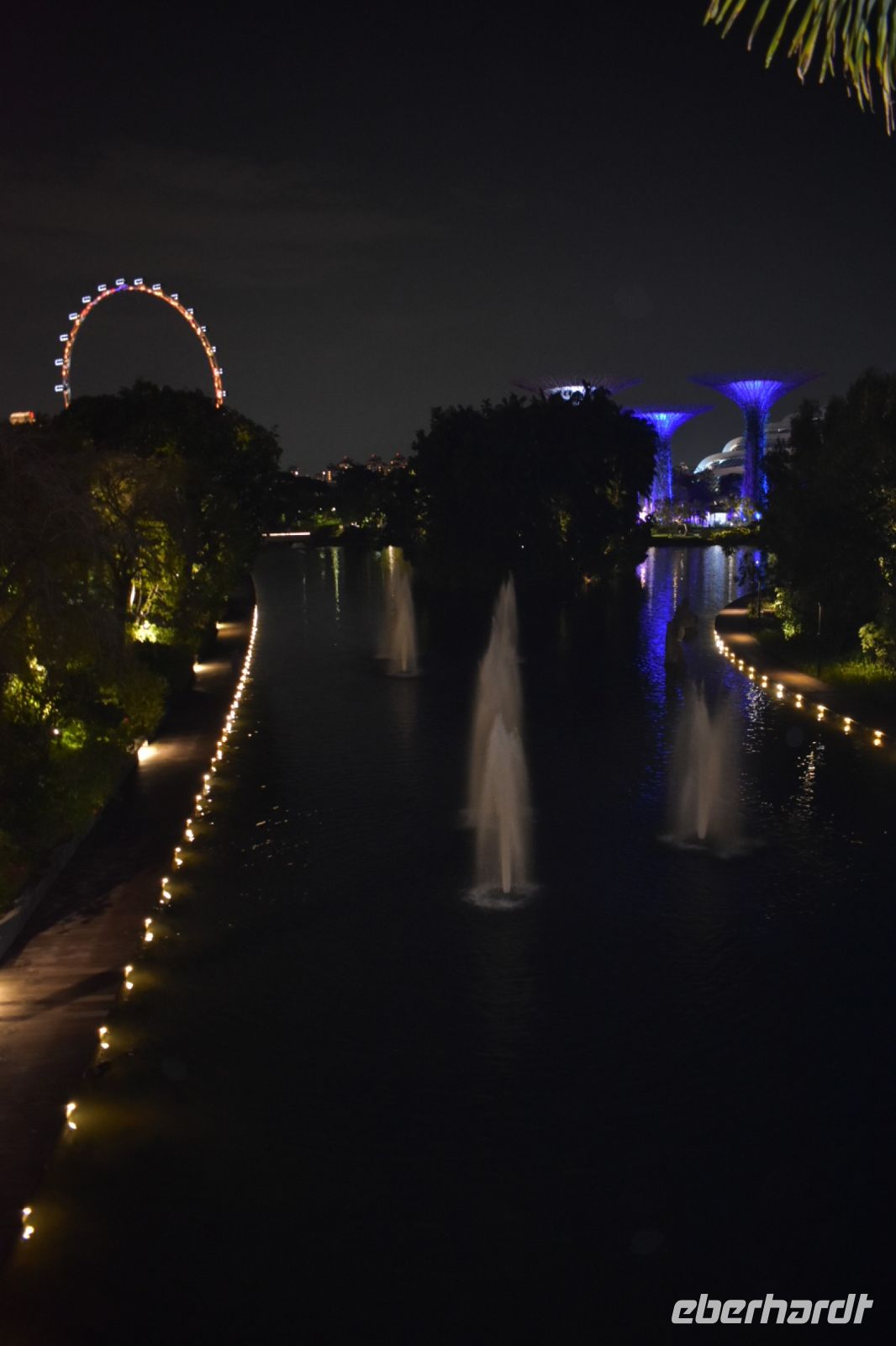 Beim Betreten des gigantischen Marina Bay Sands Hotels sind wir schlichtweg überwältigt von seiner Größe und Pracht. Das Wasserspektakel vor dem Hotel begeistert uns besonders, die Supertrees hingegen erfüllen die Nacht mit traditioneller Weihnachtsmusik. Die Skyline von Singapur bei Nacht ist bereits ein Highlight für sich, und das leuchtende Singapore Flyer, das majestätische Riesenrad, setzt dem Ganzen die Krone auf.