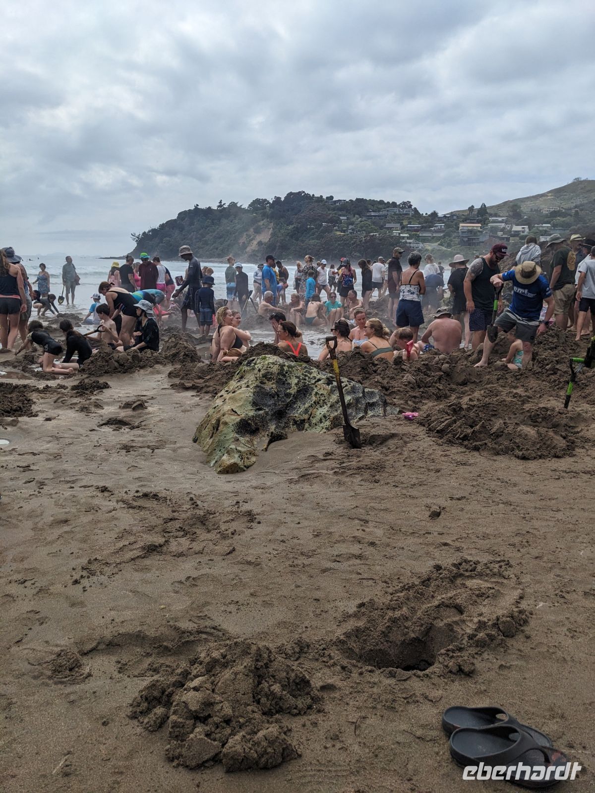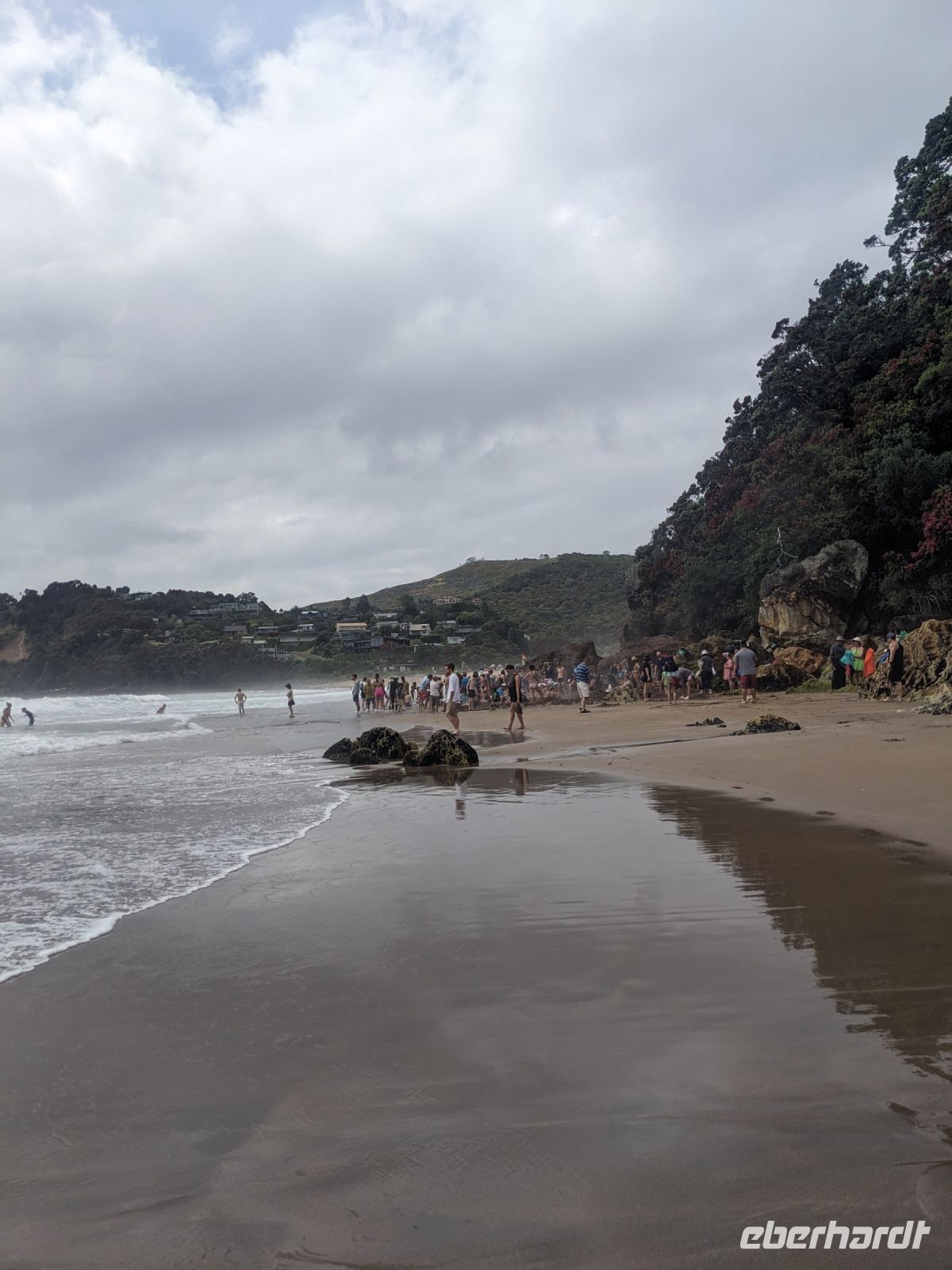Nach einer ausgedehnten Busfahrt war es endlich soweit – wir erreichten den lang ersehnten Strand. Unser erster Stopp war der Hot Water Beach, an dem wir uns in den heißen Quellen fast die Füße verbrannten. Die gut besuchte Atmosphäre ließ uns jedoch davon abhalten, unsere eigene Grube zu graben, stattdessen schlenderten wir entlang des Strandes.