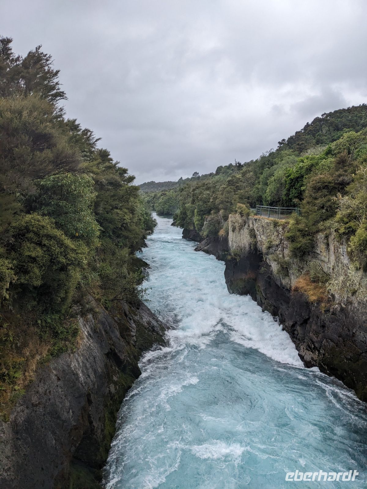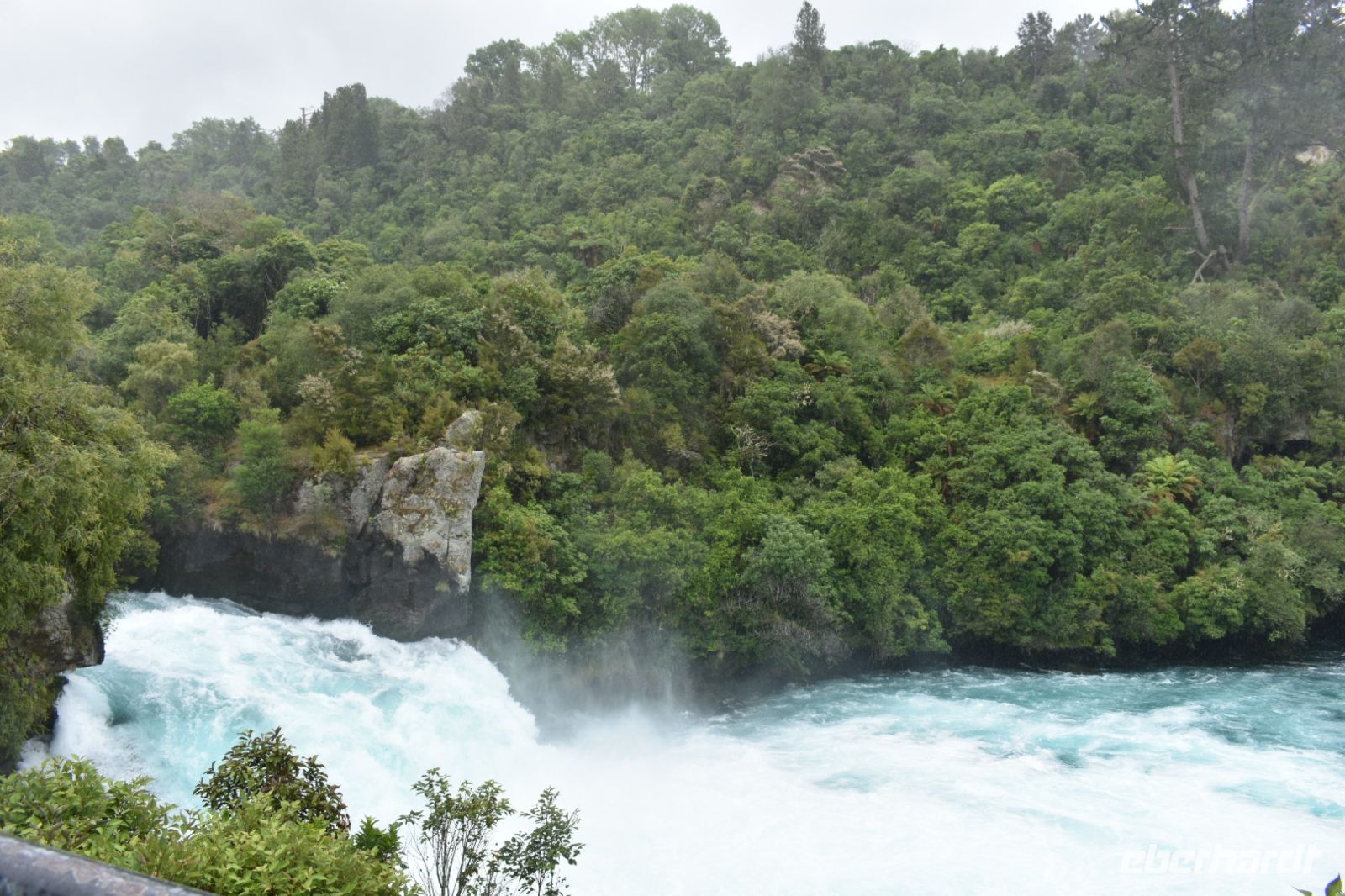 Im Anschluss dürfen wir nun unsere Weihnachtsüberraschung genießen – ein Bad in den Terrassen. Die Bäder reichen von 31 über 34 bis sogar 38 Grad und sollen die Haut verjüngen sowie über 13 verschiedene Mineralstoffe enthalten. Nach dieser wunderbaren Auszeit geht es weiter nach Taupo. Am Zwischenstopp bei den Huka Falls beobachten wir ein Speedboat und genießen in Taupo eine Snackpause, bevor wir in unserer Unterkunft im Tongariro Nationalpark ankommen. Der Blick auf den Schicksalsberg bleibt uns durch den Dauerregen verborgen, dennoch ist es ein wunderbarer Tag mit der Teepause und dem Bad in den Thermalbädern, sodass das Wetter dem Tag keinen Abbruch verschaffte.