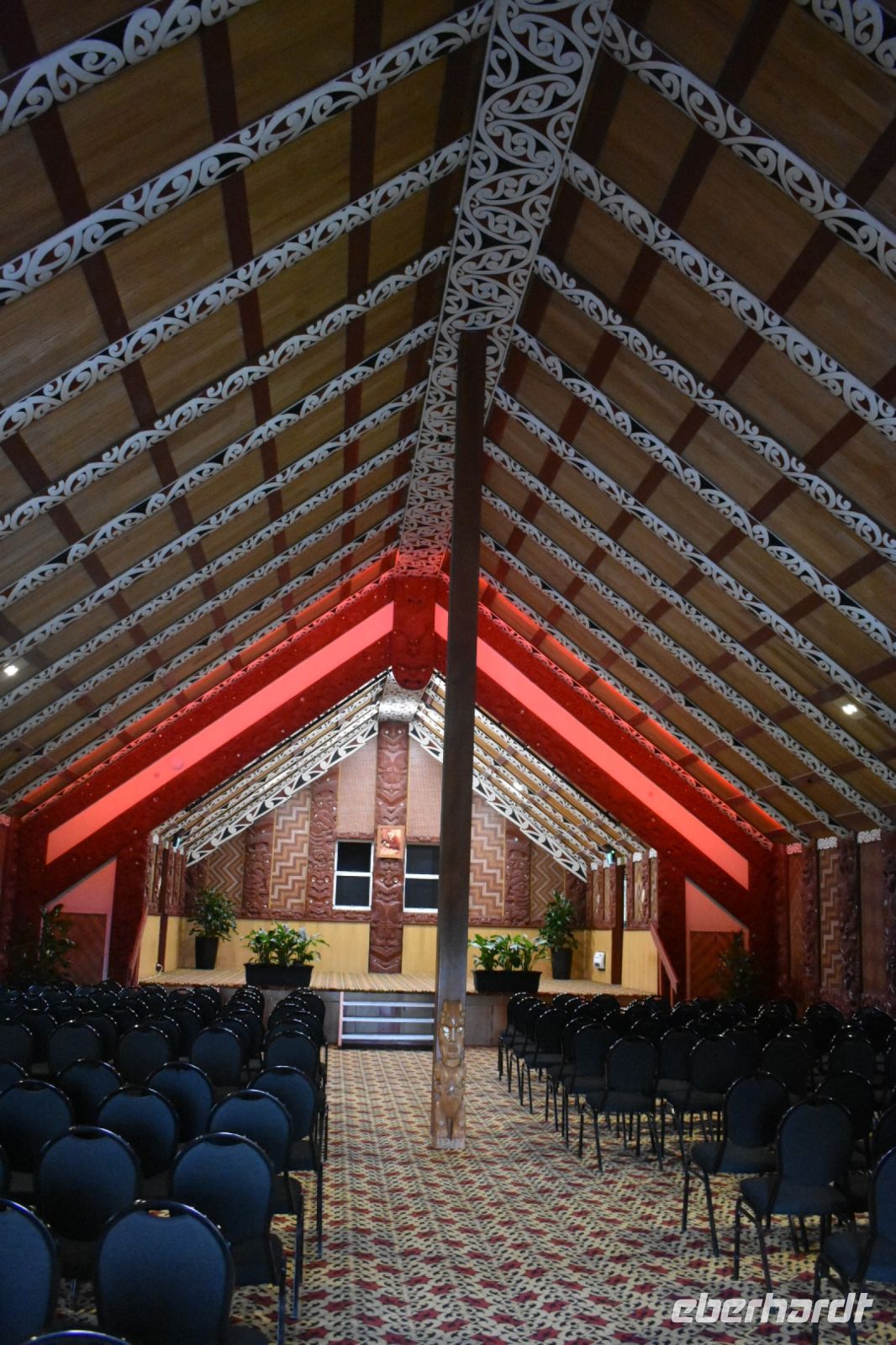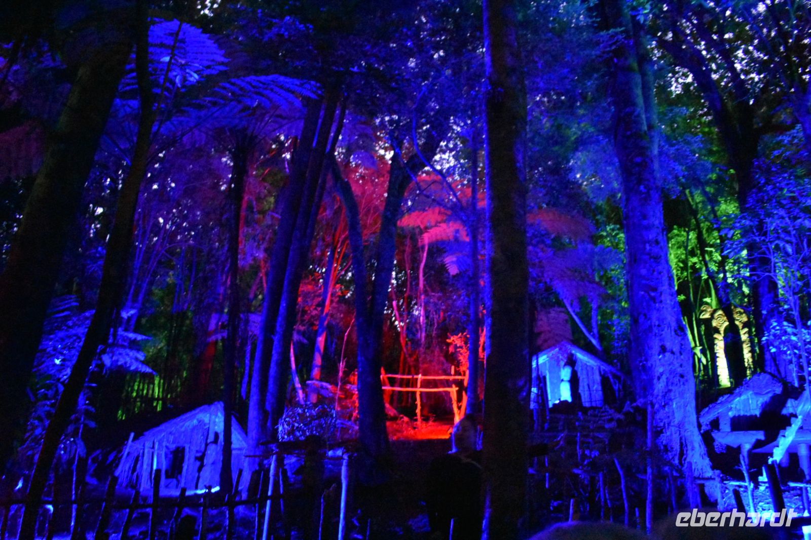 Nachdem wir im Hotel ankamen, ging es gleich mit dem nächsten Highlight weiter - dem Hangi-Abendessen mit Maori-Show. Nachdem wir zu unserem Tisch gebracht wurden und der Ablauf des Abends erklärt wurde, gingen wir nach draußen, wo wir staunen durften, wie die Maori-Krieger mit einem Boot einfuhren. Im Anschluss wurde uns präsentiert, wie das Hangi im Boden normalerweise zubereitet wird – und zwar ohne Füllung und ohne Gewürze!!! Nachdem Fragen zur Maori-Kultur gestellt werden durften, gab es dann endlich das Abendessen. Hühnchen, Füllung daneben, verschiedenste Arten von Kartoffeln, Blumenkohlsalat und Meeresfrüchte in Soße standen auf dem Menü. Und natürlich durfte auch der Nachtisch nicht fehlen. Gut gestärkt ging es dann zur kulturellen Darbietung – eine Willkommenszeremonie, traditionelle Tänze, Musikinstrumente, Waffen und Spiele wurden vorgestellt. Eine Ballade von einem jungen Paar, das aufgrund von Stammesdifferenzen nicht zusammen sein durfte, eine Erklärung über die Bedeutung der Tätowierungen in der Maori-Kultur. Zu guter Letzt ein Spaziergang durch ihren Wald, in dem noch Häuser der Vorfahren zu sehen waren. Vorbei an dem heiligen Brunnen, durch den bunt beleuchteten Wald suchten wir nach den berühmten Glühwürmchen – ob echt oder unecht, wird immer noch diskutiert. So oder so gingen wir jedoch wohl gestärkt und mit einer Vielzahl an Eindrücken ins Bett.