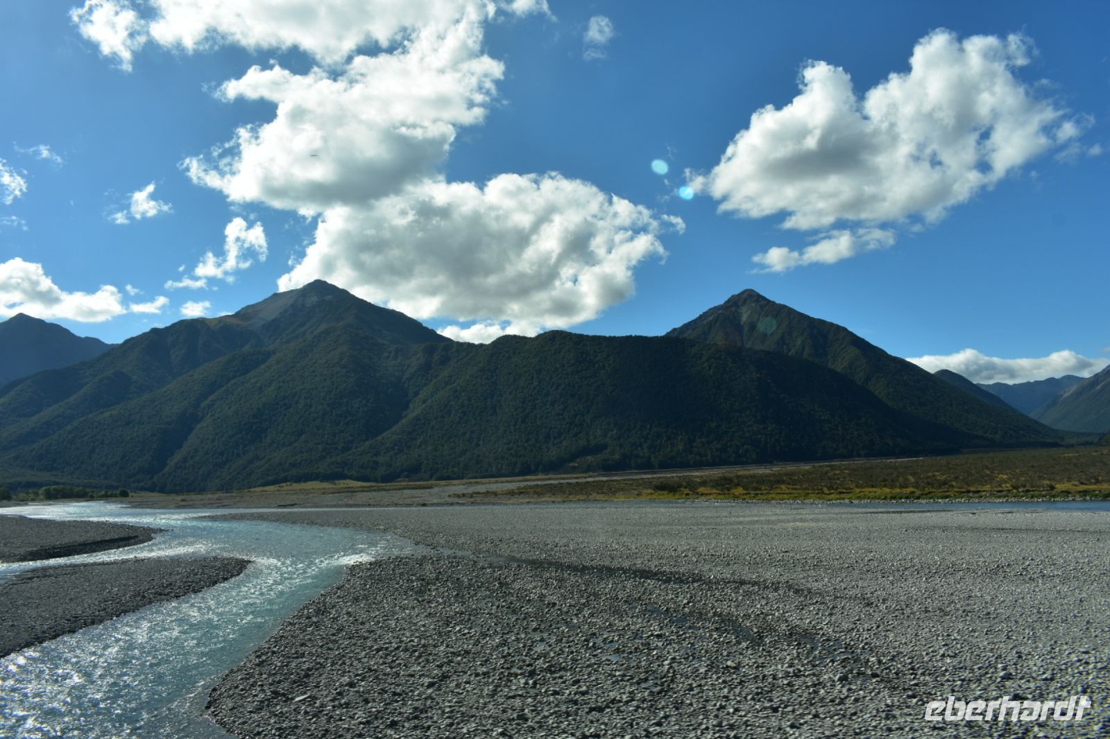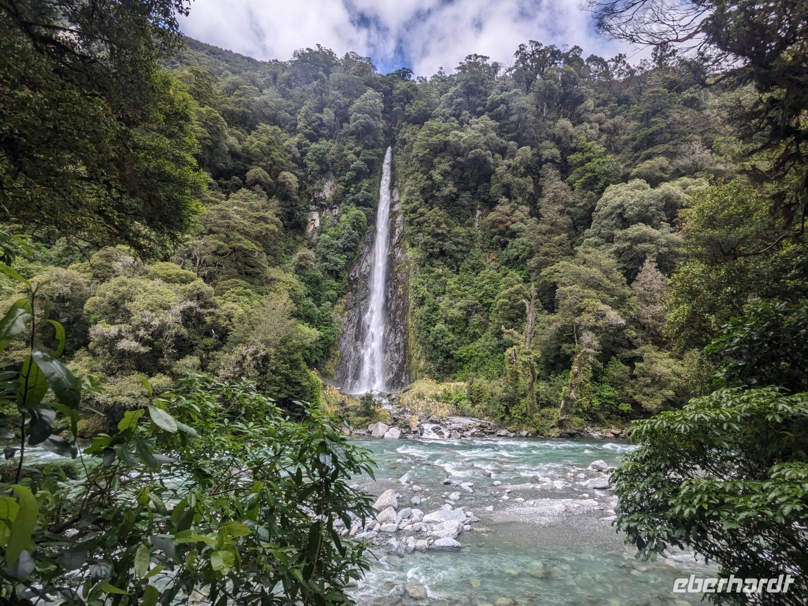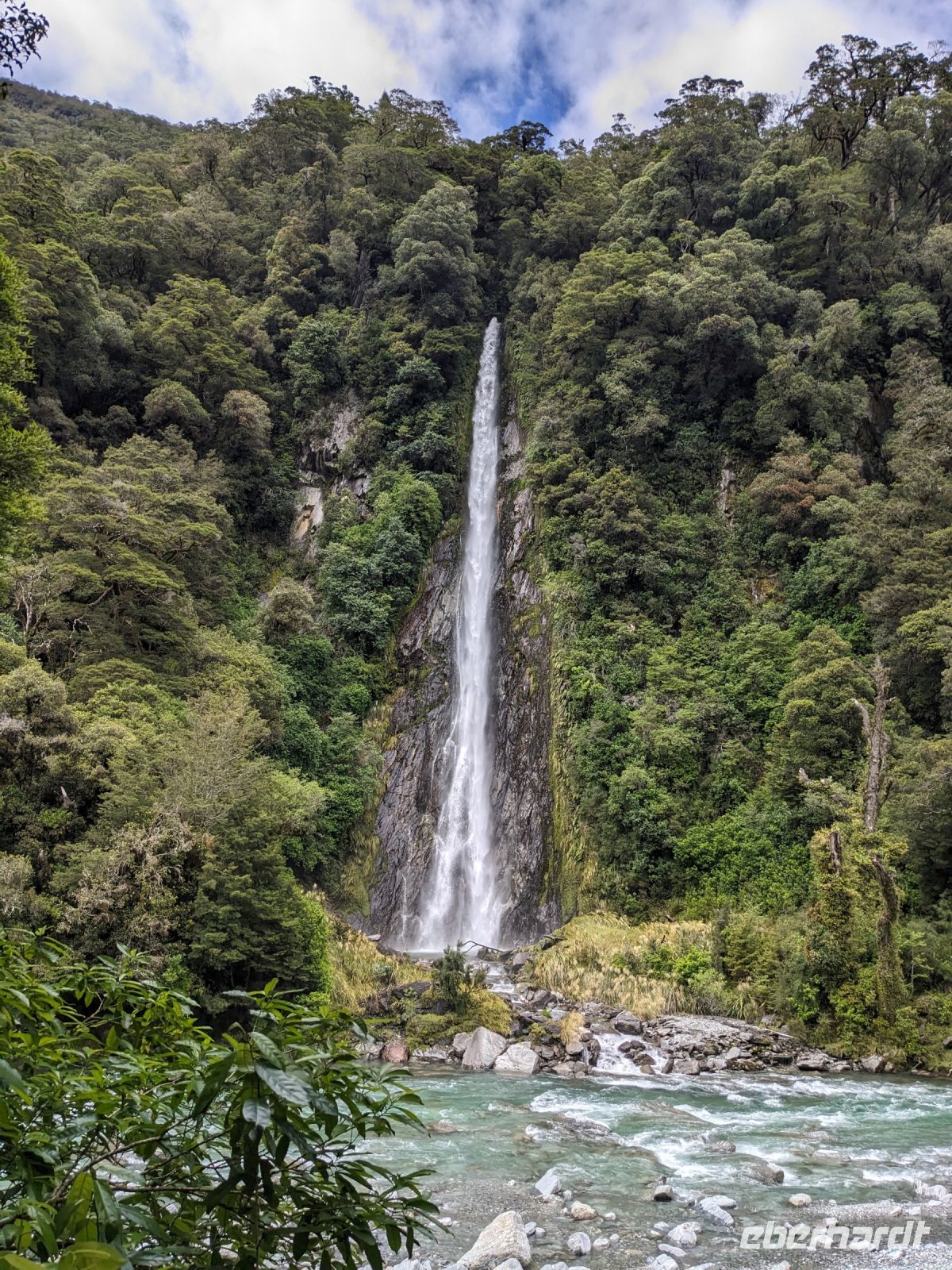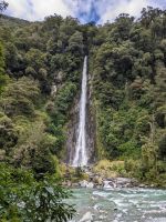 Unser Start ins neue Jahr beginnt sicherlich nicht als der frischeste. Die eine Hälfte ist noch von der gestrigen Wanderung erschöpft, und fast alle haben nicht genug Schlaf nach dem Anstoßen und dem Feuerwerk der letzten Nacht bekommen. Das Frühstück um 6:30 Uhr verschärft die Lage, besonders da der Kaffee im Hotel heute fast nur aus Wasser bestand und dadurch nicht den gewünschten Aufmunterungseffekt hat. Wie vorhersehbar, ist der Reisebus eher eine rollende Schlafstätte. Einzige Ausnahme: unser Fahrer Uli, der uns an verschiedenen Fotostopps begeistert aufweckt. Das Aufstehen und Rausgehen gestaltet sich jedoch als Qual, und so bleiben wir beim ersten Stopp alle im Bus sitzen. Eine Besserung ist in Sicht – nach einem verfrühten Mittagsstopp, bei dem wir endlich vernünftigen Kaffee bekommen, steigt die Motivation. Landschaft, Gebirge, enge Brücken über Flüsse, der Haast Pass und die zahlreichen Wasserfälle entlang des Weges sind durchaus sehenswert.