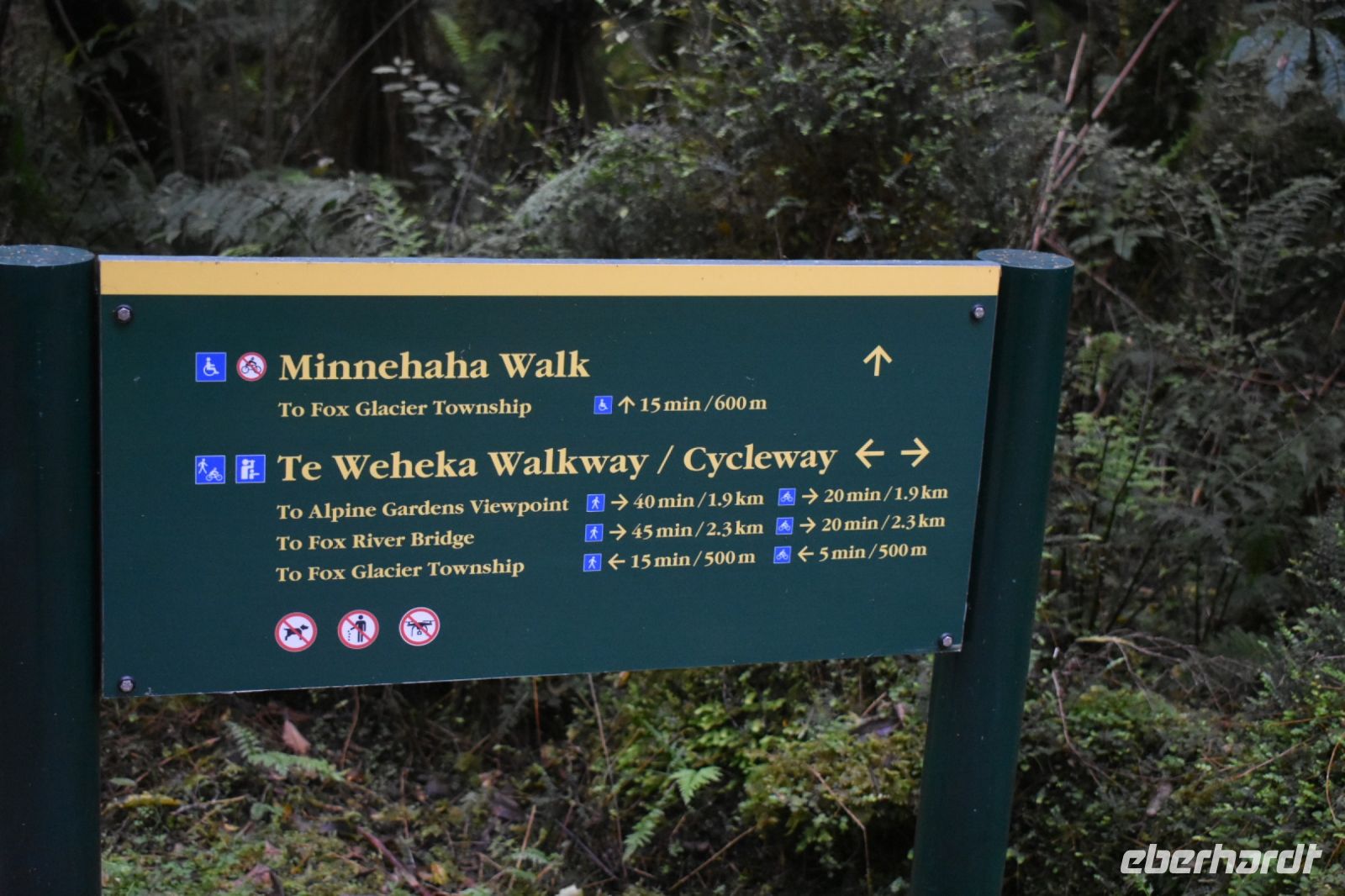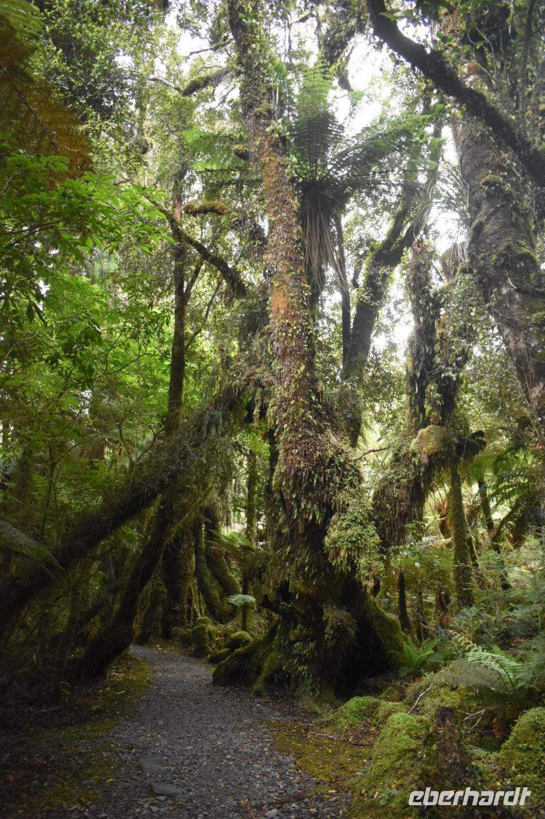 Nach der Ankunft im Hotel am Fox Glacier bleibt noch genug Zeit, den Ort zu erkunden und einen kleinen Wanderweg, den Minnahaha Walk, anzuschauen. Direkt neben der Straße befinden wir uns mitten in einem komplett bewachsenen Urwald. Die Feuchtigkeit lässt das Moos sprießen, und ein kleiner Vogel unterhält uns mit seinem Gesang. Einige von uns laufen die kleine Runde vor dem Abendessen, und andere schließen sich nach begeisterten Berichten im Anschluss an. Ein paar schaffen sogar die lange Strecke zum Fluss – ein weiterer Weg, der insgesamt 1,5 Stunden lang eine erholsame Auszeit in der Natur bietet.