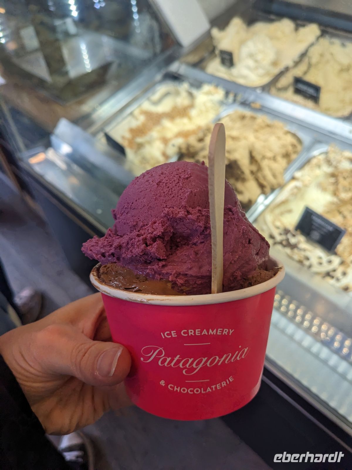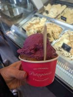 Gemeinsam machen wir eine Wanderung und erfreuen uns an der Natur und der Aussicht. Der Weg ist jedoch steiler als erwartet, und bei der Hälfte entscheiden wir uns, umzukehren. Obwohl mein Rundweg dadurch kein echter Rundweg war, hat sich der Ausblick dennoch gelohnt. Wir treffen andere Wanderer, denen ich den Rundweg empfohlen hatte, und sie bestätigen, dass es sich lohnt – später treffen wir sie sogar wieder in der Stadt. Nach der anstrengenden Wanderung gönnen wir uns gemeinsam ein Eis in der argentinischen Eisdiele Patagonia. Die Kugeln sind zwar riesig, aber geschmacklich absolut erstklassig. Nach einer kurzen Ruhepause steht ein gemeinsames Abendessen auf dem Programm.