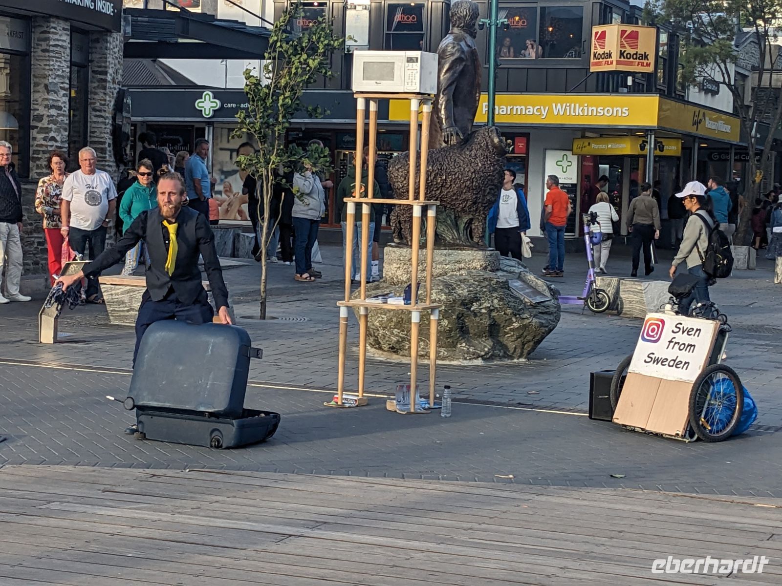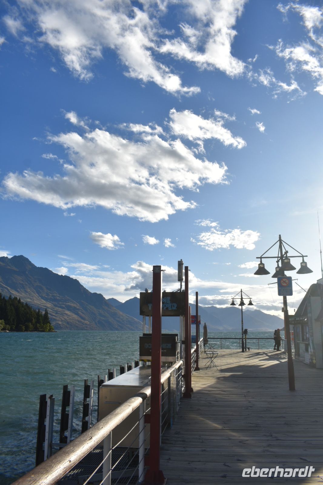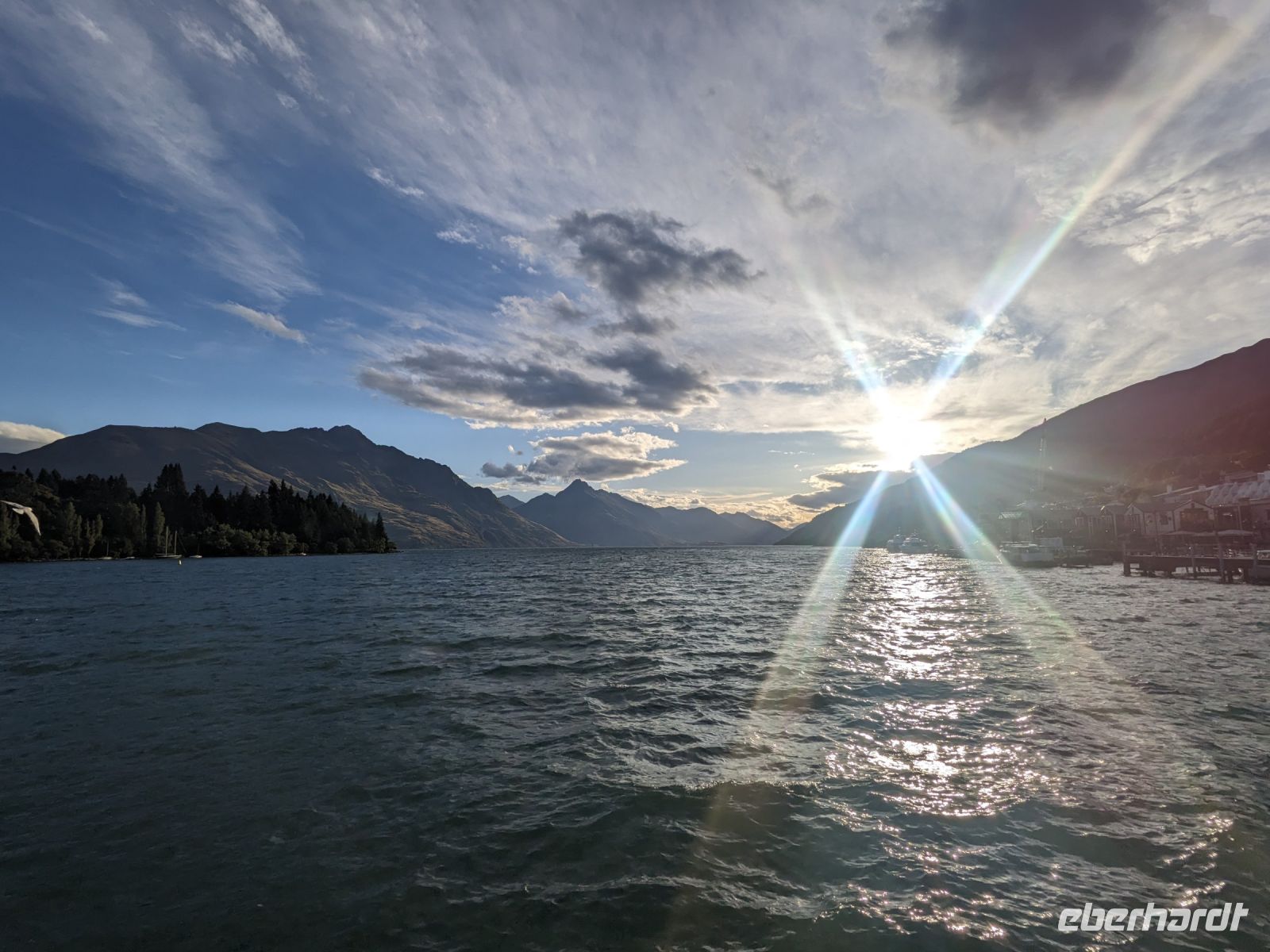 Endlich in Queenstown angekommen, sind wir überglücklich, zwei Nächte am selben Ort verbringen zu können. Das Abendessen ist ausgezeichnet, und wir erkunden bei einem Spaziergang die Stadt, bei dem wir auf Straßenkünstler sowie einem beeindruckenden Sonnenuntergang am Strand beobachten können.