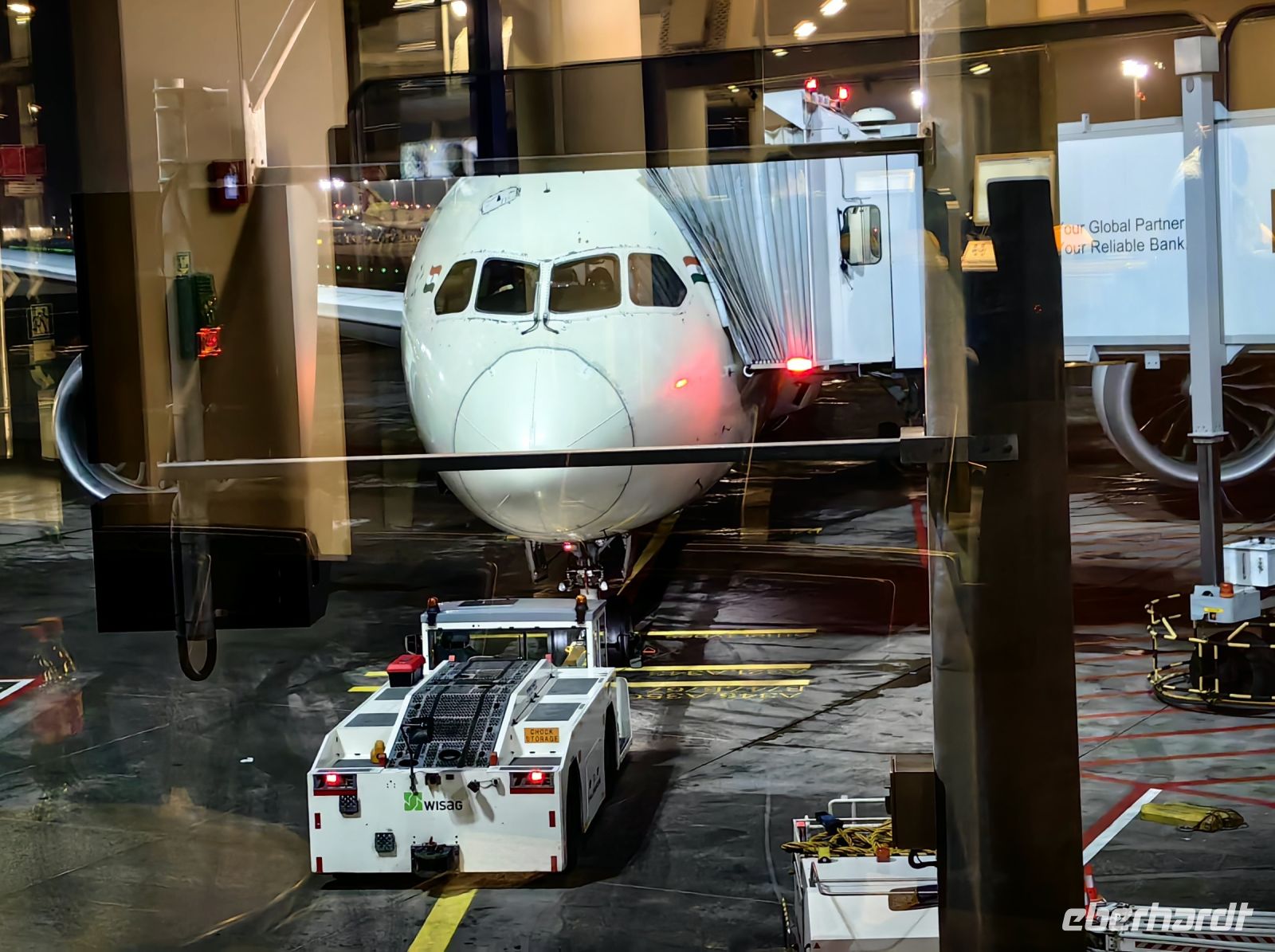 Ein Teil der Gruppe fliegt von Dresden aus und ein Gast fliegt mit Simone, der Reisebegleiterin ab Berlin. Am Abend sind wir alle in Frankfurt angekommen und treffen uns am Abfluggate. Gespannt sind wir, welches Flugzeug nun unseres ist.