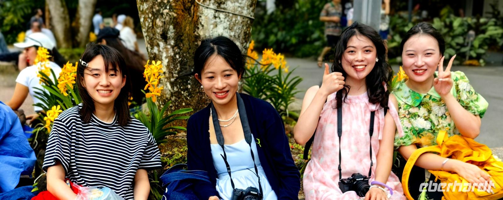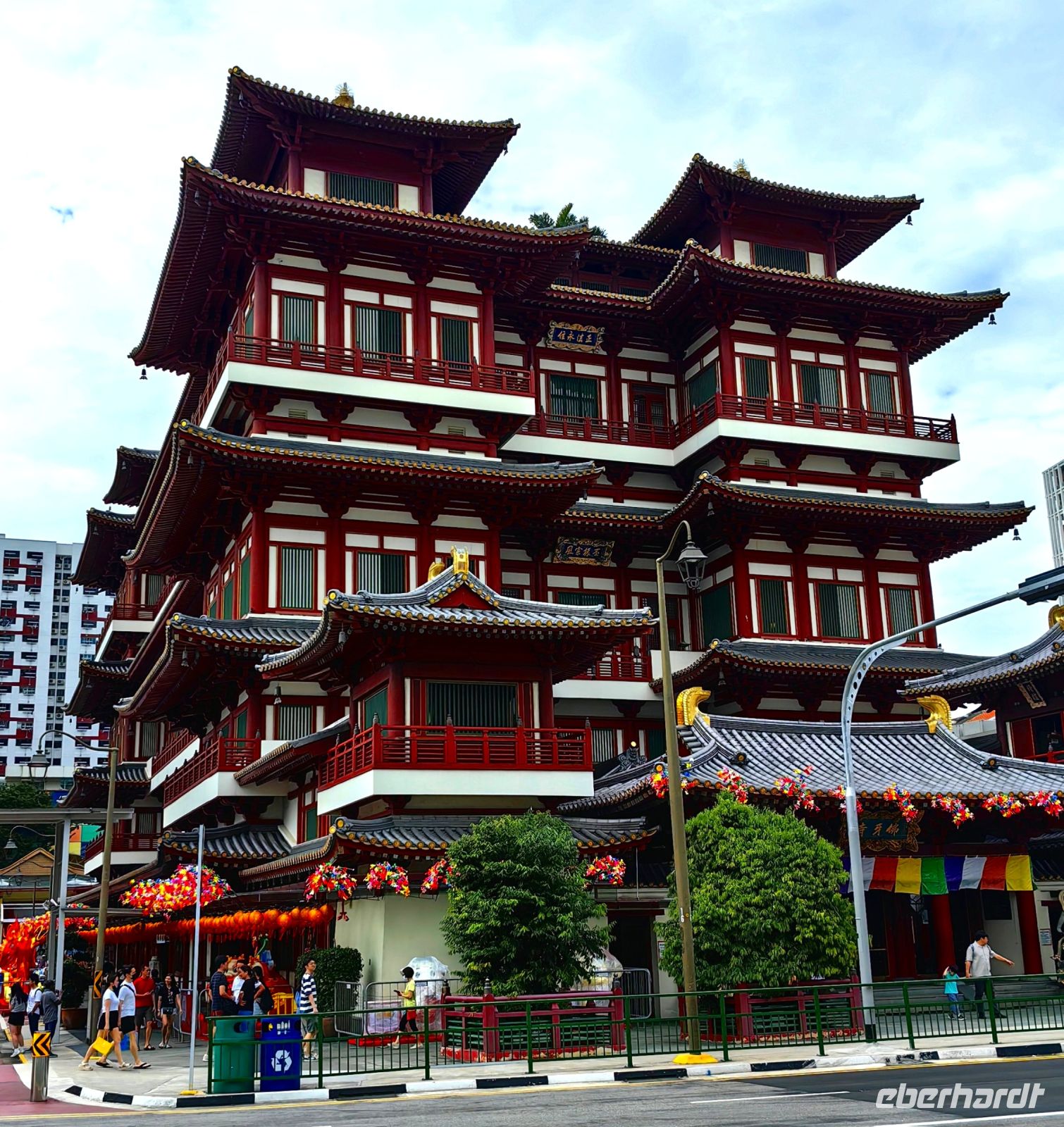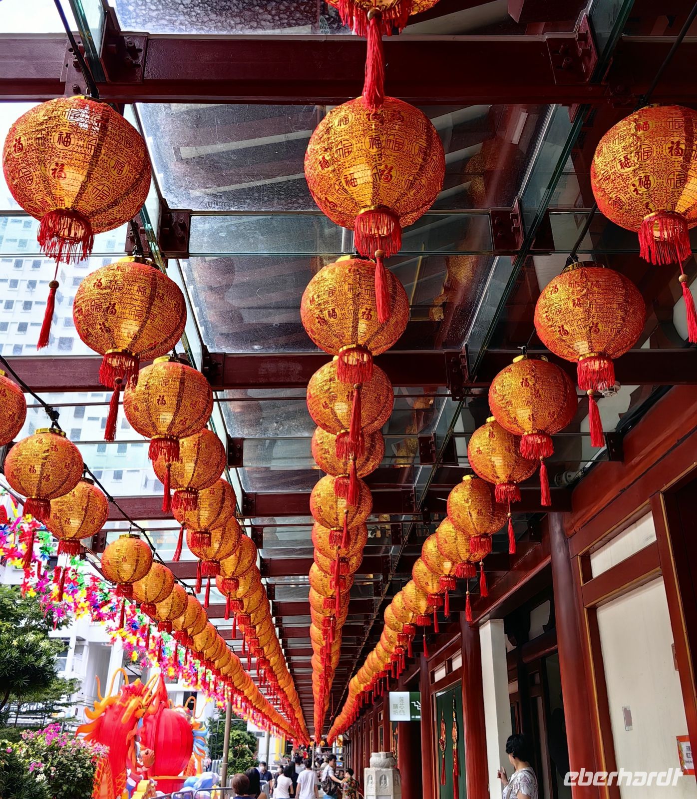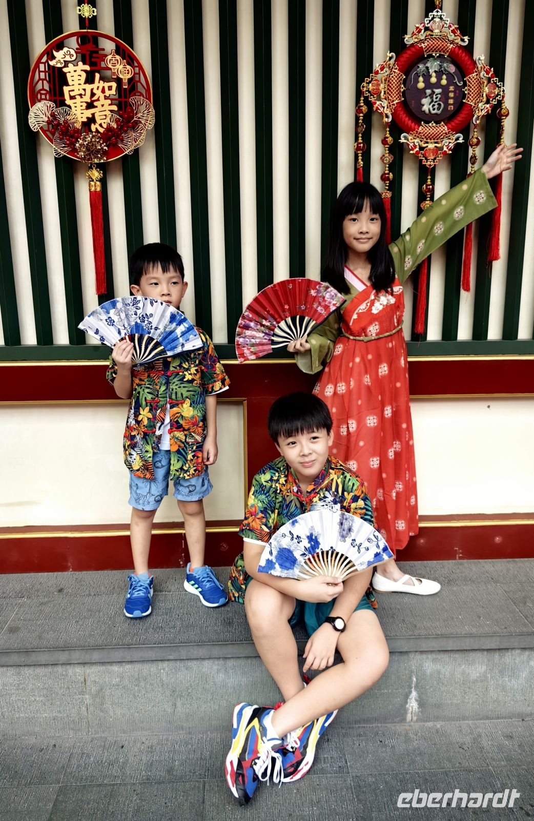 Zuallererst fahren wir zum Botanischen Garten, der sich auf Orchideenzüchtungen spezialisiert hat. Hier wuchern diese wunderschönen Gewächse regelrecht, hängen in meterlangen Rispen an Wasserfällen oder begrünten Wänden herunter und natürlich finden wir auch die weiße Orchidee, die extra für Lady Diana gezüchtet wurde. Sogar ein stark gekühltes Gewächshaus gibt es, welches für die Arten errichtet wurde, die das tropische Klima nicht vertragen. Verzaubert und ein wenig neidisch auf diese Pracht verlassen wir den tollen Garten und machen uns auf den Weg ins chinesische Viertel. Mutig stürzen wir zu den offenen Garküchen und für wenige Singapurdollar ergattern wir so manches exotische Gericht. Dabei sind wir von Einheimischen umgeben, denn heute ist Sonntag und viele Bewohner nutzen ihren freien Tag, um mit ihren Familien hier essen zu gehen.