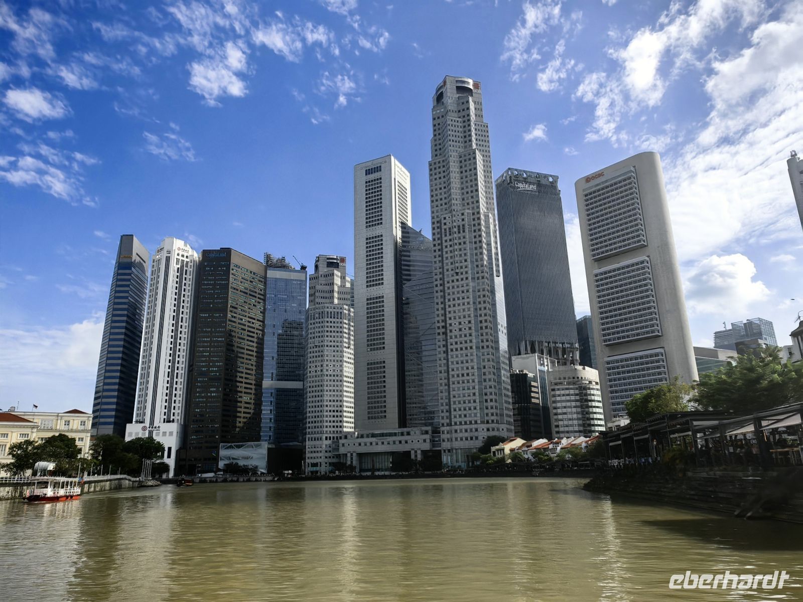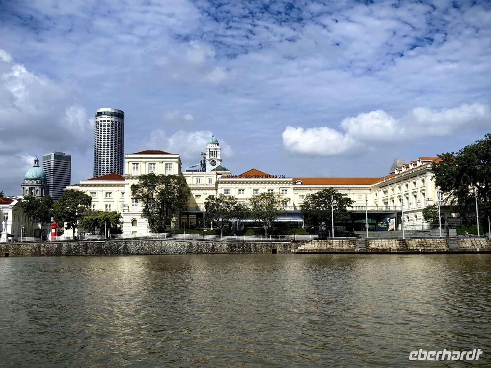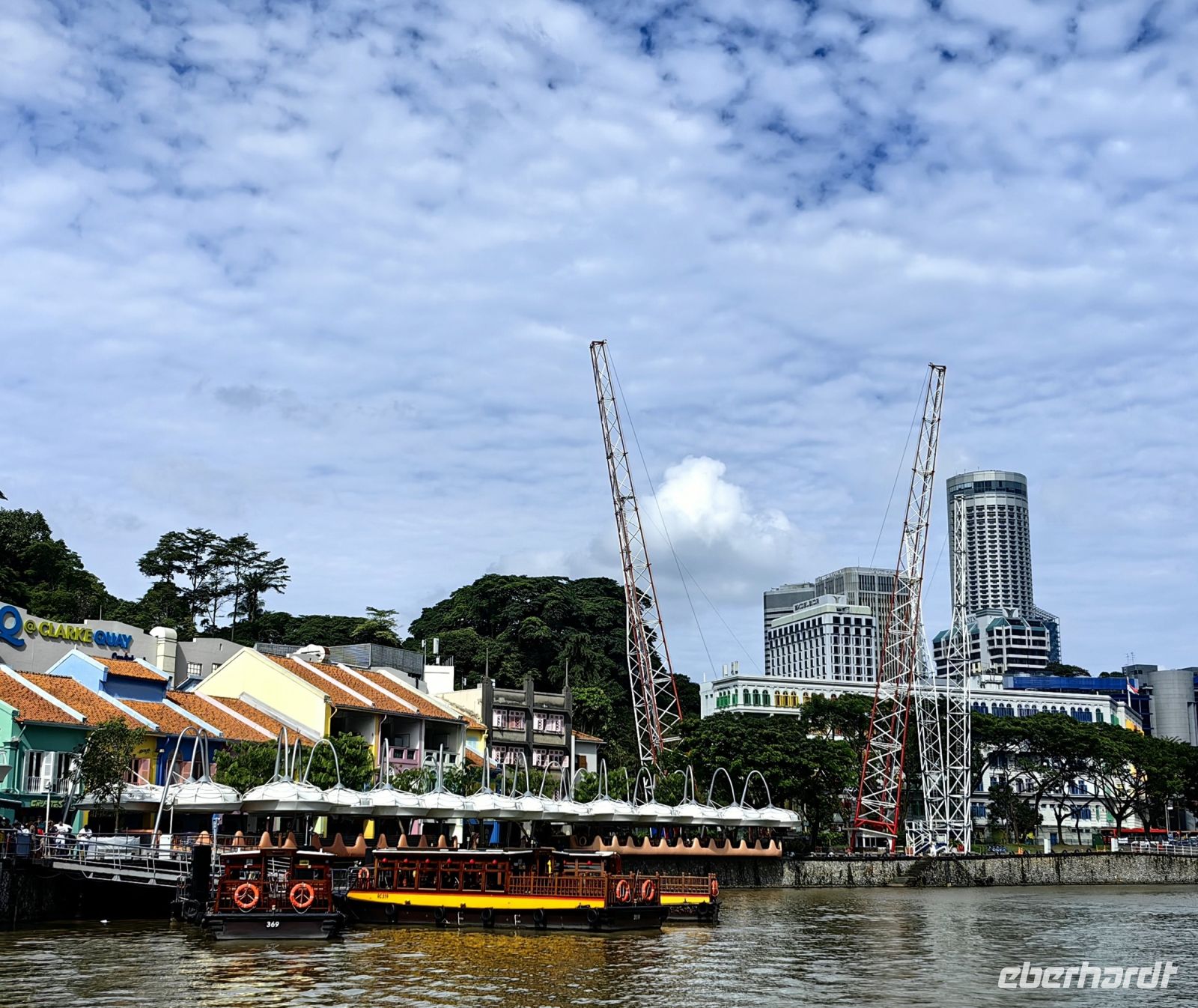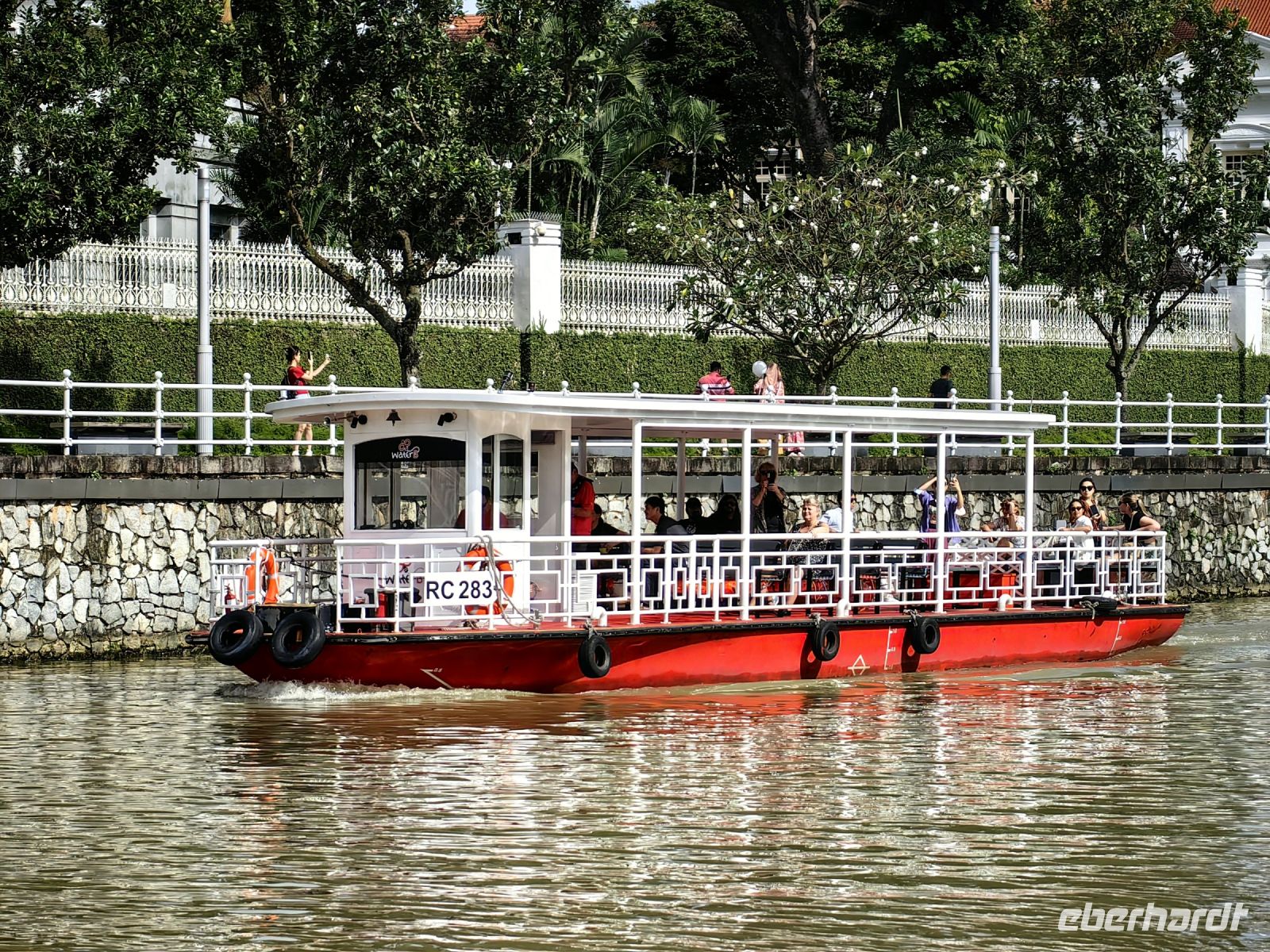 Danach macht Martine den Vorschlag, bei dem hervorragenden Wetter die Aussicht auf die Marina von einem Boot aus zu genießen und fast alle Gäste sind begeistert von dieser Idee und kommen mit. So schippern wir entlang des Clarke Quay, sehen den Merlion, das Wahrzeichen Singapurs und können Traumfotos vom Marina Bay Sands Hotel schießen. Dieser Ausflug bei azurblauem Himmel wird uns unvergessen bleiben.