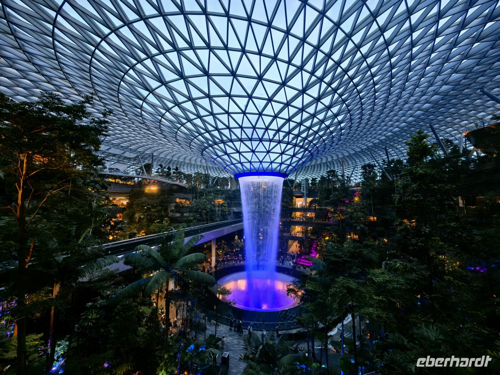 Nun ist es Zeit, Abschied von diesem faszinierenden multikulturellen Stadtstaat zu nehmen. Gemeinsam fahren wir zum Flughafen und nach dem Online Check in haben wir Zeit, noch den beeindruckenden Wasserfall innerhalb des Flughafens anzuschauen bevor wir nach Auckland fliegen.
