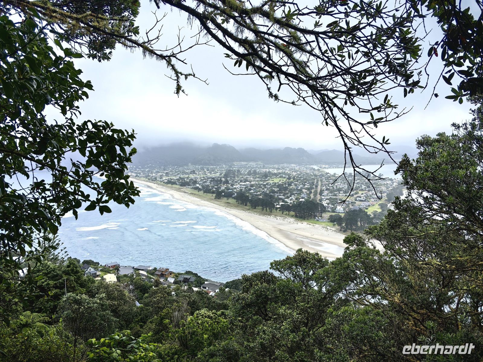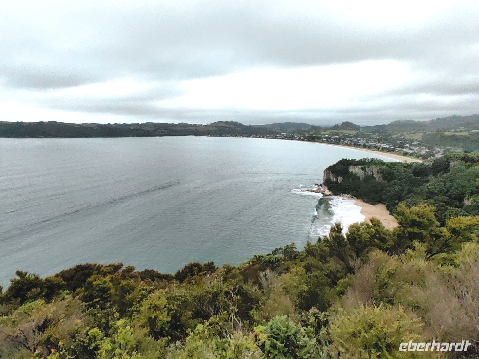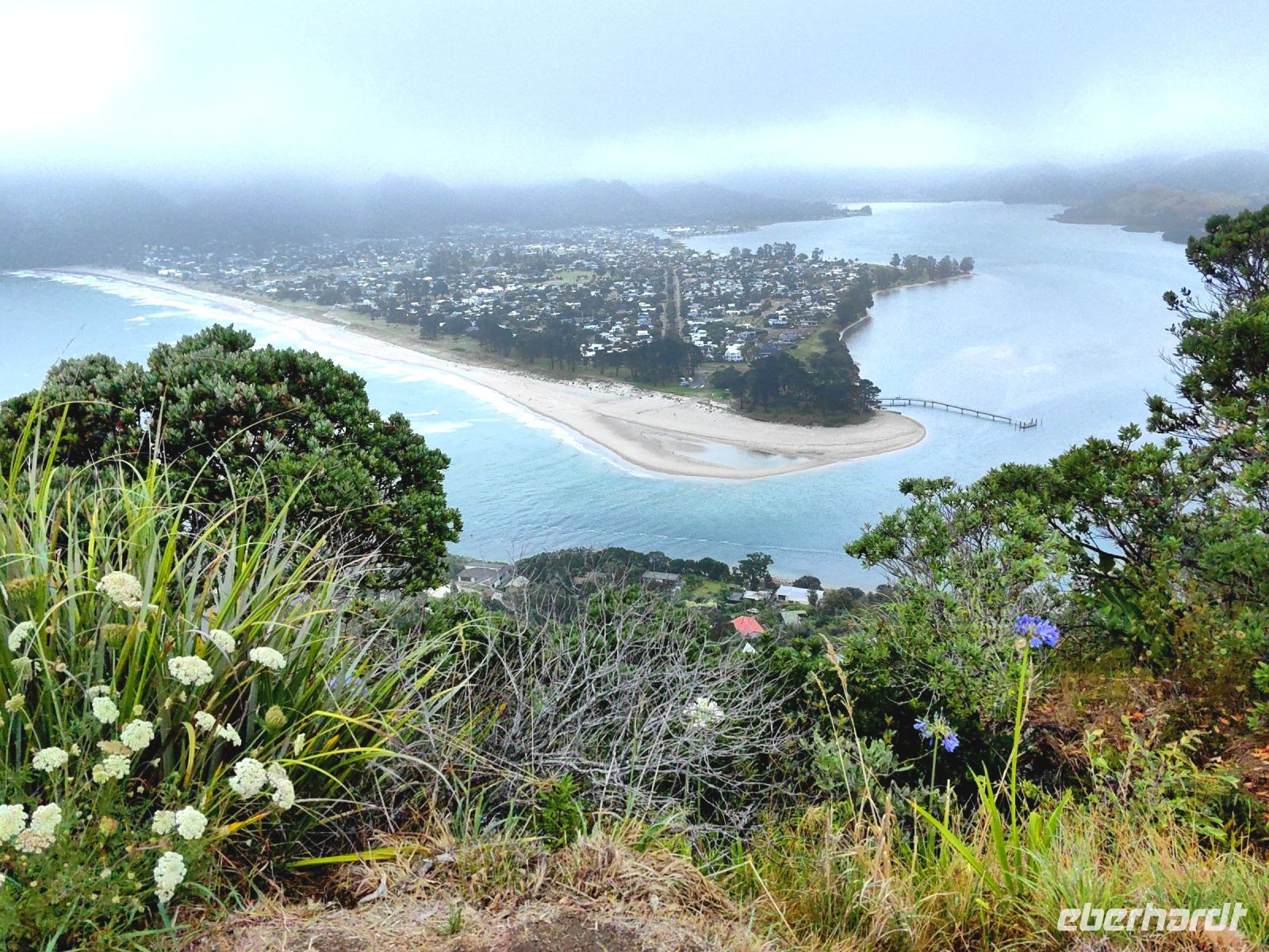 Am Nachmittag steigen wir auf den höchsten Berg von Tairuha, den Mount Paku. Er ist vulkanischen Ursprungs und die Stufen hinauf kraxeln wir über große Steine. Der Ausblick von oben auf die ganze Bucht ist trotz wolkenverhangenem Himmel bezaubernd und auf dem Rückweg bestaunen wir die üppig blühenden Vorgärten der Einwohner.