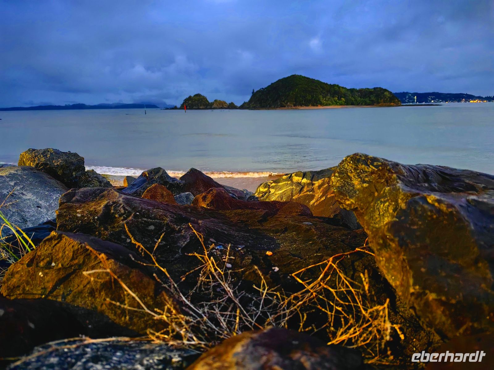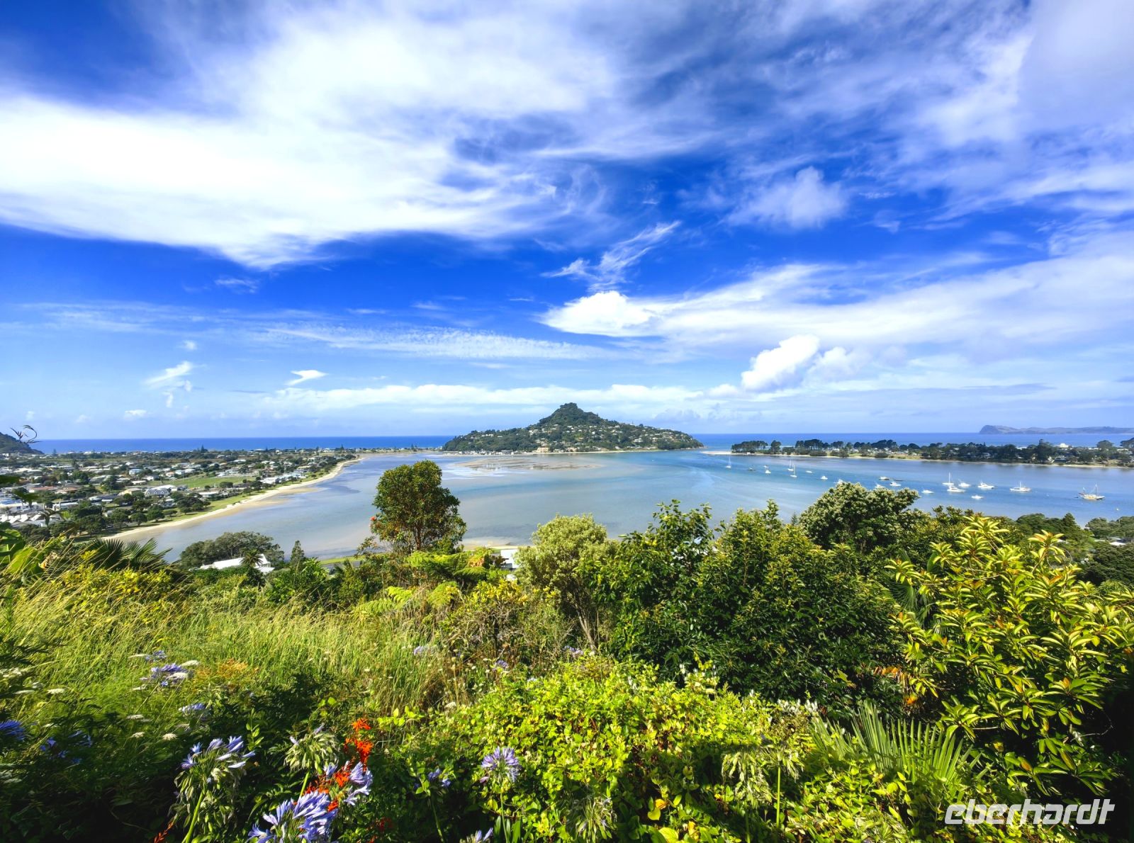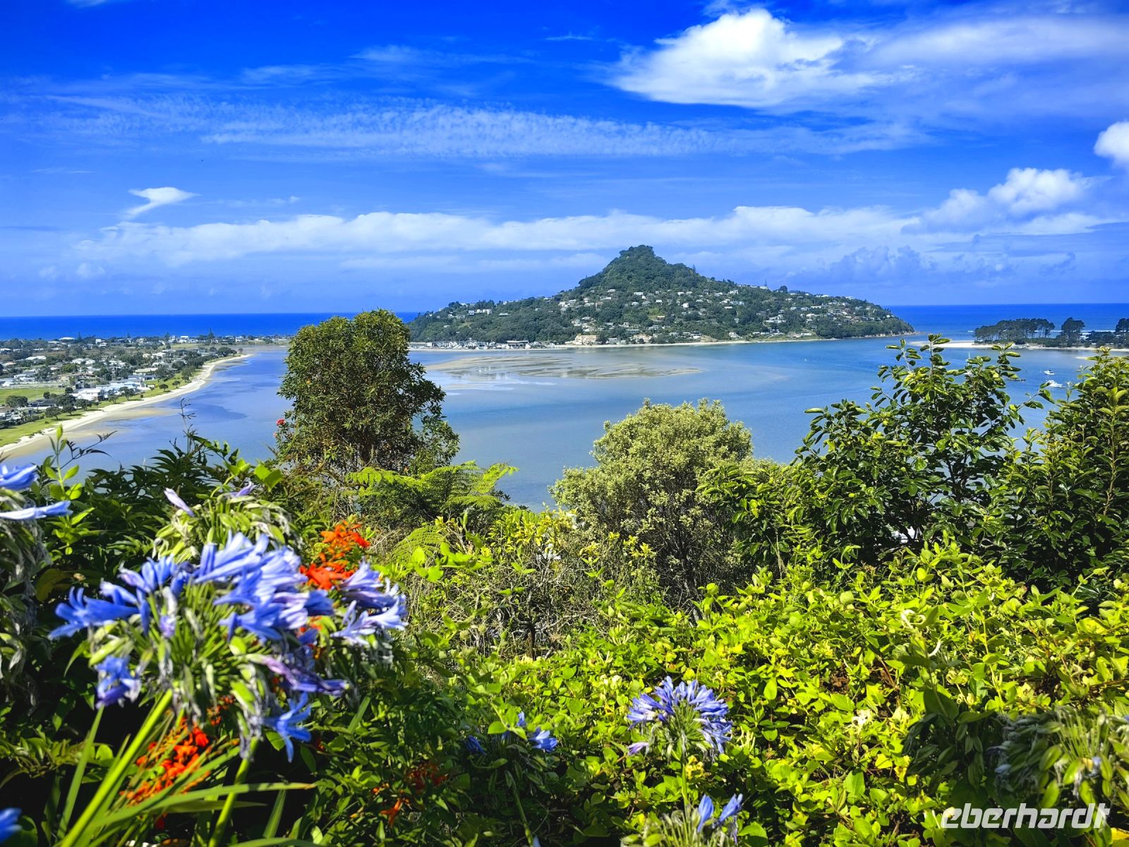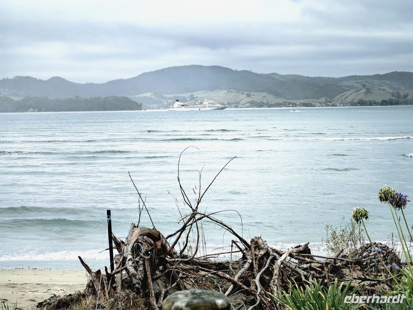 Am Nachmittag steigen wir auf den höchsten Berg von Tairuha, den Mount Paku. Er ist vulkanischen Ursprungs und die Stufen hinauf kraxeln wir über große Steine. Der Ausblick von oben auf die ganze Bucht ist trotz wolkenverhangenem Himmel bezaubernd und auf dem Rückweg bestaunen wir die üppig blühenden Vorgärten der Einwohner.