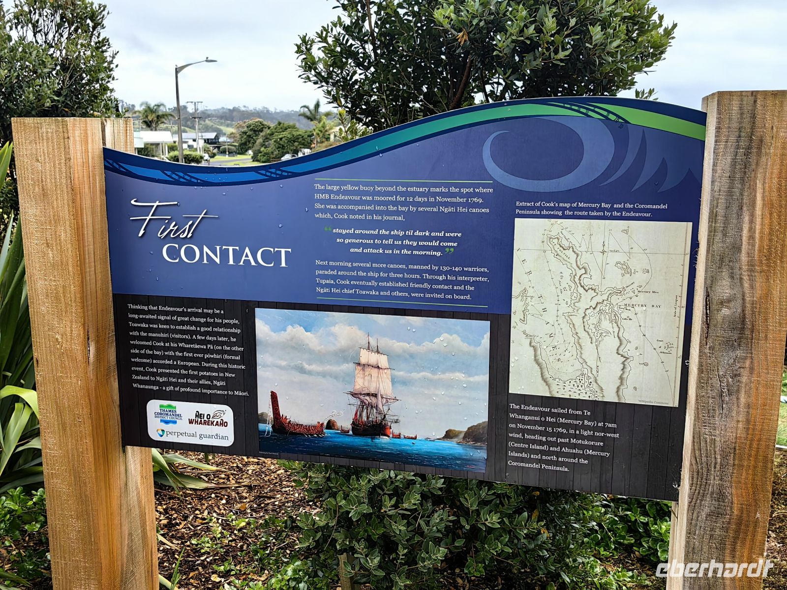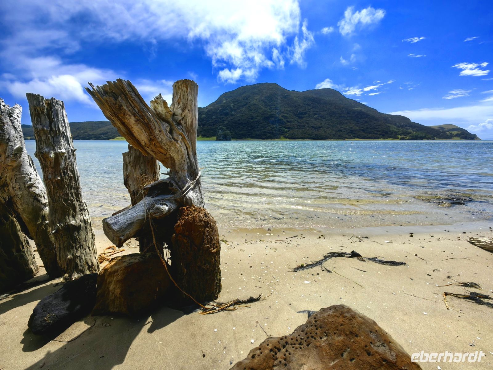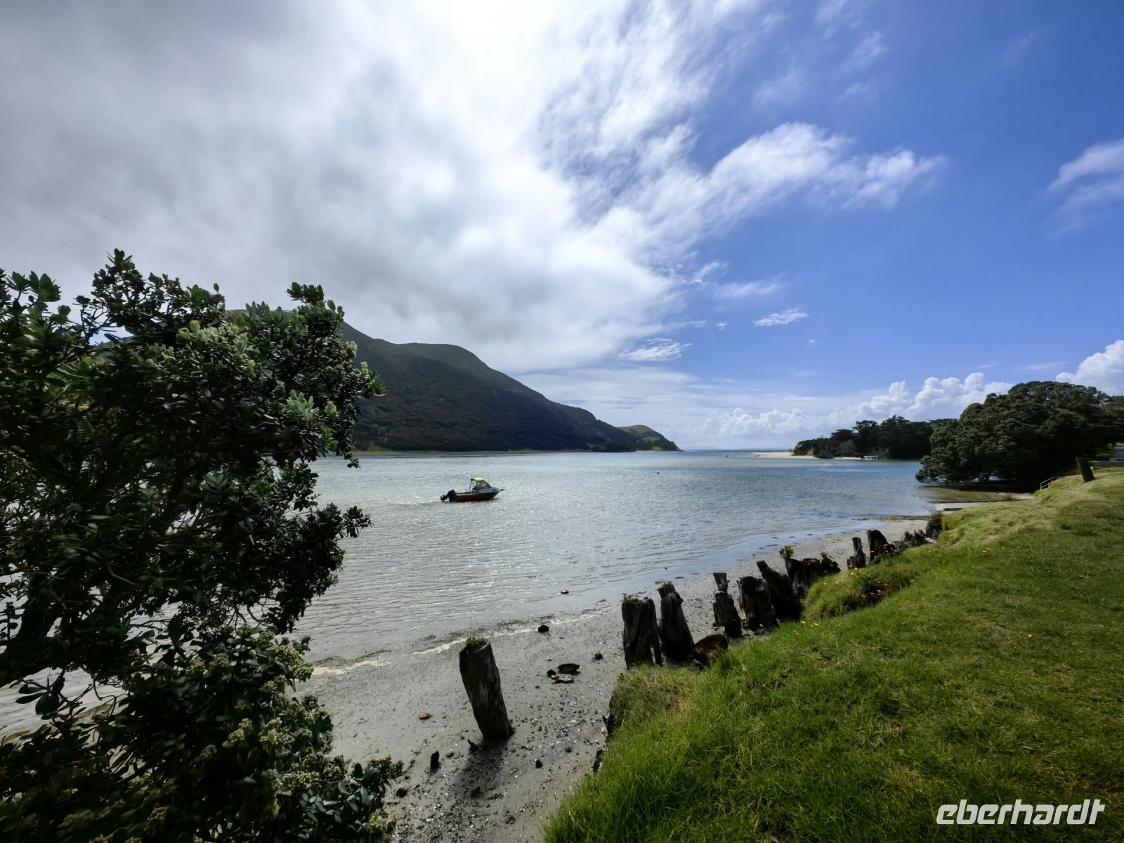 Den Tag werden wir auf der Coromandel-Halbinsel verbringen, die mit ihren hügeligen Landschaften, den Traumsandstränden, Thermalquellen und schroffen Küsten eines der beliebtesten Ausflugsziele in Neuseeland ist. In diesem Gebiet gewann man einst Gold und das Holz des Kauribaumes, heute leben die Einwohner von den Einnahmen aus dem Tourismus. Die besonders alternative Hippieszene aus Auckland hat auf der 85 Kilometer langen und 40 Kilometer breiten Landzunge ein Zuhause gefunden, zunehmend gibt es aber auch Immobilien reicher Städter hier. Dennoch ist Coromandel nur dünn besiedelt und bis auf Thames haben die kleinen Orte weit weniger als 5.000 Einwohner. Uns erwartet also ein Paradies aus bis zu 900 Meter hohen Bergketten, subtropischem Regenwald, Stränden und glasklarem Meer.