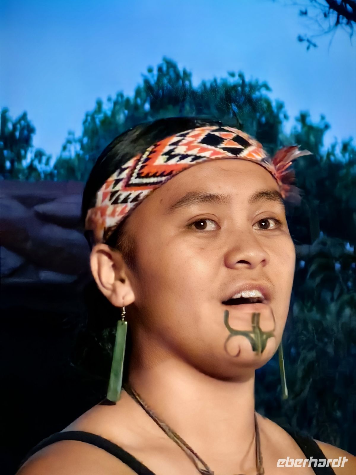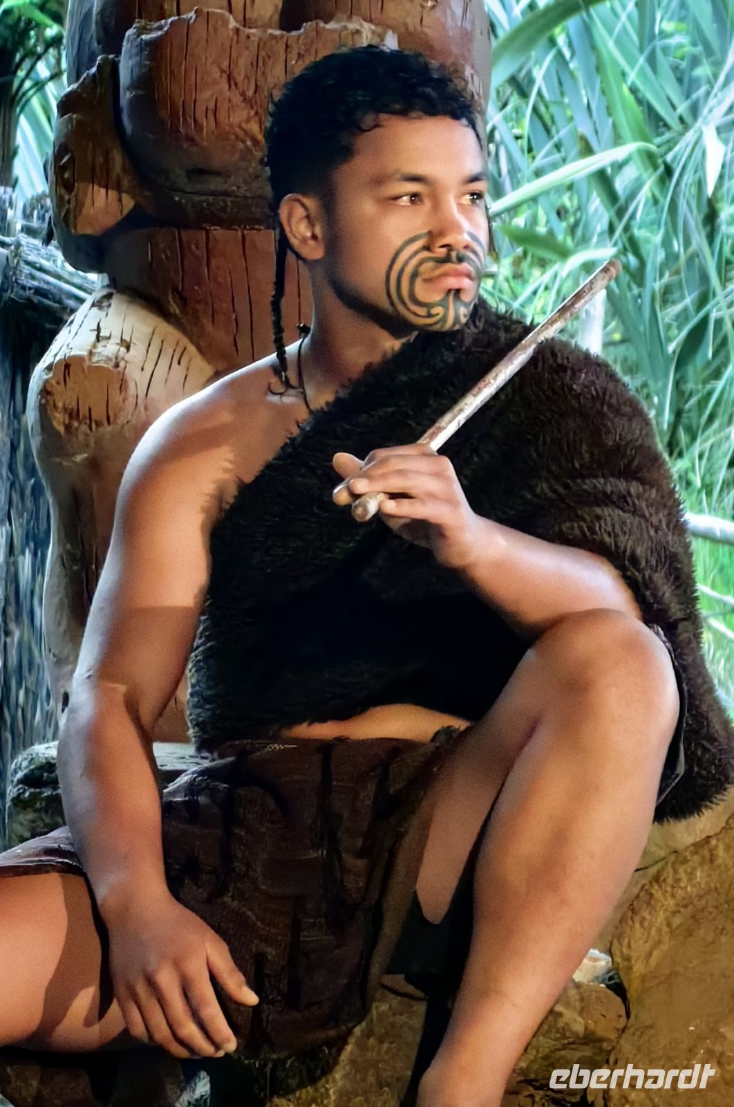 Zum krönenden Abschluß dürfen wir einer Vorführung der verschiedenen Kampftechniken und Alltagsriten der Ureinwohner Neuseelands beiwohnen und sind wie gebannt von den Tattoos, den rausgestreckten Zungen, den Drohgebärden und den Balljonglierkünsten der Frauen.