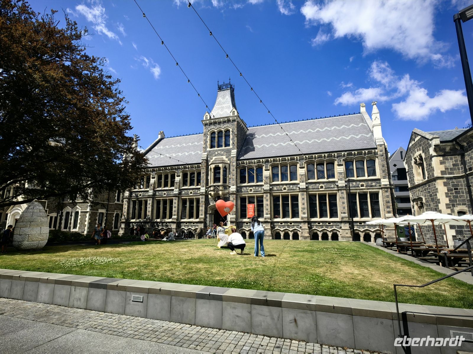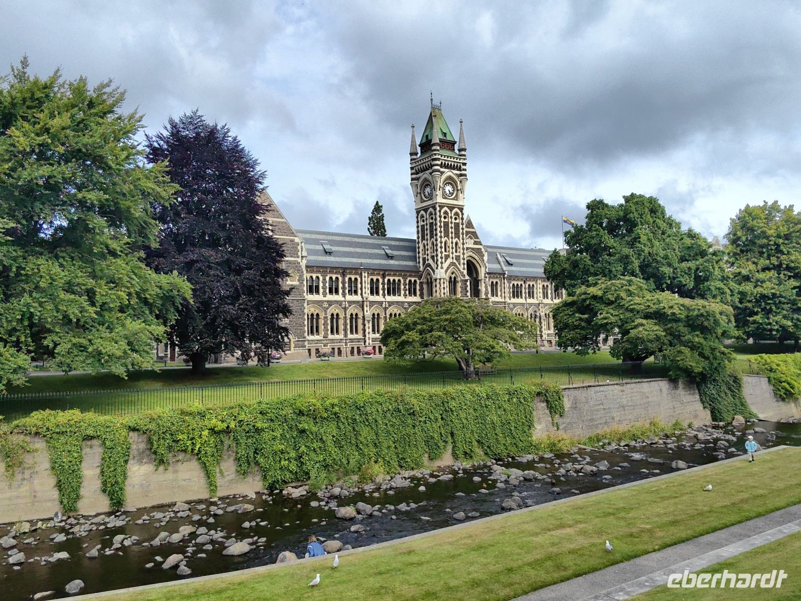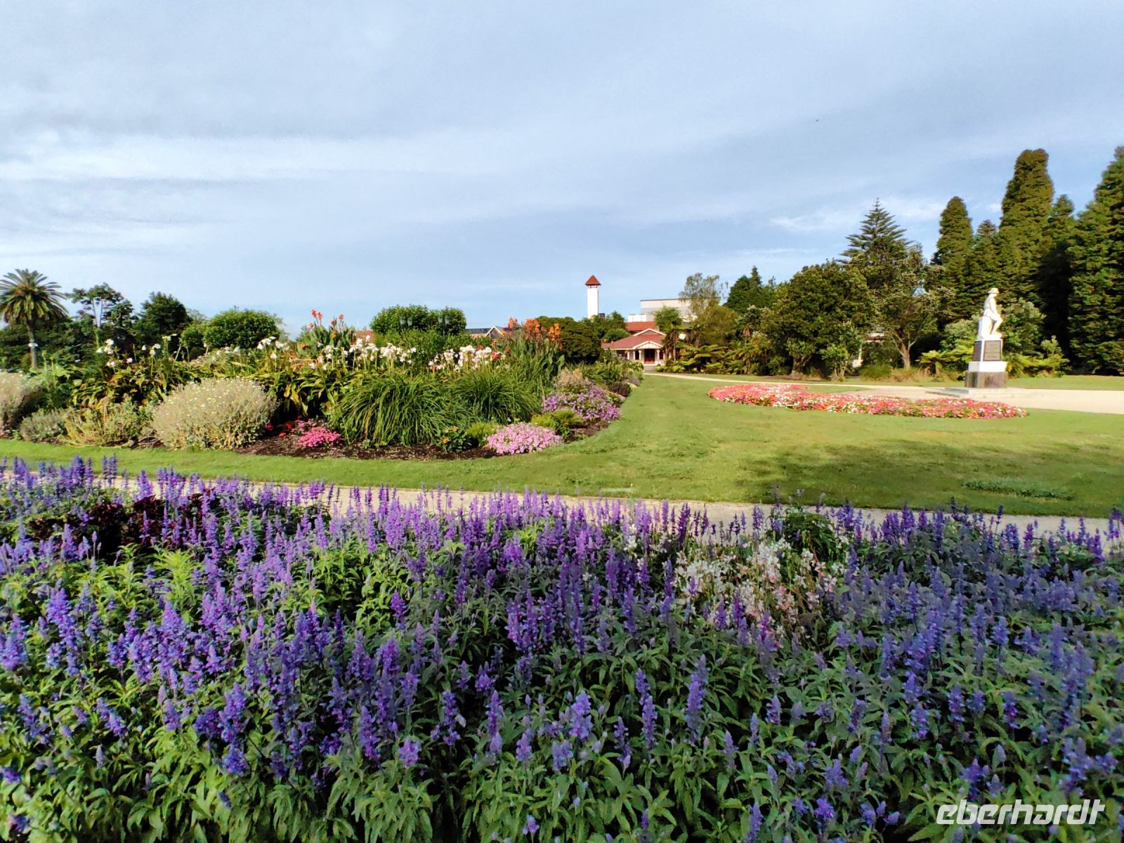 Wenig später setzen wir unsere Reise in Richtung Christchurch in der Region Canterbury fort. Diese Stadt mit 350.000 Einwohnern ist die größte der Südhalbinsel und wird bis heute mit dem verheerenden Erdbeben vom Februar 2011 in Verbindung gebracht. Noch immer sehen wir viele Gebäude, die renoviert oder repariert werden müssen. Wir halten in der Nähe des Art Centers, in dem sich auch die Christchurch Cathedral und die Great Hall befinden. Allesamt erinnern vom Baustil an England und die Harry Potter Filmkulisse. Hier befinden sich Teile der Universität, Cafés, kleine Straßenrestaurants, und der Botanische Garten lädt gleich gegenüber zu einem Bummel an den Blumenbeeten entlang ein. Durch die Stadt fährt eine historische Straßenbahn, die Besucher anstatt der anderswo modernen Hop on Hop off Busse für eine Rundfahrt besteigen können.
