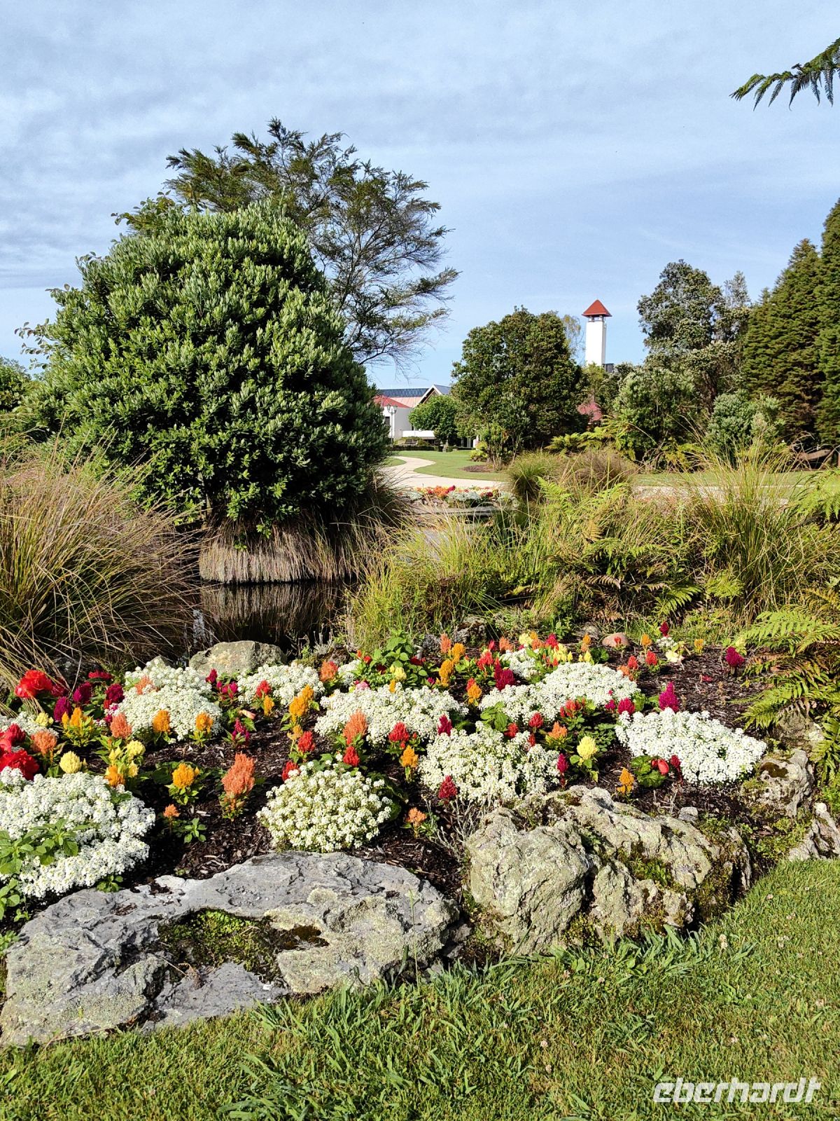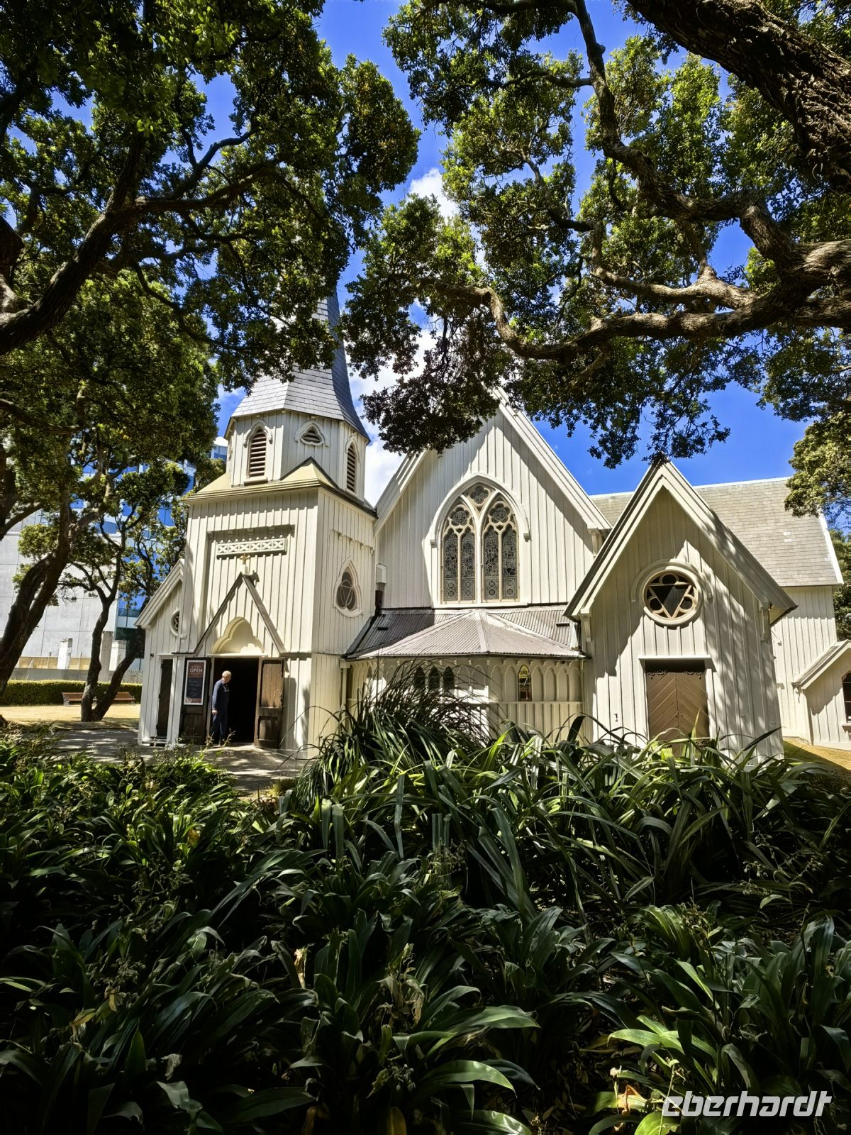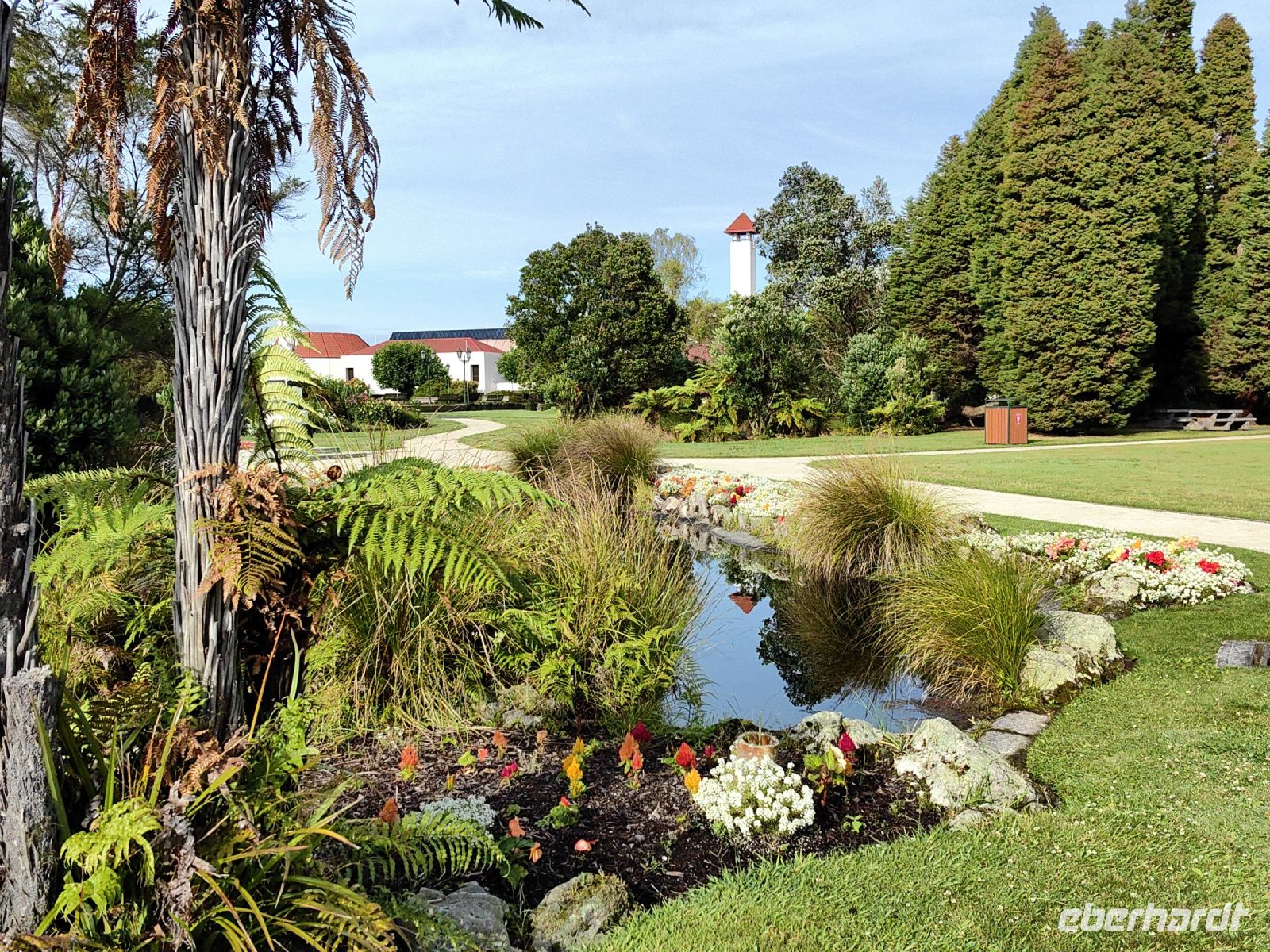 Bevor wir Paihia und die Bay of Islands verlassen, halten wir noch an der einstigen Missionsstation des Ortes. Sie wurde 1823 von Samuel Marsden errichtet und wir können noch Reste der Mauern erkennen. Im kleinen Gemüsebeet wachsen munter Tomaten, Paprika, Zitronen und Fenchel. Gegenüber liegt der wunderschöne Strand von Paihia, kein Wunder also, daß die Missionare hier ihre Station errichteten.