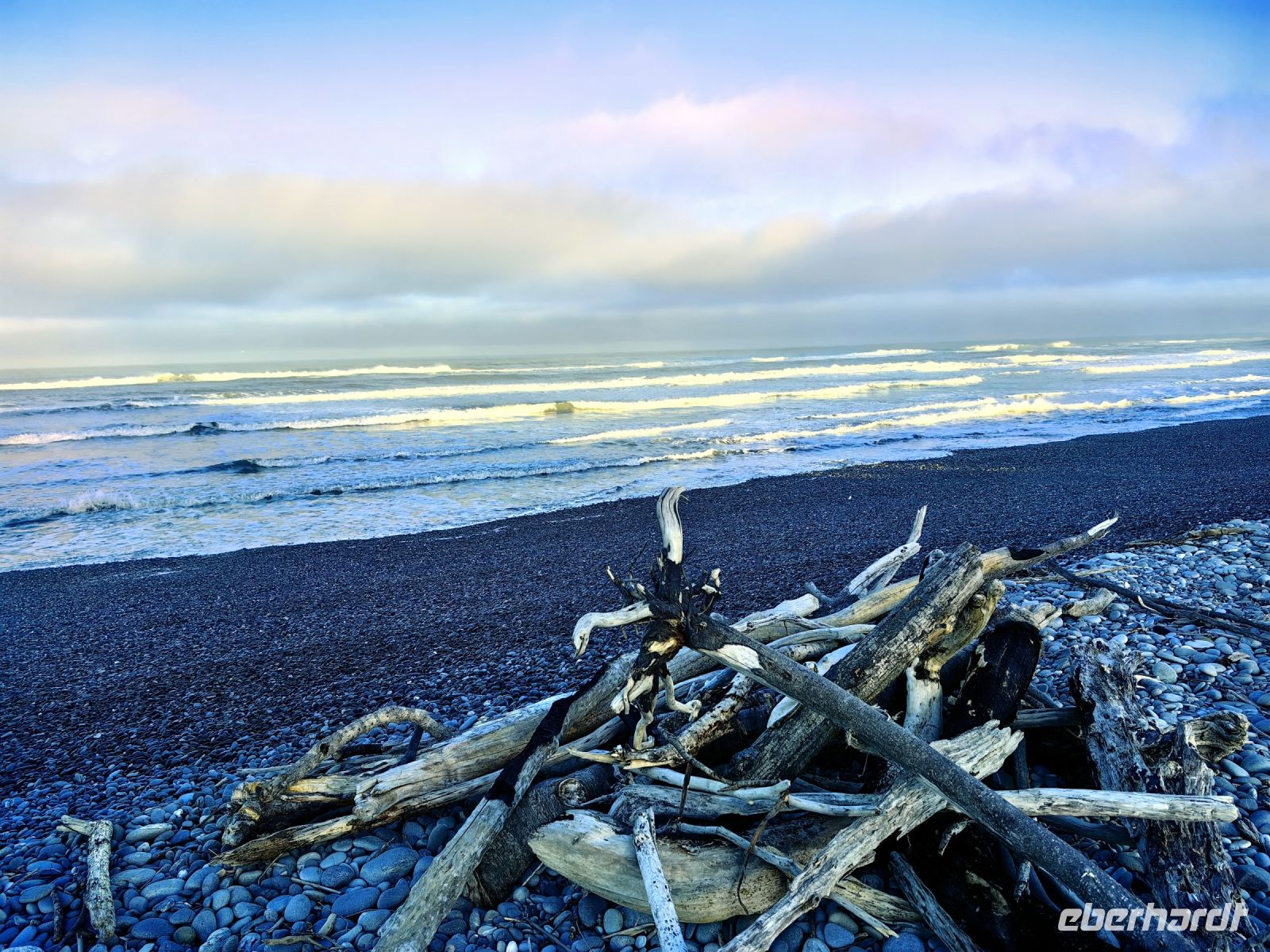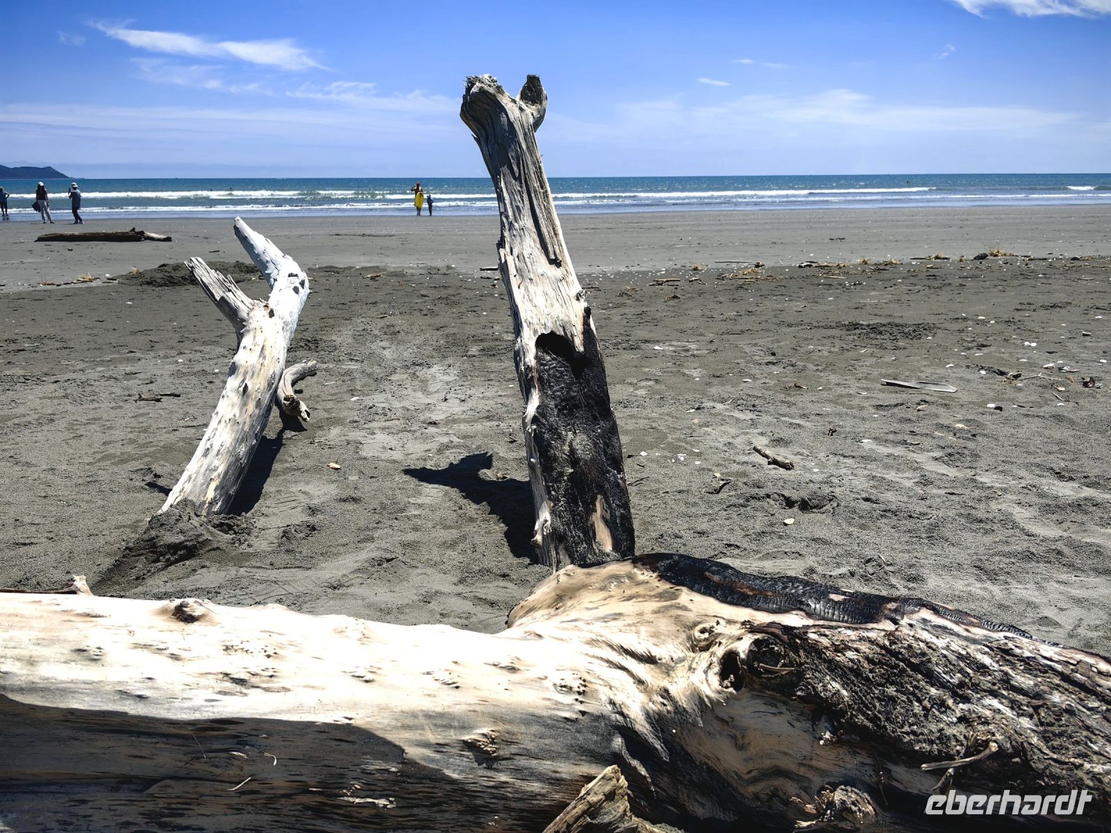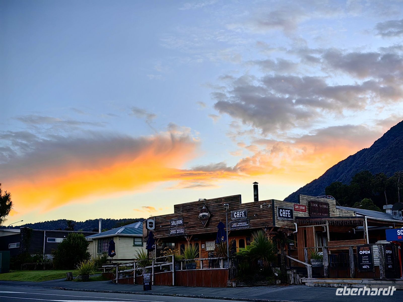 Unser Weg führt uns weiter nach Hokitika. Diese einstige Goldgräbersiedlung wurde 1864 gegründet und nur zwei Jahre später zählte die Stadt bereits 6.000 Einwohner und wurde 1873 sogar zur Hauptstadt der neu geschaffenen Provinz Westland. Heute lebt man hier vor allem vom Fischfang und vom Tourismus. Wir sehen unzählige Läden, in denen man die verschiedensten Schmuckstücke aus Jade (Maori: Pounamu) kaufen kann. Nach unserer Mittagspause fahren wir entlang der Tasmanischen Küste bis nach Greymouth und nachdem wir unsere Zimmer bezogen haben, laufen die meisten Gäste sogleich zum Strand. Das gute Wetter und die hochsommerlichen Temperaturen müssen wir nochmal auskosten, bevor uns in Deutschland winterliches Grau erwartet.