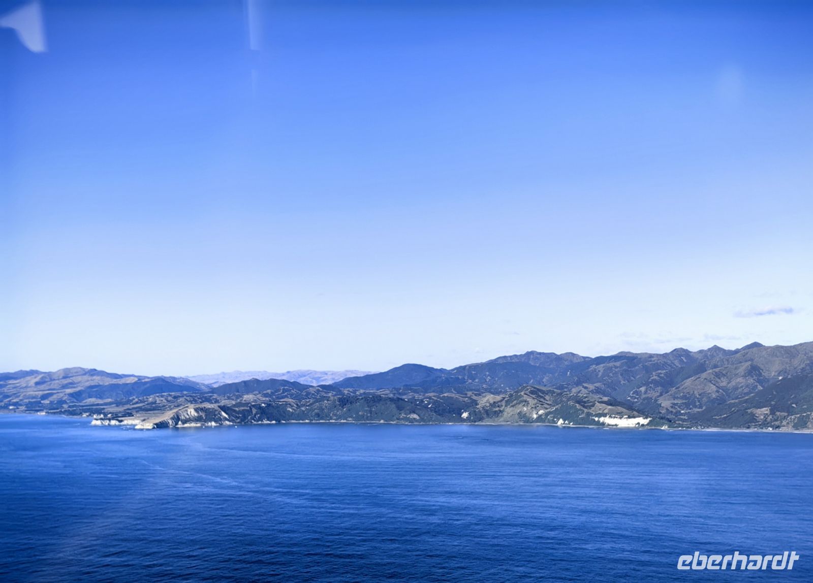 Am ganz frühen Morgen haben einige Gäste den Flug über die Bucht von Kaikoura gebucht, in der Hoffnung, Wale von oben beobachten zu können und das Wetter könnte nicht besser sein. Die Sonne strahlt endlich wieder vom blauen Himmel, es ist klar und die Sicht ist gut. Die Gäste, die im ersten Flugzeug sitzen, haben Glück und sehen einen Pottwal, die Gäste, die mit dem zweiten Piloten starten, sehen wundervolle Landschaften und eine fantastische Küste aber der Wal ist leider in den Tiefen des Ozeans abgetaucht.